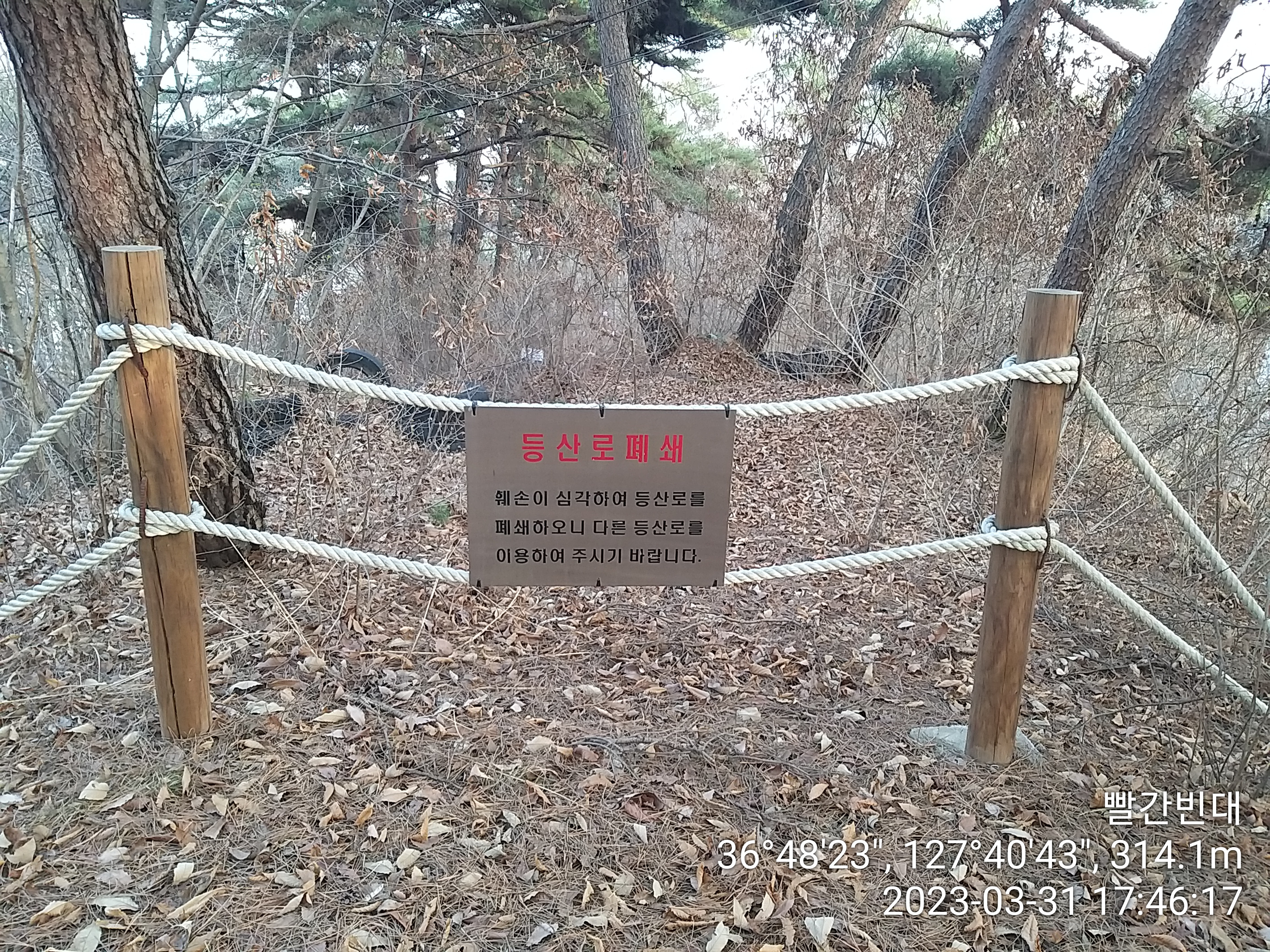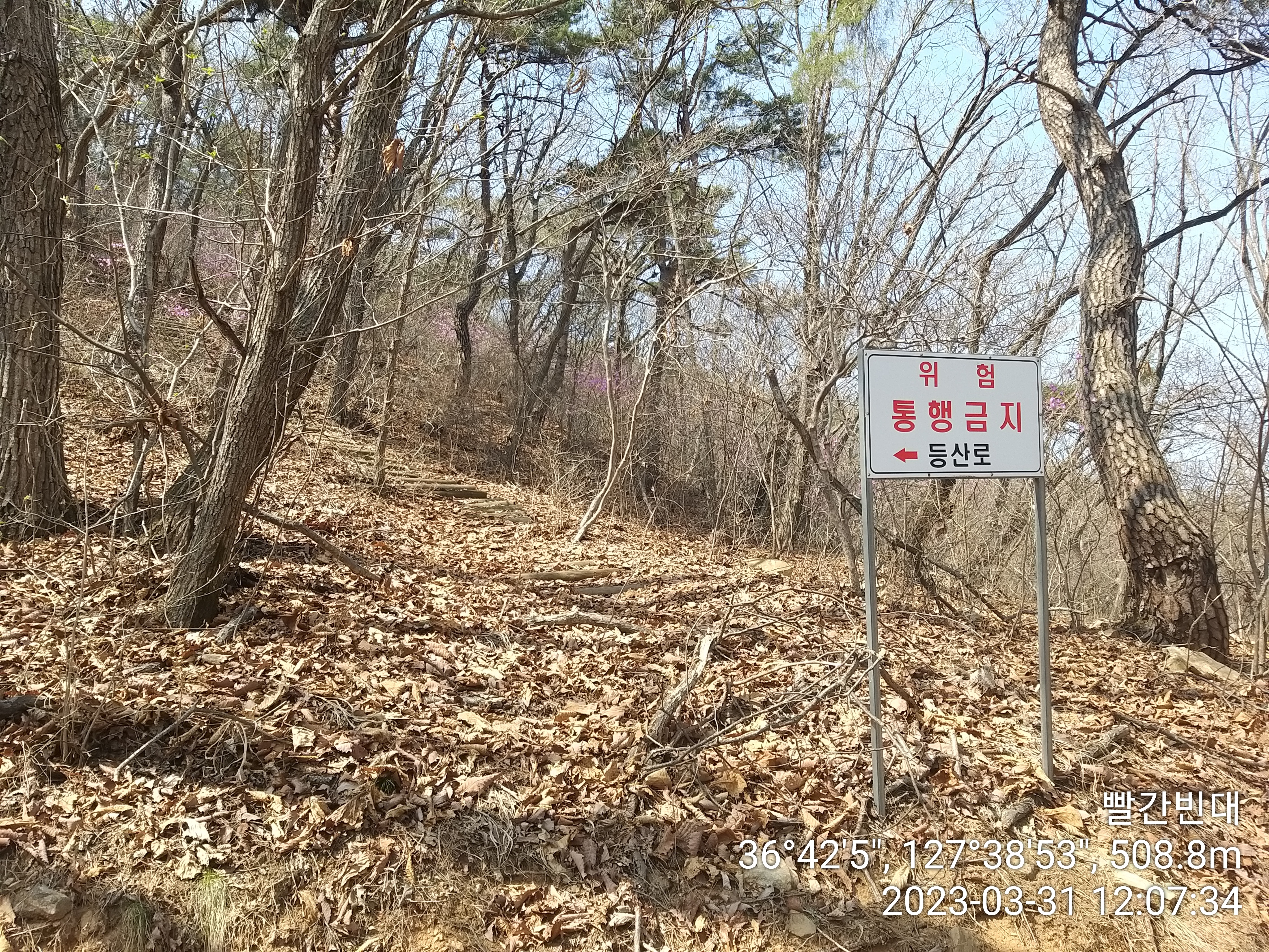보광산 관광농원방향 등산로 폐쇄 / 사람들이 보인다. 굳이 내려서 얼굴 붉힐 필요가 없는것 같다