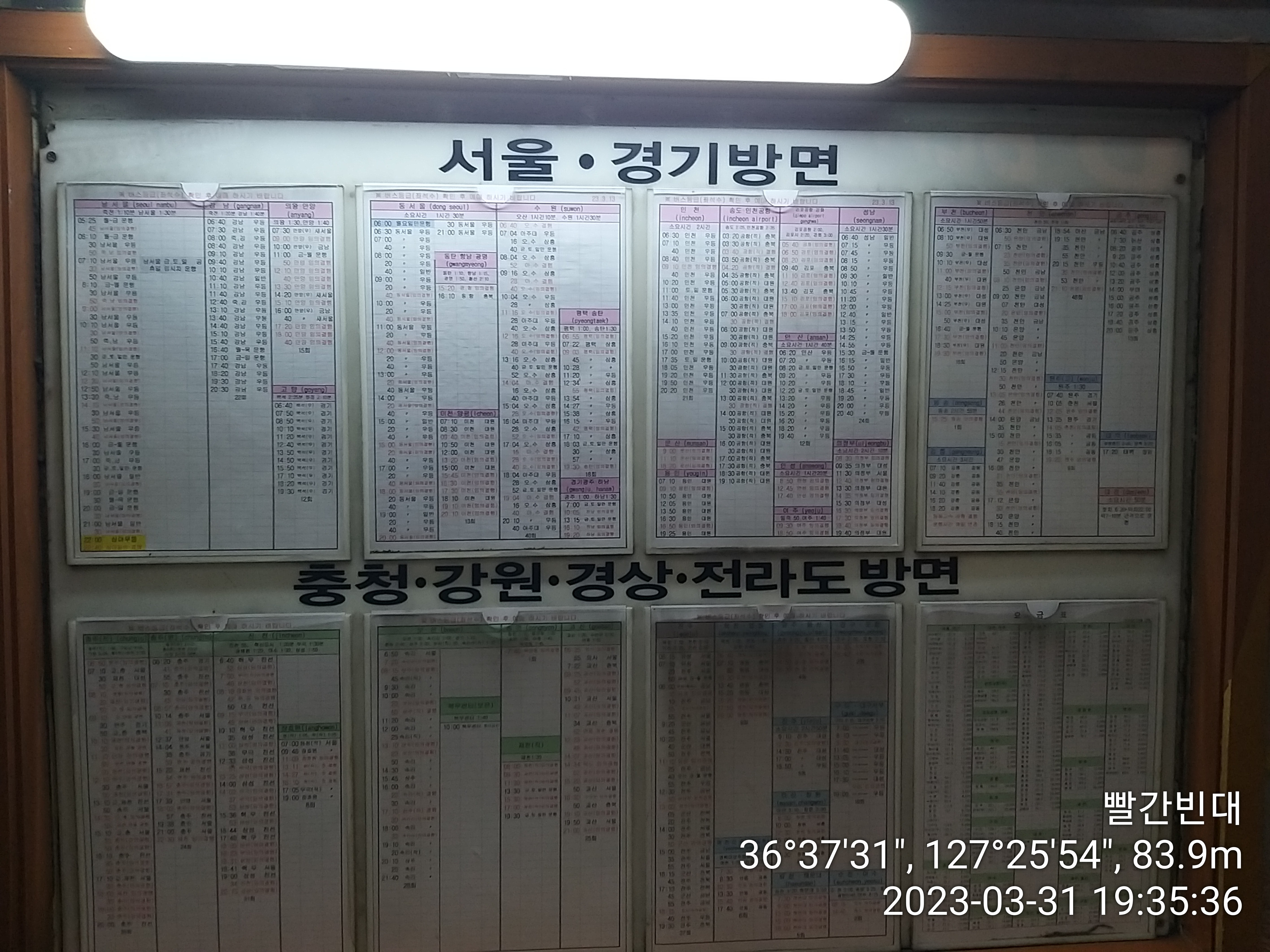 버스 승강장을 찾으니 이번엔 버스가 조금이라도 빨리 도착하여 20시25분 대전가는 열차를 탈수 있어야 한다는 고문에 시달린다