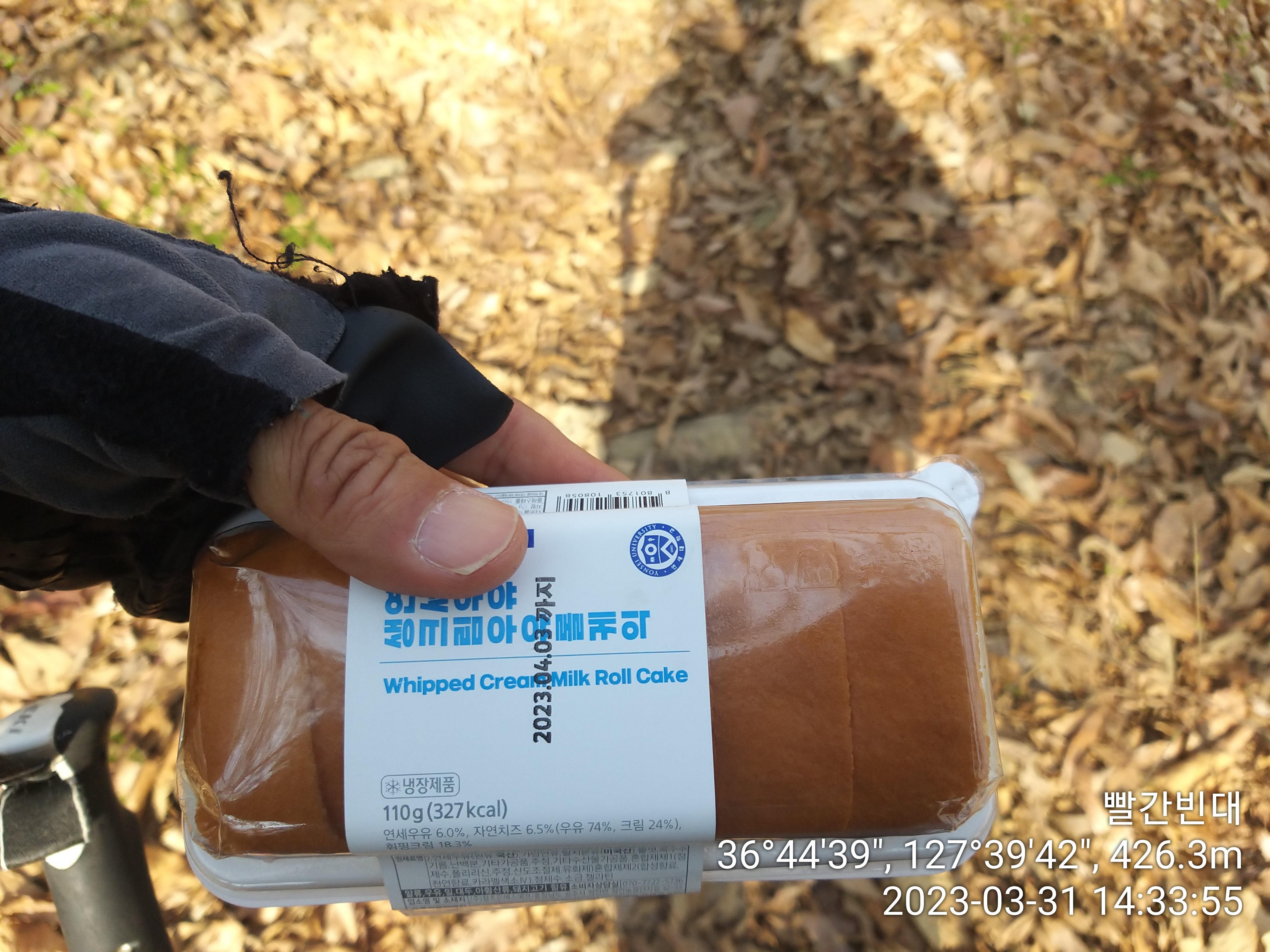 1박2일 둘째날 산행중 오늘 최고로 잘먹었네. 문제점은 알고 있었지만 항상 실패 했었는데, 잘먹으니 발걸음이 한결낫네. 지금까지 아침을 먹고 2시간 정도 흐르면 바나나로 허기를 채웠는데, 오늘은 양갱으로 바꾸고, 이른 시간에 김밥을 먹었다. 김밥을 잘 넘기느냐 못넘기느냐에 따라 하루가 좌지우지 된다. 뒷날은 김밥 넘기기가 힘든걸 감안하여 사이즈가 작은걸 샀는데 적중했다. 오후 시간대가 경과하면서 다시 허기가 올때 바나나&양갱과 케익&커피를 두고 고민하다가 증평에서 저녁을 올갱이국으로 맛있게 먹을려면 케익&커피를 먹고, 바나나나 양갱은 보충제로 생각하기로 한다. 케익이 커피를 만나자 완전 분해되어 목구멍으로 잘도 넘어간다. 이런걸 배골아가며 집으로 가져 왔었지. 이제 패턴을 알았으니 반복적인 학습으로 굳히기에 들어가야 겠다.