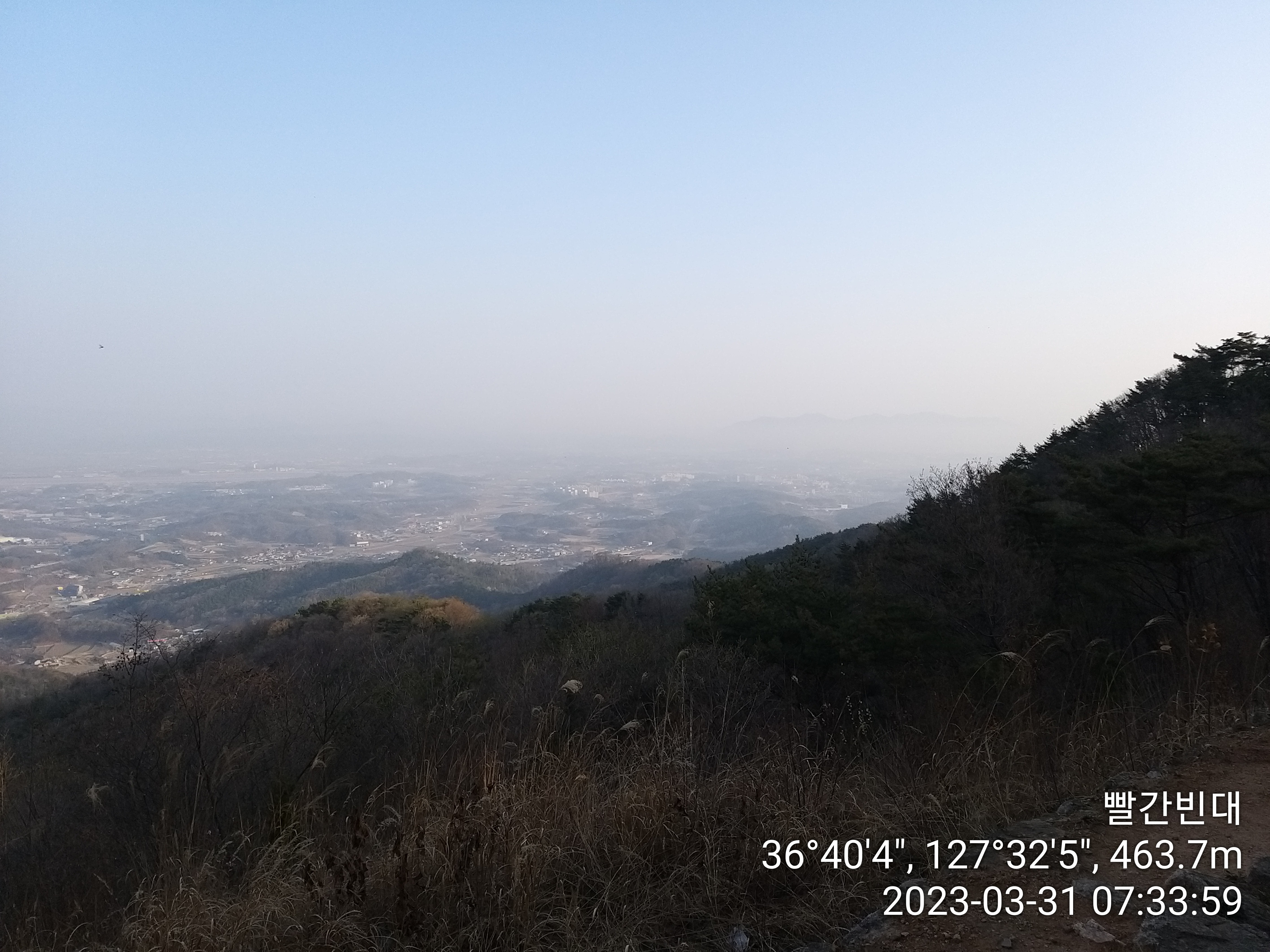 - 기상 : 0˚ ~ 22˚, 습도 76%, 바람 2~10(잔잔), 공기질 72(보통), 일몰 18시50분