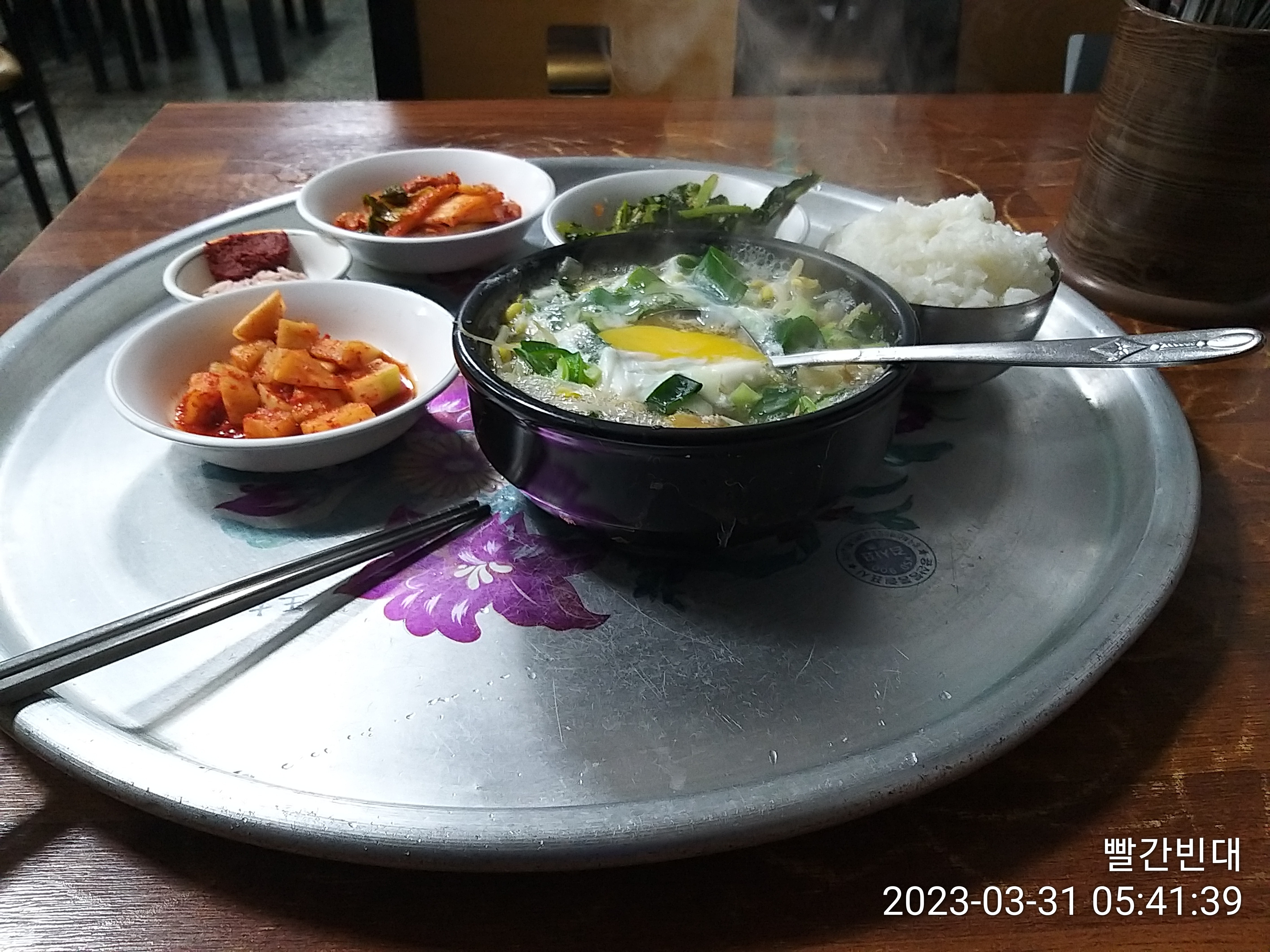 사전에 이집 음식값이 비싼걸 알고 길건너 서문해장국으로 갈려 했는데 홈피와 달리 영업을 안하네. 하는수 없이 울며 겨자 먹기식으로 원조전주콩나물 해장국으로 들어갔다. 머슴밥을 주네. 다 못먹을것 같아 1/3만 먹는데 산행을 위해 억지로 먹으며 어제 염소탕 생각하니 울화통이 터진다. 테이크 아웃을 생각 못한게 원통스럽다. 열받아 카드로 계산한다