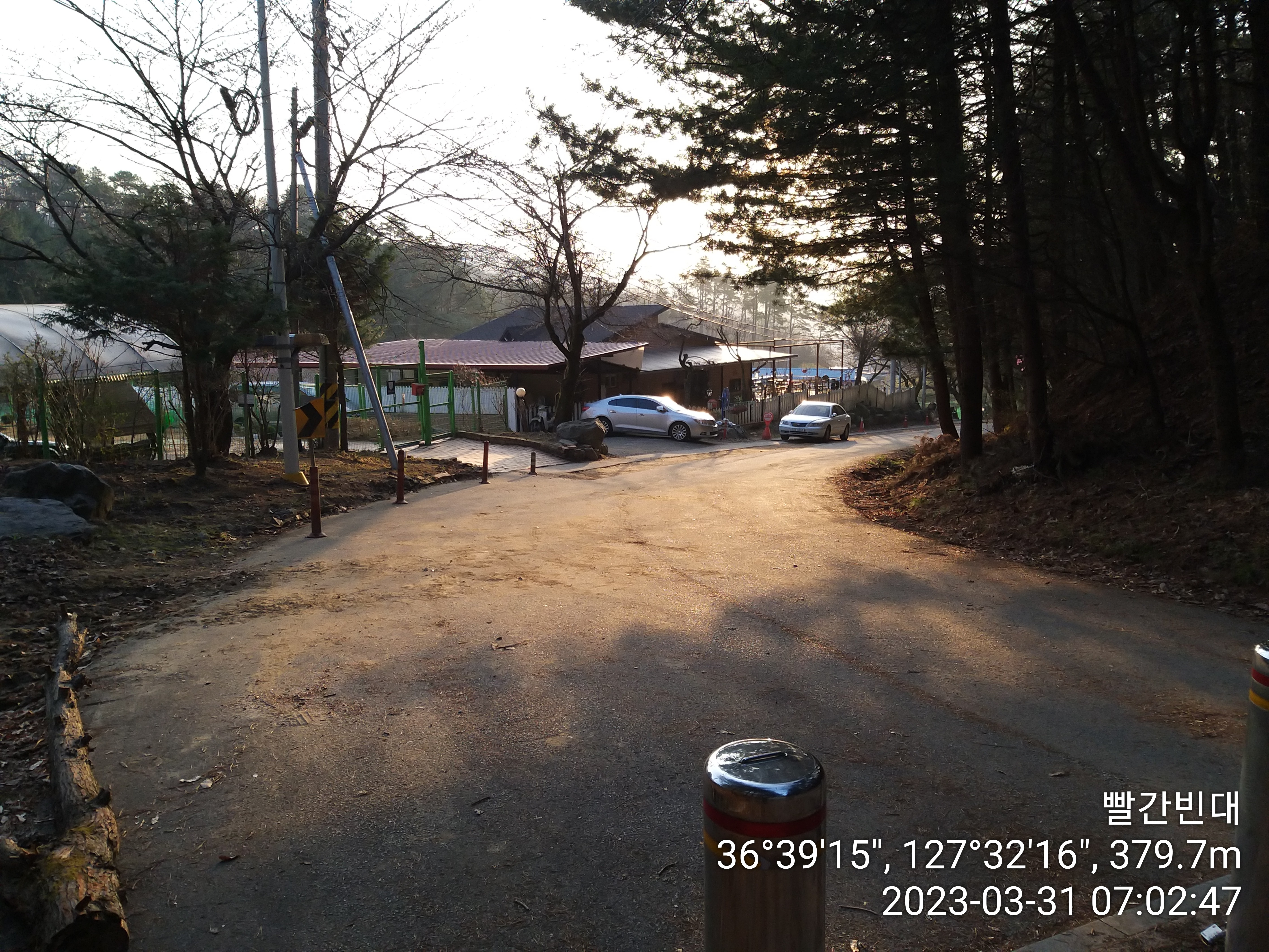 모래재에서 버스를 타기 위해선 오른쪽으로 600m 이동 하여야 한다