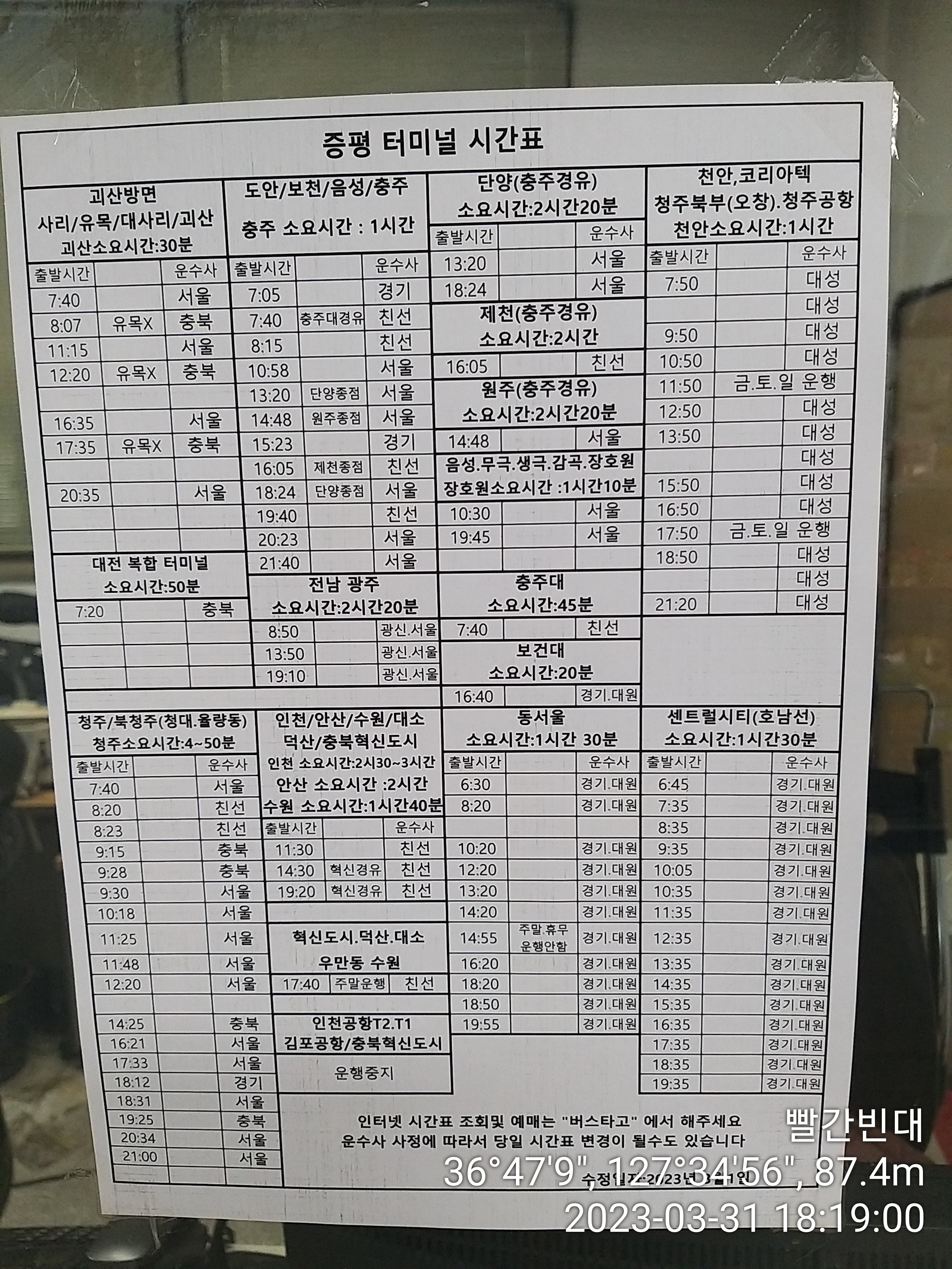 평상시 봉명에서 19시12분 출발하는 버스를 타야 청주역에서 20시25분 대전가는 열차를 탈수 있다. 이걸 놓치면 택시로