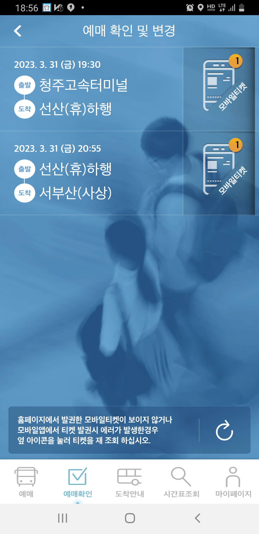 18시31분 청주 가는 버스를