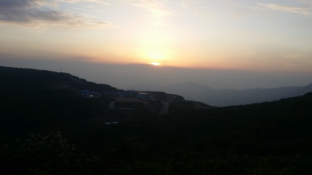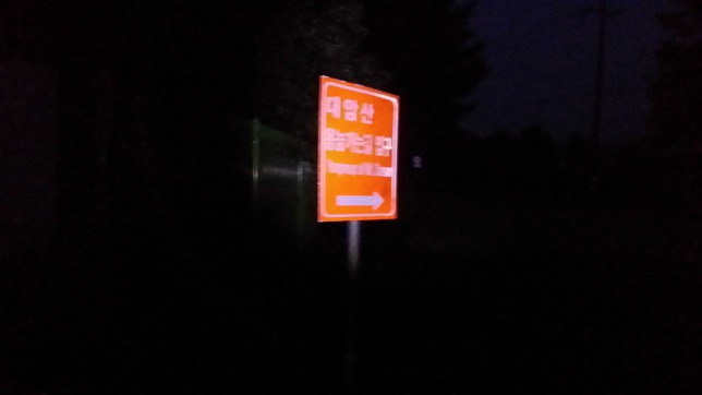 17:48 횡성시외버스터미널 / 일행과 이곳에서 헤어져 17시55분 홍천행 버스에 오른다.18시25분 홍천터미널에 도착하여 내일 부산갈 버스표를 예매하고 19시10분차를 탄다20:14 양구터미널에 도착하여 팔랑가는 농어촌버스 정류소로 이동한다. 20시10분에 차고에서 출발하는 버스가 곧 도착 예정이다.20시46분 팔랑2리에서 하차한다. 주변에 군부대가 많아서인지 여관도 많고, 편의점도 있네. 편의점앞 해바라기모텔로 들어갈까 하다 사전에 전화로 문의한 신성장으로 이동한다20:49 신성장 / 투숙객이 아무도 없다. 토요일이라 군인 아찌들 외박도 나올법 한데 요즘은 안나온단다. 아마 얼마전 자대배치 받은 아들 면회하고 귀가하다 교통사고로 일가족 사상 사고로 잠시 주춤하는가 보다. 삼마치에서 닭고기를 배부르게 먹었지만 컵라면이 생각난다. 주인 어른이 내주신 김치가 달다. 내일 탈출을 위해 택시 번호도 따고(1개의 번호를 파악해 왔는데 보험 차원에), 내일 바로 출발할수 있게 준비완료후 샤워하고, 마지막으로 거금을 들여 왔는데 광치령까지는 짧은것 같아 추가로 두무리고개까지 연장하고, 시간적 여유가 되면 양구터널까지 가기로 작정하고 추가 스케쥴을 작성한다. 산행 시간이 늘어나다보니 처음 계획한것보다 1시간 일찍 출발하게되고 이게 나에게 카다란 행운을 가져다 주었다. 새벽 3시10분에 알람을 맞춰두고 꿈나라로~산행개념도03:10~03:28 산행 준비후 출발. 453지방도를 따라가다 대암산 용늪으로 우틀하여 도솔산 전적지까지 9.5Km, 고도 350m를 치고 올라야 한다. 새벽이라 택시를 부를수 없어 무작정 걷기로 한다04:08 해인리 갈림길 / 453지방도를 버리고 우측 舊 도로로 진행한다 04:23 대암산 용늪 갈림길04:29 먼동이 튼 다. 곧 렌턴이 필요 없어진다전방 150m 지점에 도솔산 오름 들머리가 있는데, 다들 여기서 진행하여 나 또한 오류를 범한다. 어쩌나 성골지맥때 보자