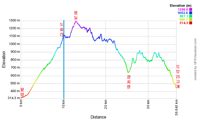 10:35 799.5봉(△)10:45 708.5봉10:49 광치령 / 백양산다람쥐님께서 주신 빵 나머지를 먹으며 휴식을 취한뒤 다시 출발(9분). 통상 1구간을 이곳에서 끊는 경우가 많은데 이곳에서 5.2Km 이동하면 팔랑에서 양구행 농어촌 버스(종점 출발 15분후 도착 예상)를 타던지, 2.2Km 더 이동하여 남면 시외버스 정류장에서 양구발(8~9분후 도착) 시외버스를 이용하는 방법이 있다, 택시도 있는데 비용이... 이유는 두무리고개에서 이야기11:27 쉬운 임도를 버리고 고생길로 오른 838.1봉 미쳤다 미쳤어