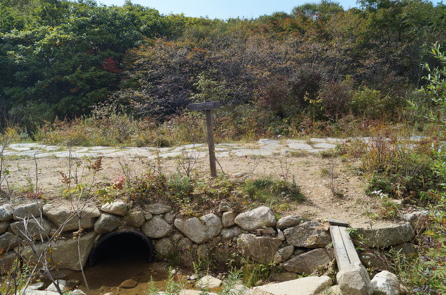 06:51~06:55 약수터 / 장거리 산행이라 베낭 무게도 감안해야 하고 물도 중요하다. 어제 베낭을 정리하면서 예비로 챙긴 햅반을 버릴까 했는데 돈인데 조금 무게가 나가더라도 집에 되가져 가자, 2014년 인제군 서희면에서 오르는 대왕산 용늪 체험 덕분에 이곳에서 물 1L를 보충한다. 만약 이곳 사정을 몰랐다면 처음부터 1Kg의 무게를 짊어지고 올라어야 했다 06:55 용늪 체험입구