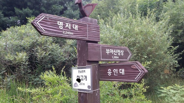 09시13분경 효자고개는 도로로 인하여 절개되어 우측으로 등로가 있지만 좌측으로 내려선다.09:19 용인정신병원 삼거리(신호대기중인 차량)까지 내려 서면 횡단보도가 있는데, 귀찮아 적색 신호등으로 차량이 멈췄을때 가드레일 끝지점으로 이동하여 횡단한다. 횡단하자 마자 등로가 있어 들어 선다 09:23 252.7봉메주고개 내려 서기전 등로가 우측으로 우회한다. 요놈 때문에
