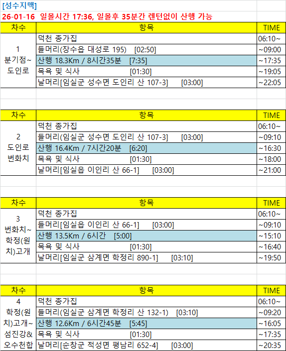 | 성수지맥(분기점~도인로 ; 2026-01-24) (0) | 2026.01.25 |