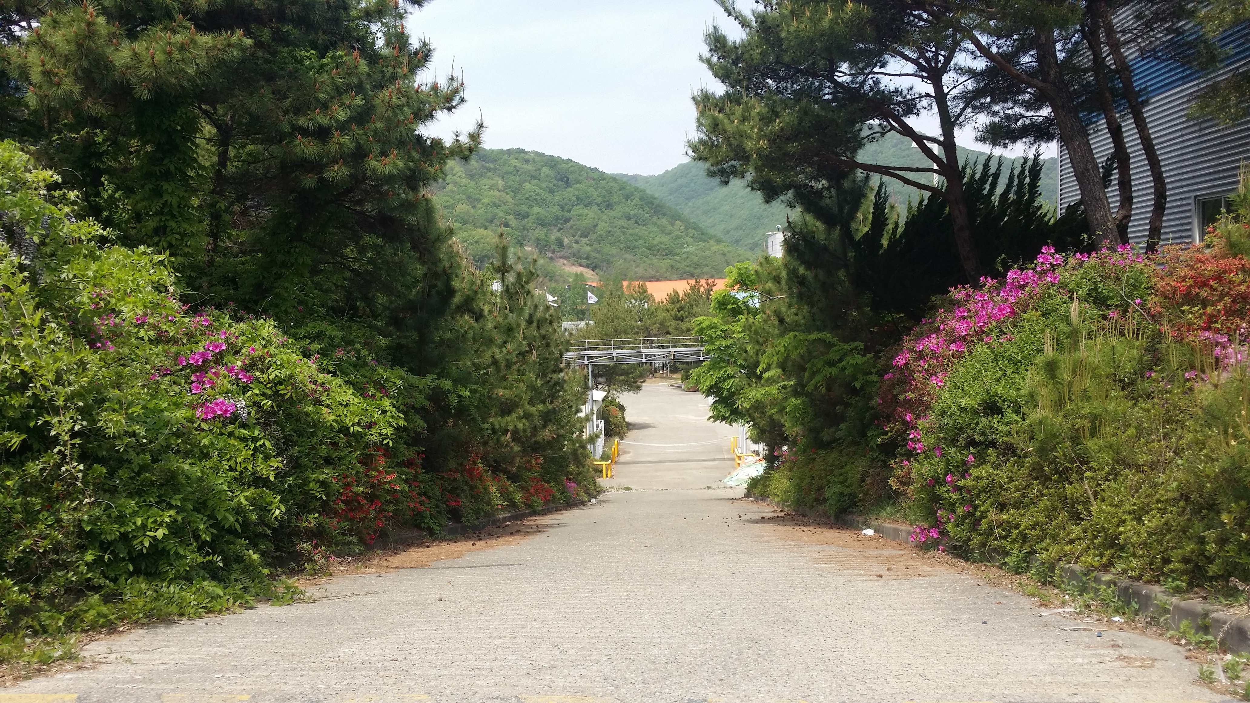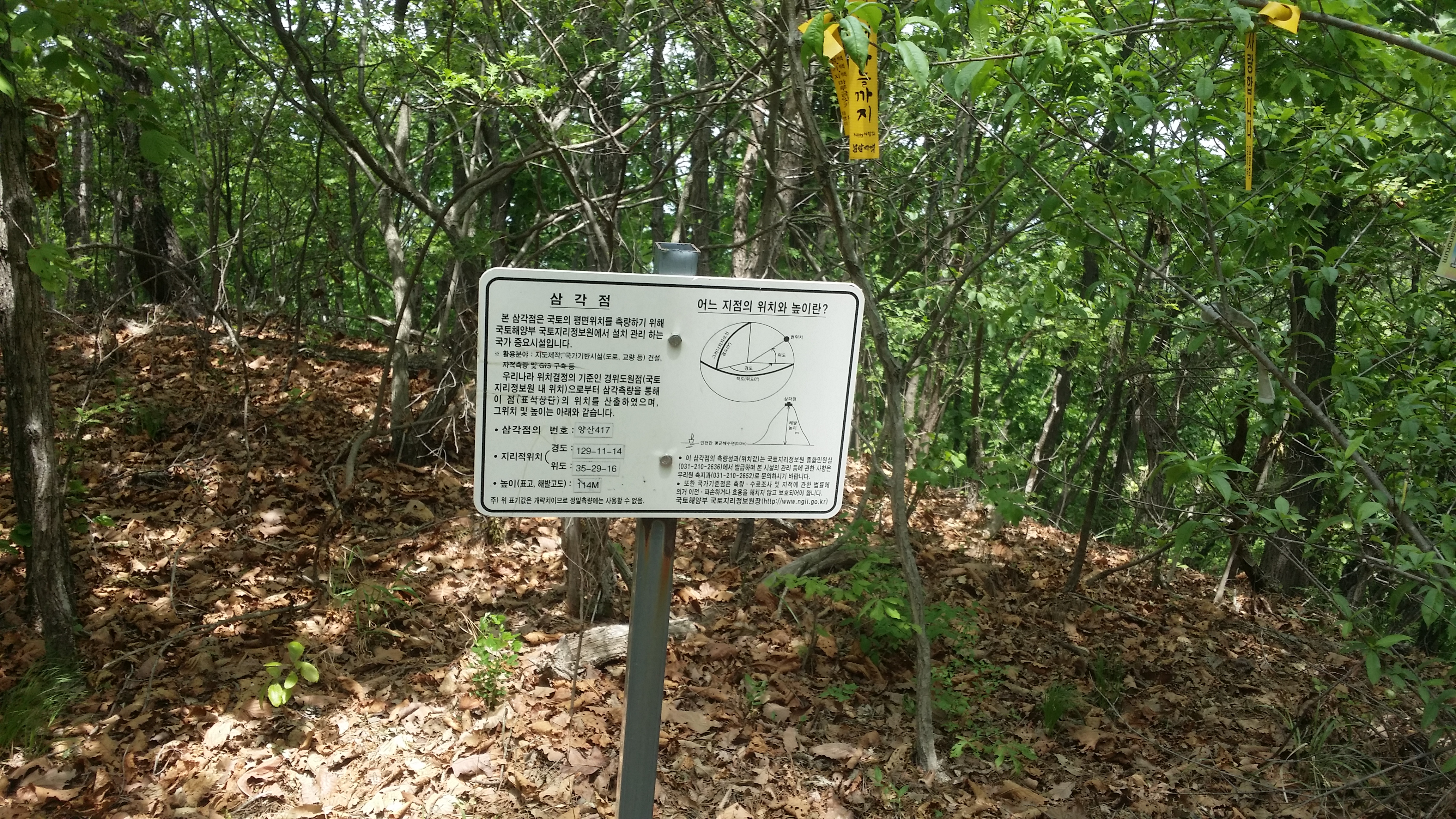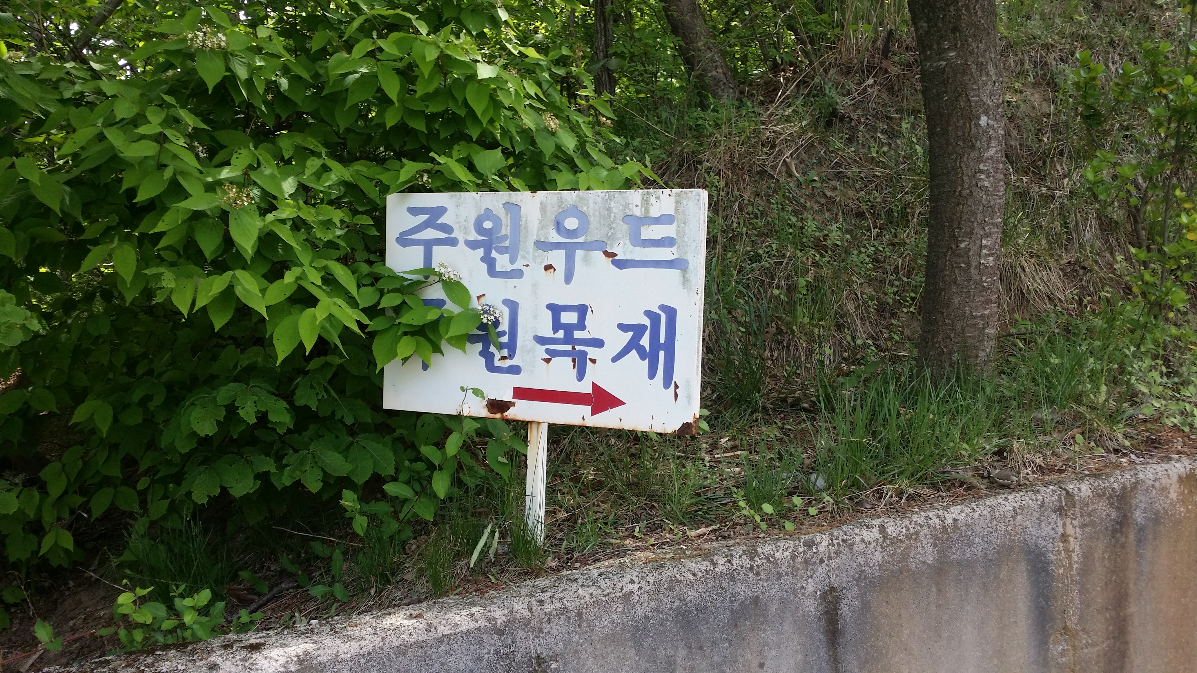 12:54 222.8봉(△)13:02 마루금은 직진인데 우측으로 등로가 형성되어 있다직진해보니 절개지다13:05 주원목재 정문앞으로 내려선다13:08 민우농원을 진입한다13:12 전방 좌측에 가옥 및 승용차 그리고 아낙네가 텃밭에서 김을메고 있다. 우회 루트가 없다. 난감하지만 부딪혀 보기로 한다. 미안하다며 지나가니 별다른 제재가 없다13:25 311.5봉