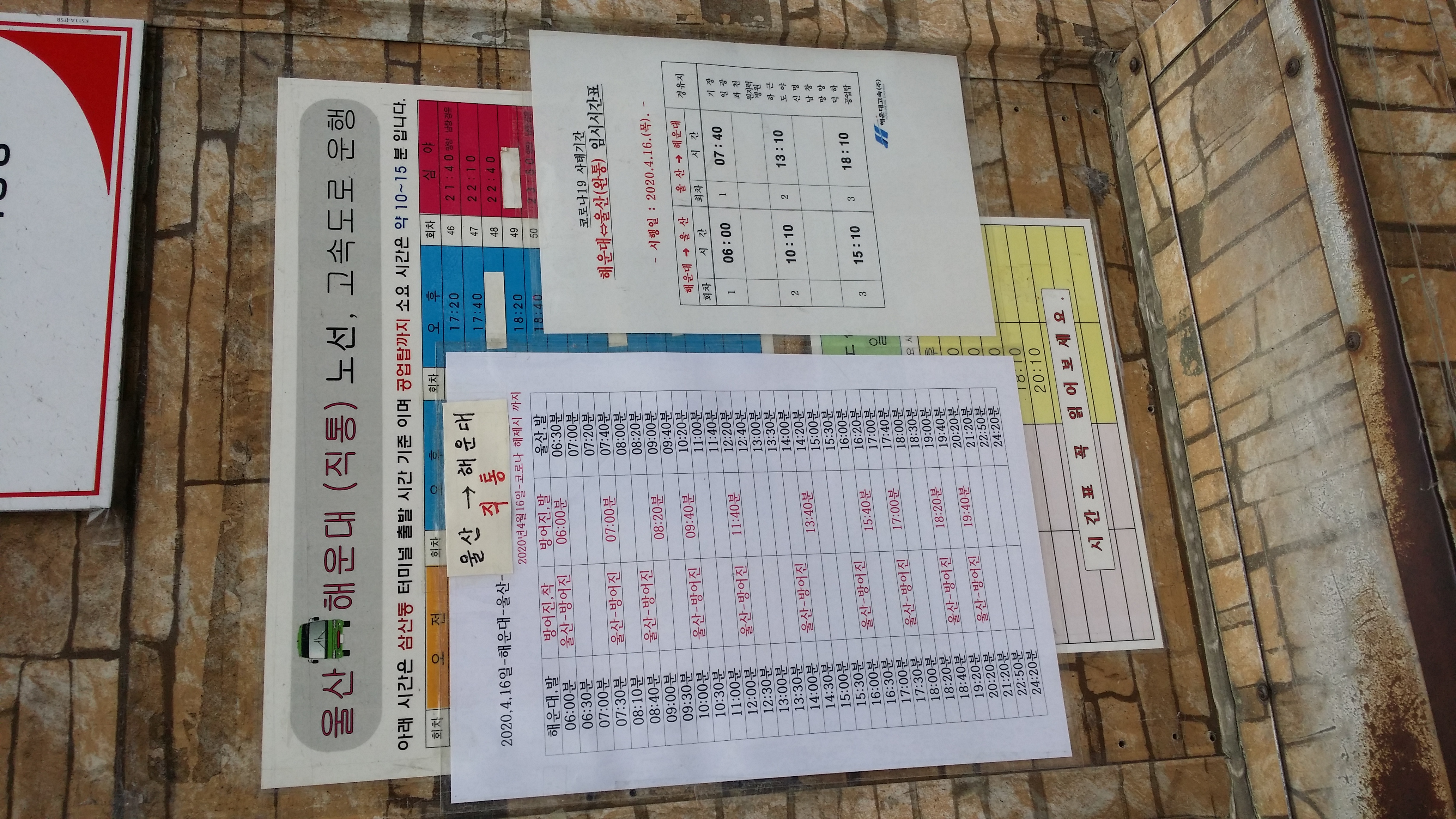 16:47 두현삼거리 / 맥길은 여기까지16:53 율리 공영차고지 / 울산시외버스터미널 방면으로 124, 134, 401, 482, 492, 712번이 수시로 운행 한다울산~해운대 시외버스 시간표