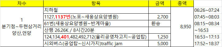 61번 운행시간표부산 노포동 버스 환승센터에서 들머리 반계마을까지 직통으로 가는 버스는 없다. 최종적으로 울산61번 버스를 환승해야 하는데 부산 노포동 버스 환승센터에서 양산버스 58,2100,2300번과 부산버스 1002번도 있으나 울산버스 1127, 1137번을 타는게 요금 구조상 저렴할것 같다예상 스케쥴(울산시 제공 버스 시간표를 잘못봐 엉터리 스케쥴이 되었다)