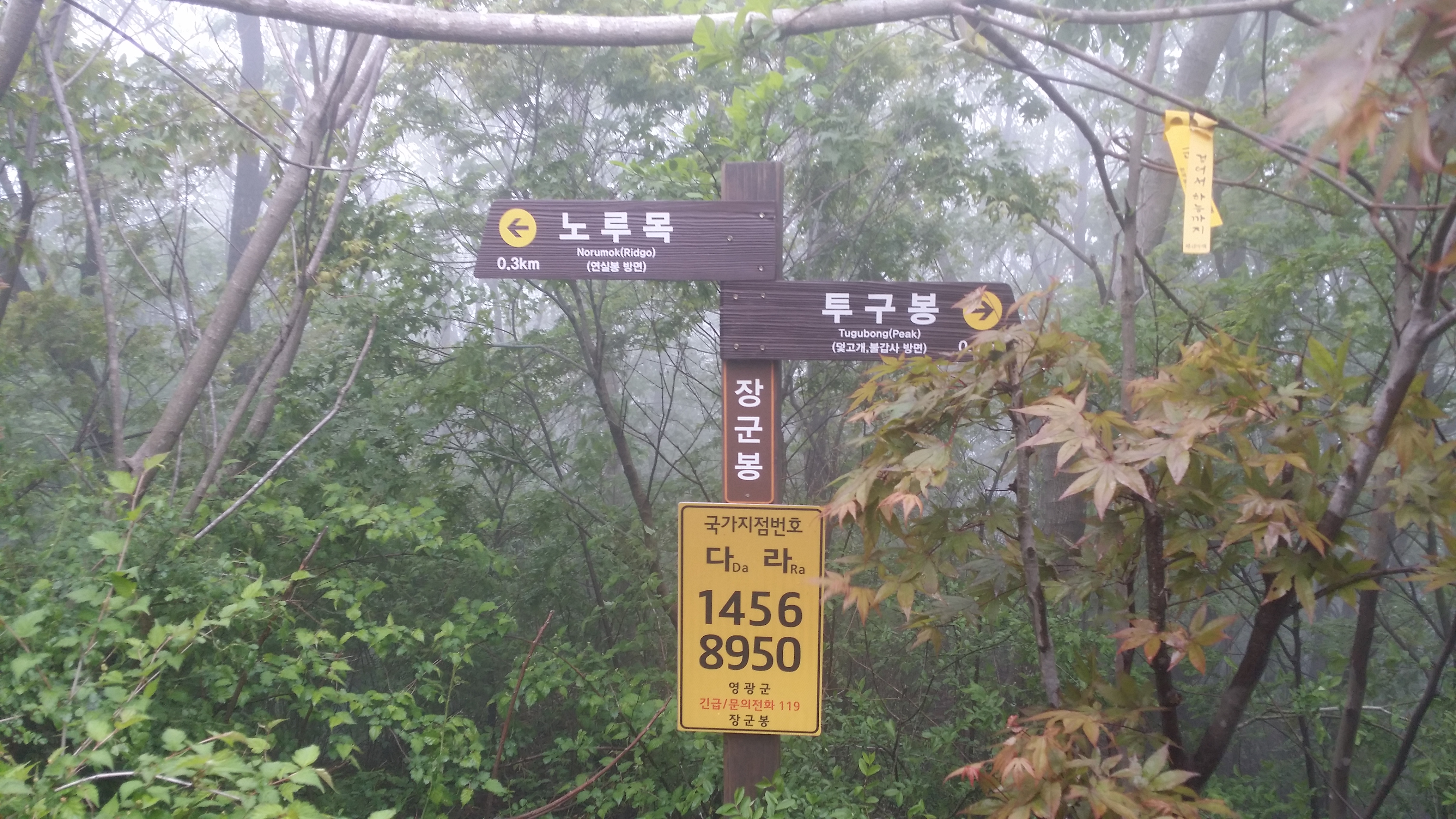 전날 주왕지맥 무박산행에 오늘은 영산기맥 산행이 계획 되었는데, 토요일 비가 내리는 바람에 다행히 무박 주왕지맥은 순연 되었다. 이번 구간은 지금껏 진행했던 구간과 크게 다를바 없이 잡목과 가시나무로 약간의 어려움이 있을걸로 알고 있었는데, 산행전날 최근 산행기를 훝어보니 무려 11시간 걸릴 정도로 최악이다. 가시밭길에 등로 찾기도 어렵다네. 함께할 동료들에겐 사기 차원에 함구하고 산행을 진행 했는데, 불갑산 정규 등산로 4Km를 제외하곤 그야말로 최악이다. 거기다 전날 내린비로 물먹은 나뭇가지와 가시에 일회용 비옷은 찢겨져 무용지물이 되어 산행내내 전신에 물 한바가지 덮어쓴 형상에 등로가 제대로 보이질 않아 알바하기를 수십회, 흐 지금껏 지맥 산행하며 거의 처음부터 끝까지 고난의길을 걸은건 처음이다.