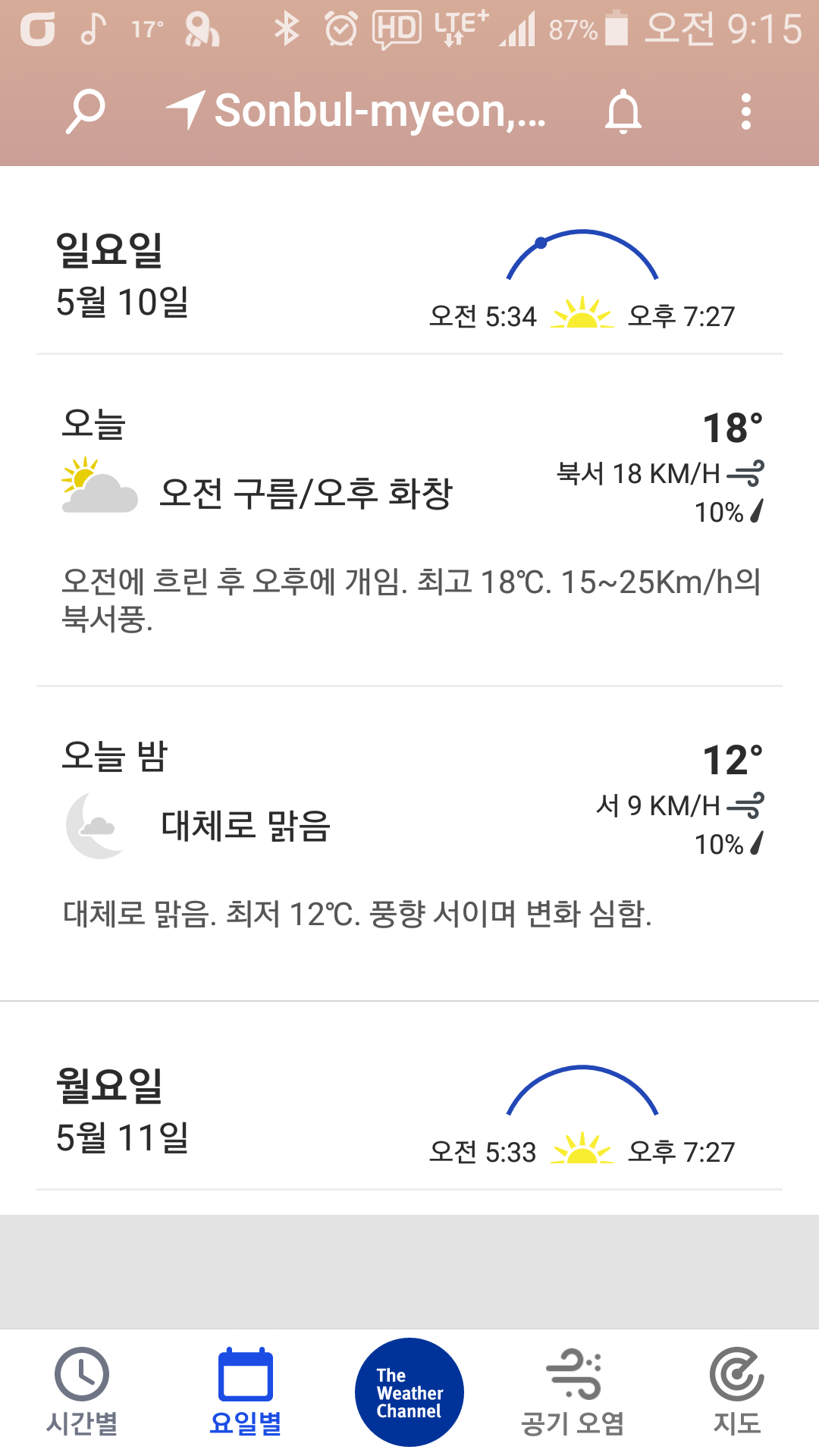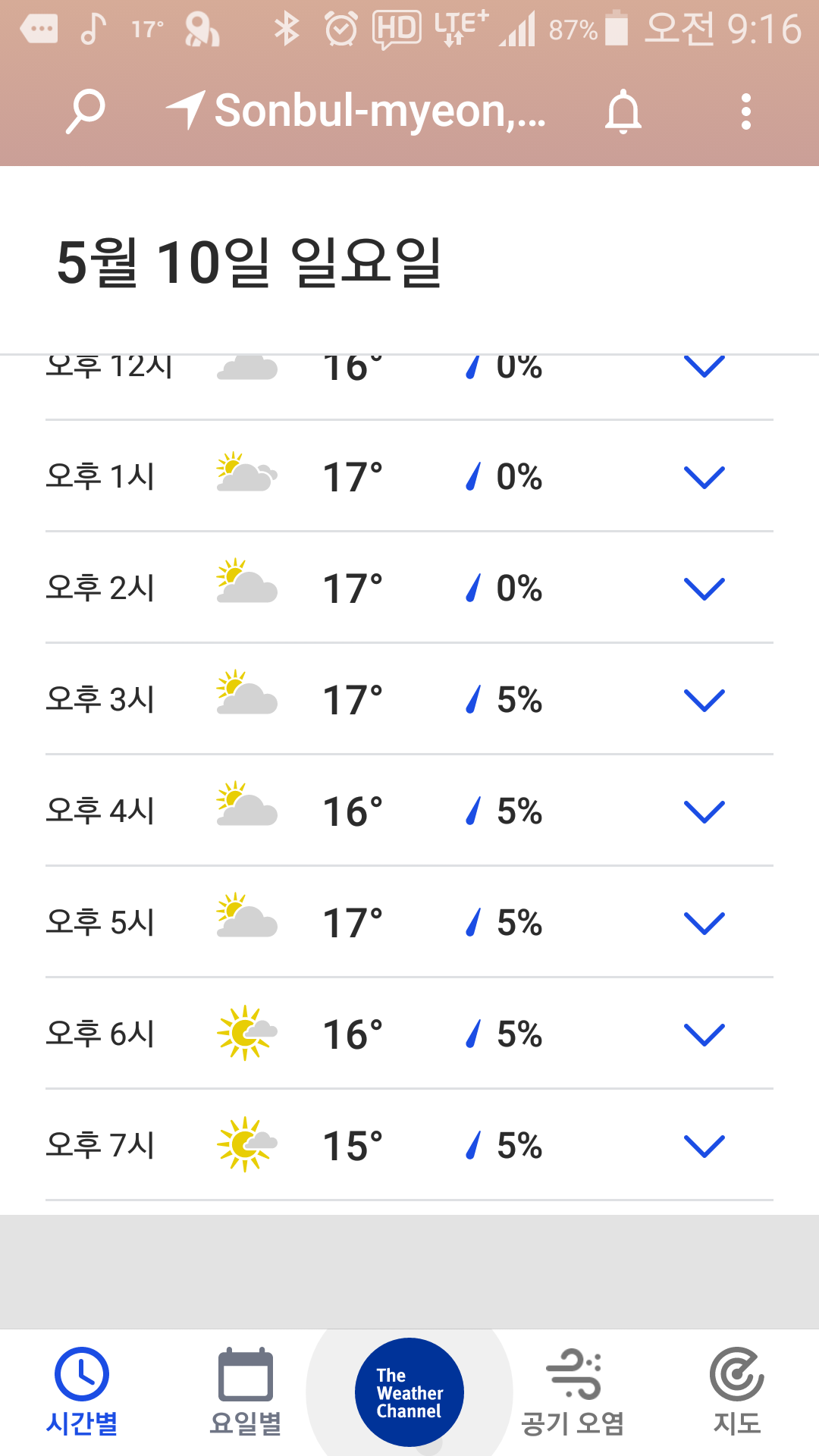- 현지기온 : 14~17, 티, 0.5L(오미자) 소모