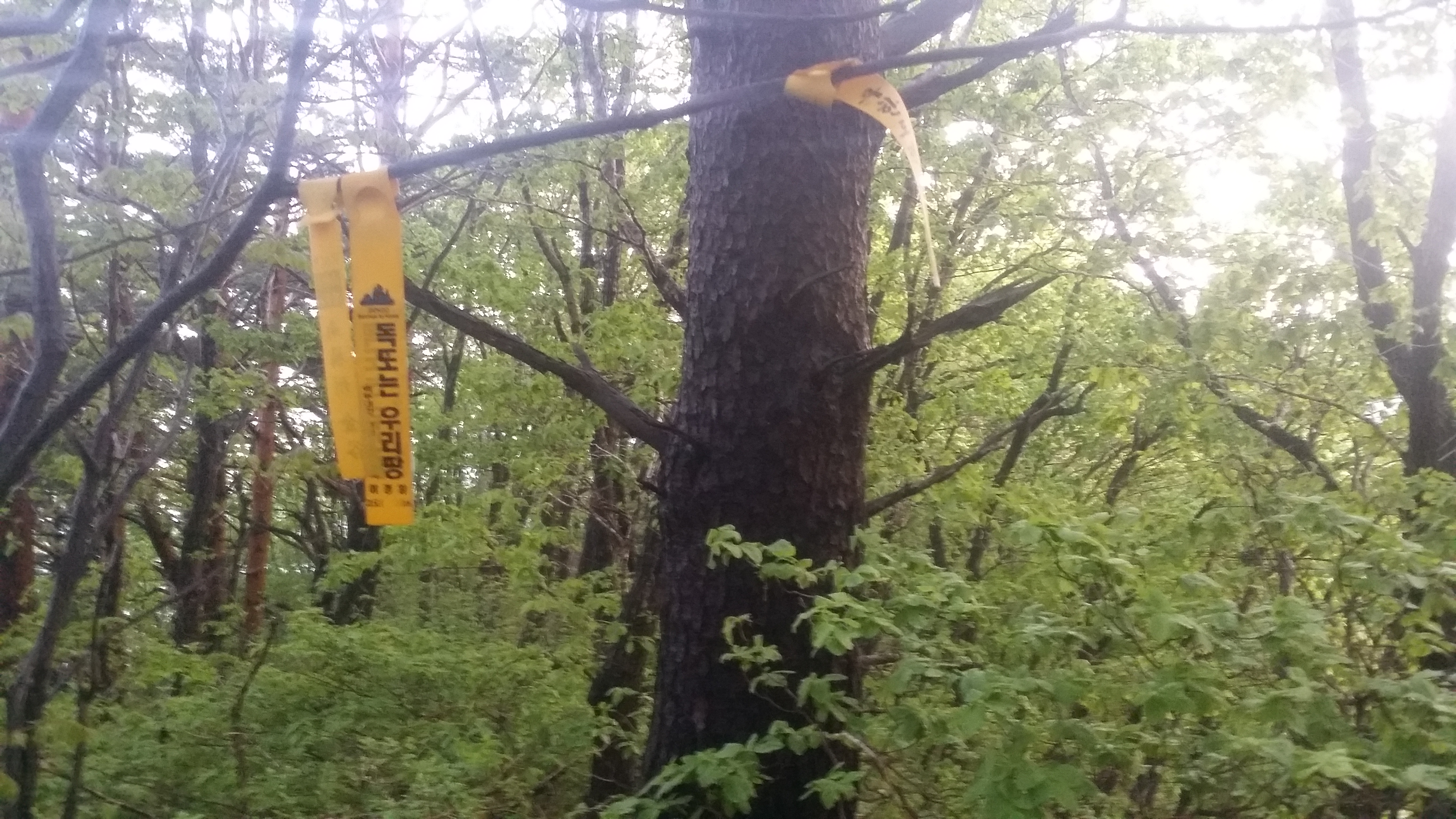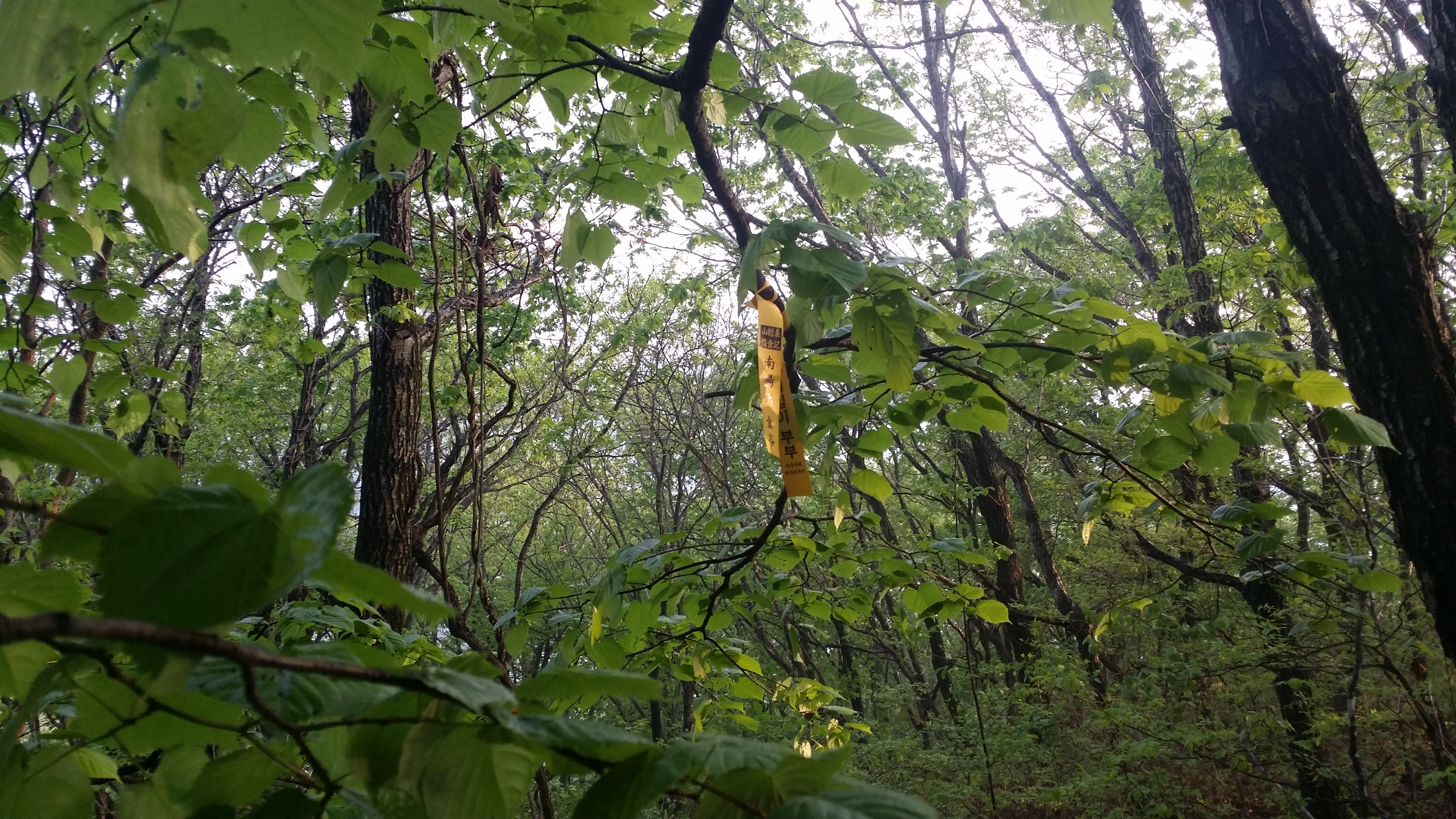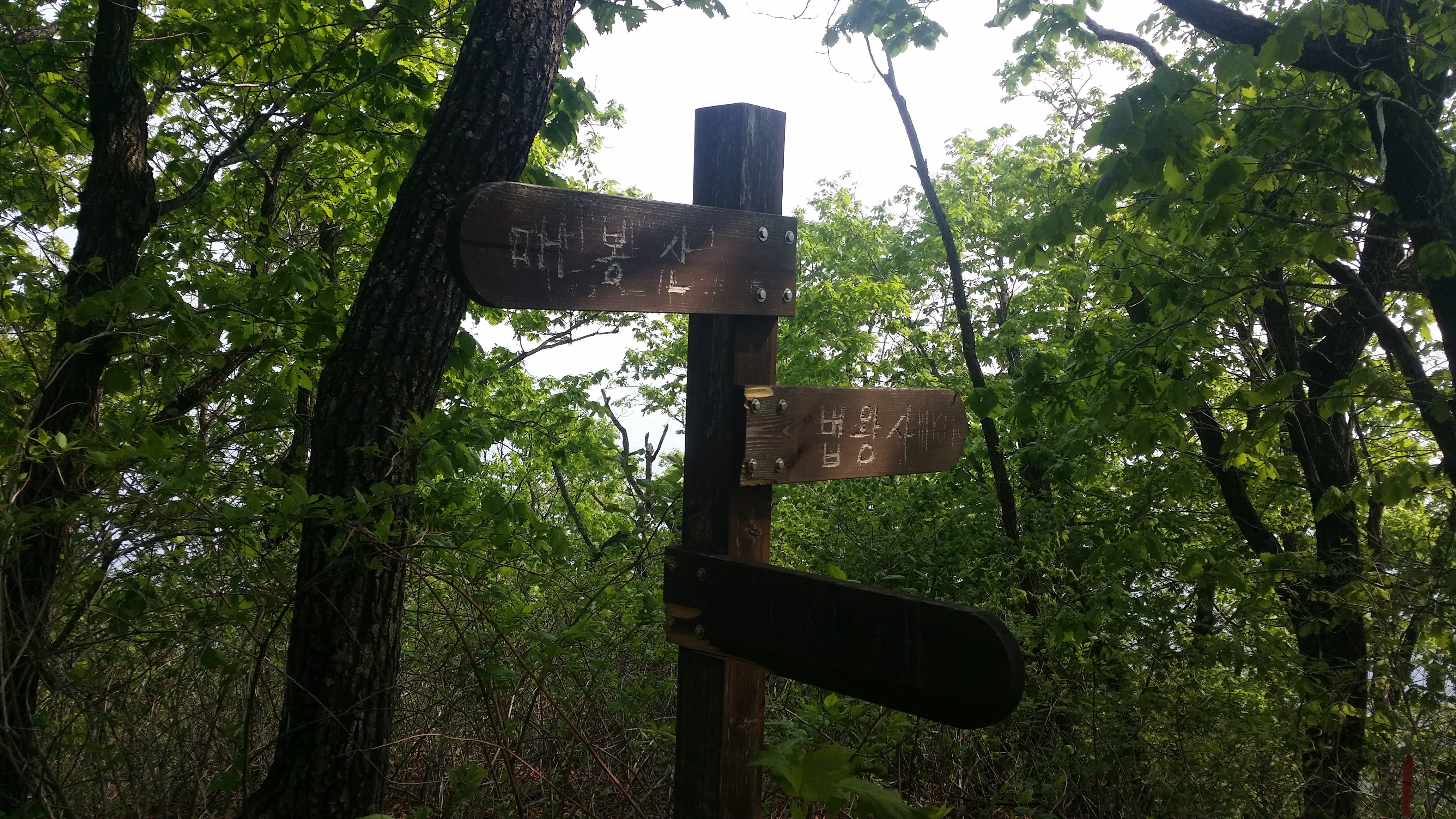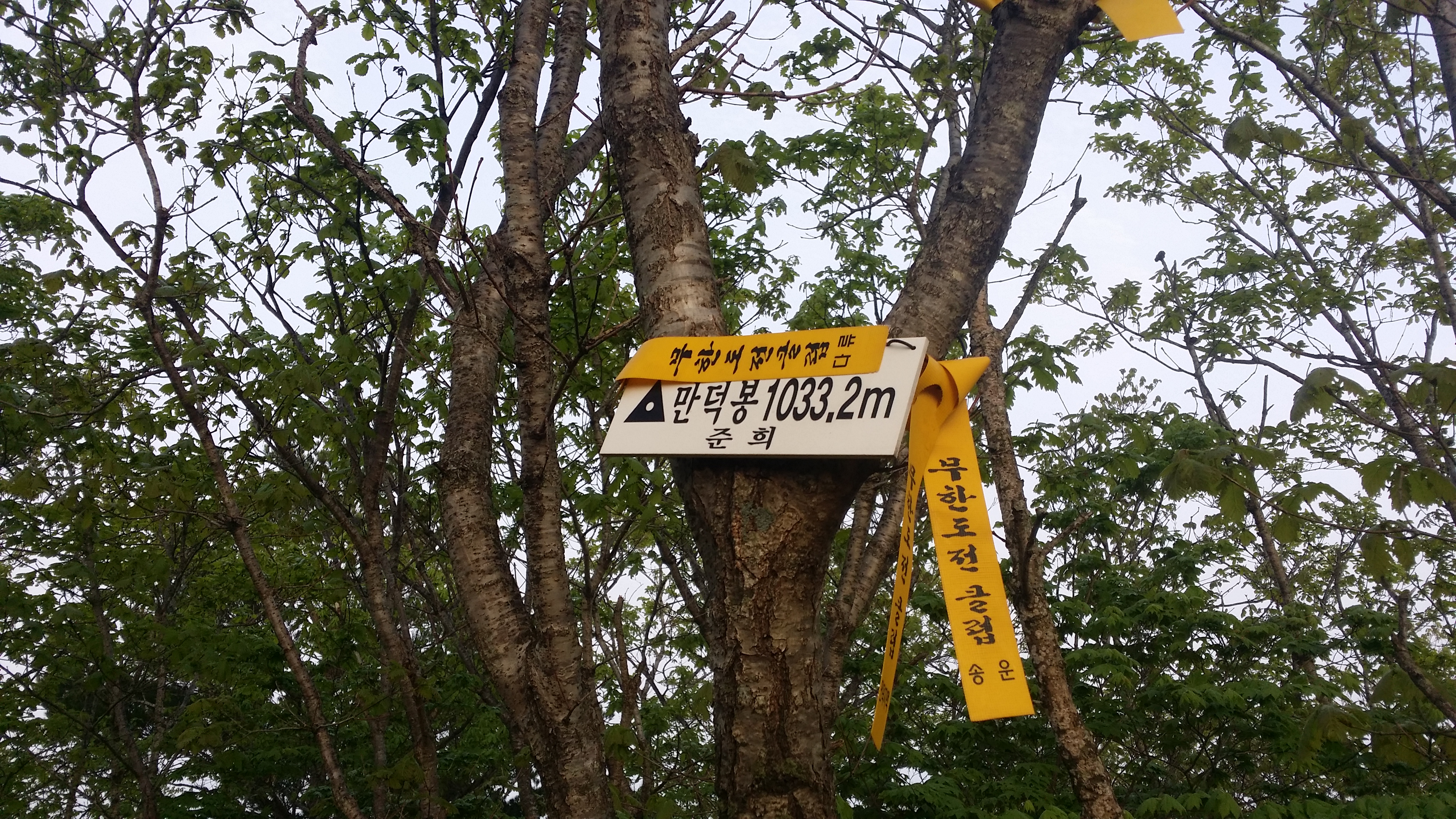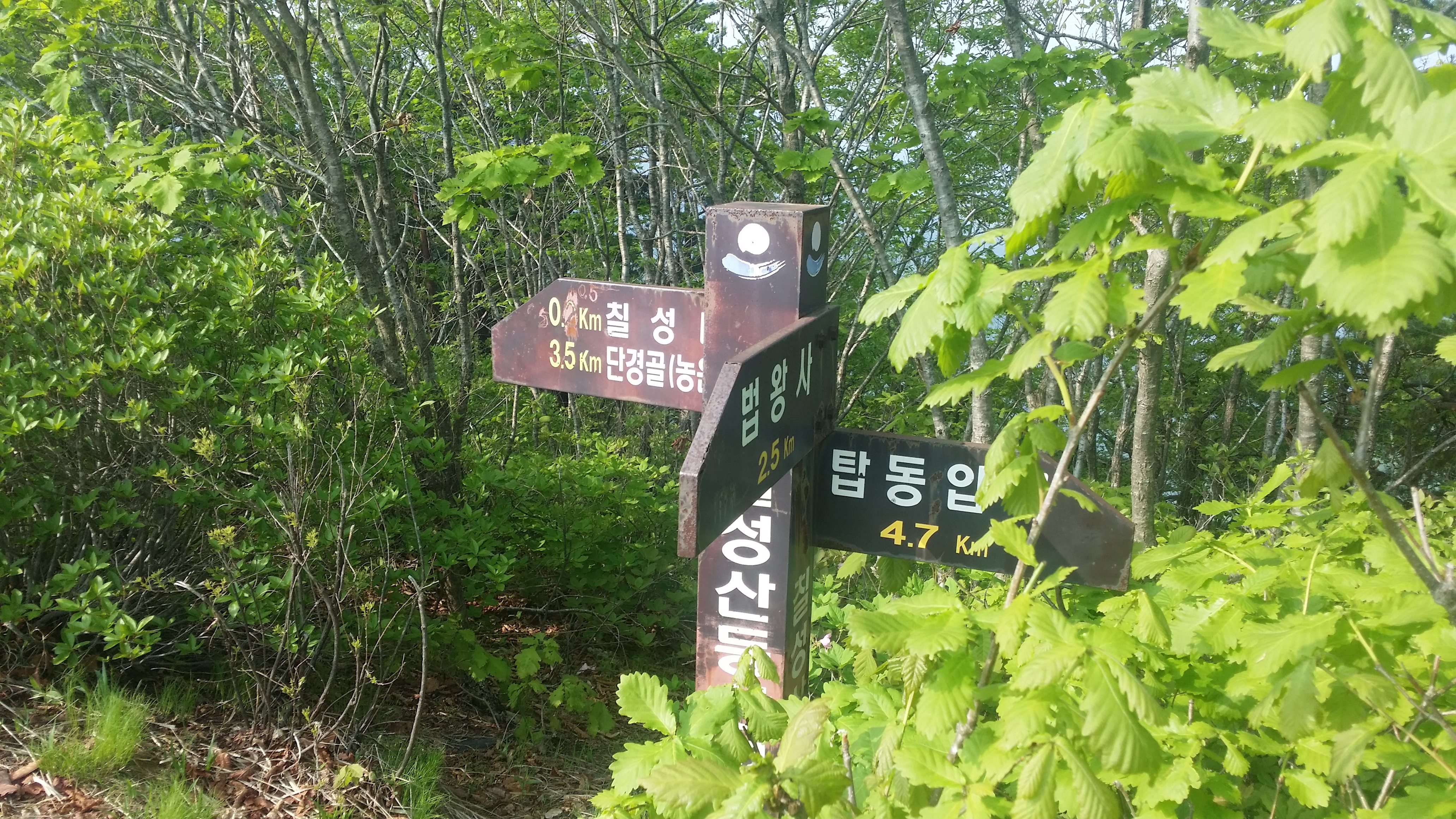 부산 숙등역에서 22시40분 출발하여 구정휴계소(05:56~03:23)에서 카레밥을 먹고 삽답령으로 향한다산행하기에 날씨가 좋습니다. 다행스럽게 강릉 벗어날 시점에 국지적 뇌우가 발생 한다네요03:52 삽당령 / 백두대간 한다고 몇번 들락거려 이제는 낮설지도 않습니다. 예상보다 10분 초과되었네요. 장거리 산행이라 여유시간이 많으면 많을수록 좋는데. 만덕지맥 하기엔 교통편이 뭐해 대간팀에 끼여 와서는 도둑 고양이처럼 사라집니다. 사진찍고 스트레칭하기에는 마음이 급합니다04:10 외고단 갈림길04:17 863.7봉(△)04:54 만덕지맥 분기점 / 두리봉에서 분기하지만 실제 등로는 여기서 부터05:56 두리봉(1033.4m, 만덕지맥 분기점) / 고요한 정적, 몽한적인 안개, 신선한 새벽 공기, 새들의 지저귐속에 걸었더니 기분이 좋다. BACK 대신에 대충 마루금을 잇는다. .05:20 801.3봉05:45 선목치(945.7m)경험에 의하면 렌턴이 필요한 시간은 대략 일출, 일몰 ±30분경 입니다. 즉 오늘 일출이 05:12이었으니 04:42분경쯤 되면 렌턴 없이 산행이 가능하다는 의미죠05:58 임도06:11 만덕봉(△ /1035.3m) 전날내린 비를 머금은 풀잎때문에 등산화에 물이 들어오기 시작합니다. 2년6개월 부지런히 신었는데, 스페어로 돌리고 새로 구입해야할것 같습니다. 이곳까지는 등로 진행하는데 어려움이 없었습니다. 이제부터 970.4봉(칠성산?)까진 등로가 희미합니다 만덕봉에서 마루금 찾는데 애를 먹습니다. 뚜렷한 등로가 제눈엔 안보입디다06:29 919.3봉06:31 등로주의 / 좌로, 내려서는길에 뚜렷한 등로가 안보입니다06:57 940.8봉(△)07:02 문제의 칼날바위 / 사진에선 안보이는데 바위 아래에 작은 소나무 가지가 있고 비실이님 시그럴이 있다. 그 부분에 칼날바위를 오를수 있는 홈이 있다 . 일단 올라서면 자유롭게 이동할수 있을만큼 넓고 안전하다우측으로 내려 서기에는 위험하다 바위위를 10m 이동하면 나무에 의지하여 점핑할수 있는 곳을 찾을수 있다.(지면과의 높이가 230m 정도며 경사도가 약간있어 점핑때 뒤로 넘어지지 않도록/밧줄 처리하면 만사 OK인데) 여기만 내려서면 만사 OK07:21 902.9봉07:38 898.9봉08:08 970.4봉 오름길 등로상태 및 각도가 세다지나온 마루금을 되돌아보고조금 더 이동하니 웬 칠성산? 아무튼 밥먹기에 장소가 직인다 (08:11~08:24) 이곳부터 매봉산 갈림길까진 등로 정비가 되어 있다08:33 법왕사 갈림길08:46 칠성산(△ /953.7m)08:52 법왕사 갈림길08:56 852봉09:04 탑동 갈릴길09:18 매봉산(820.7m)