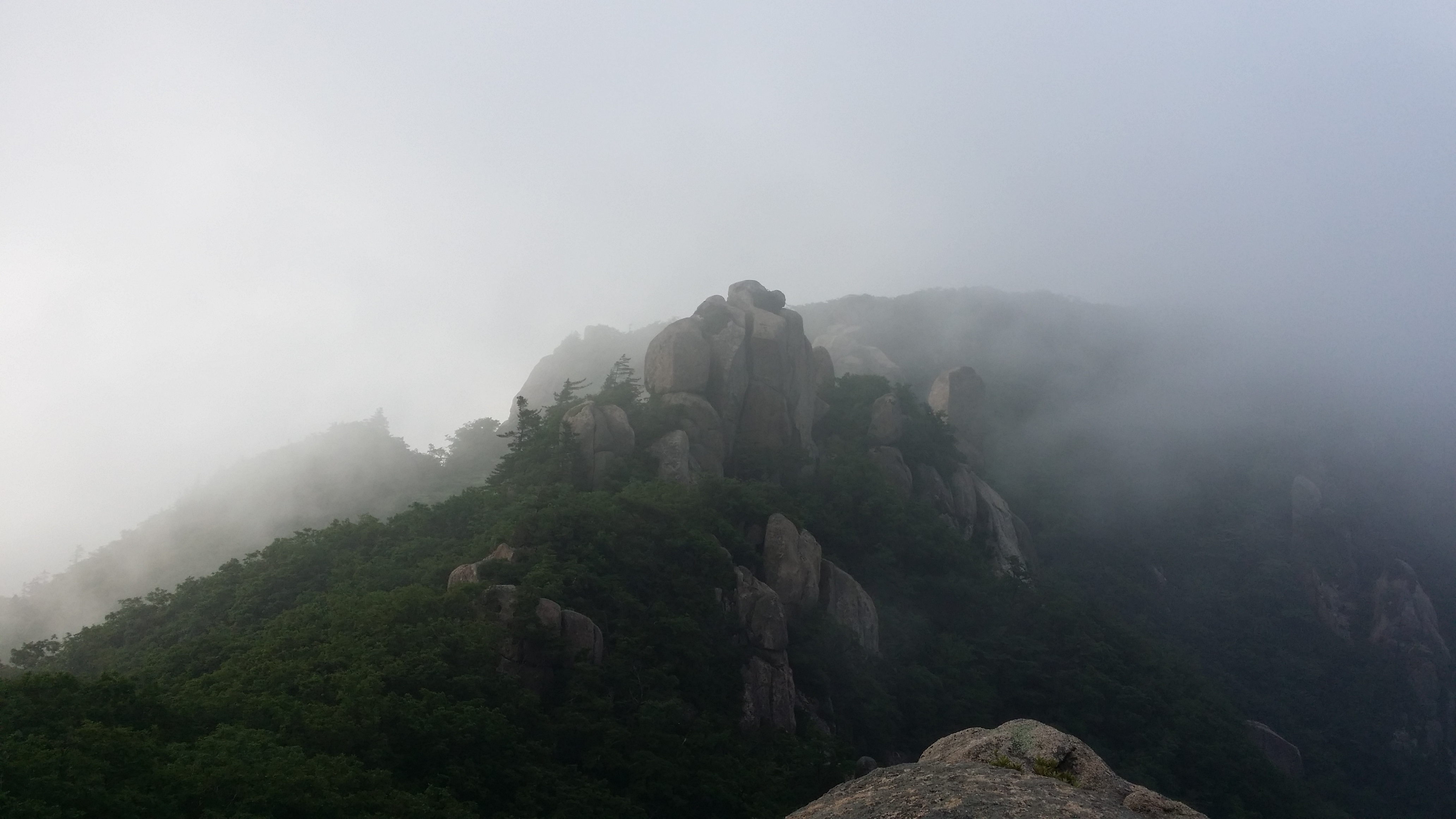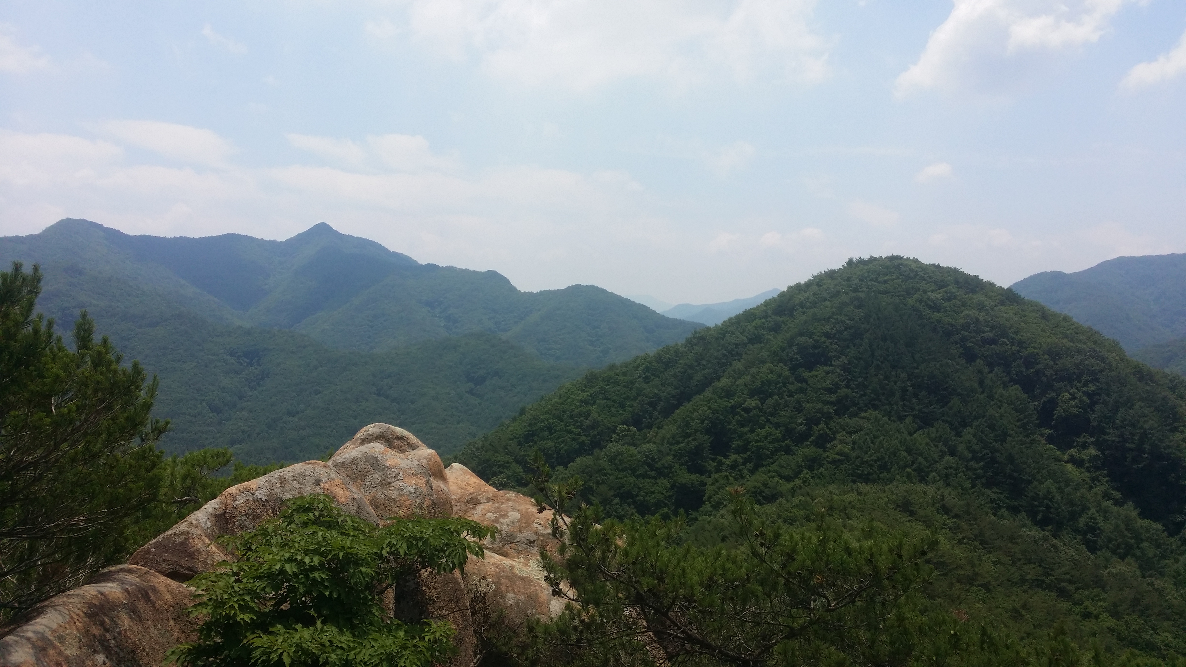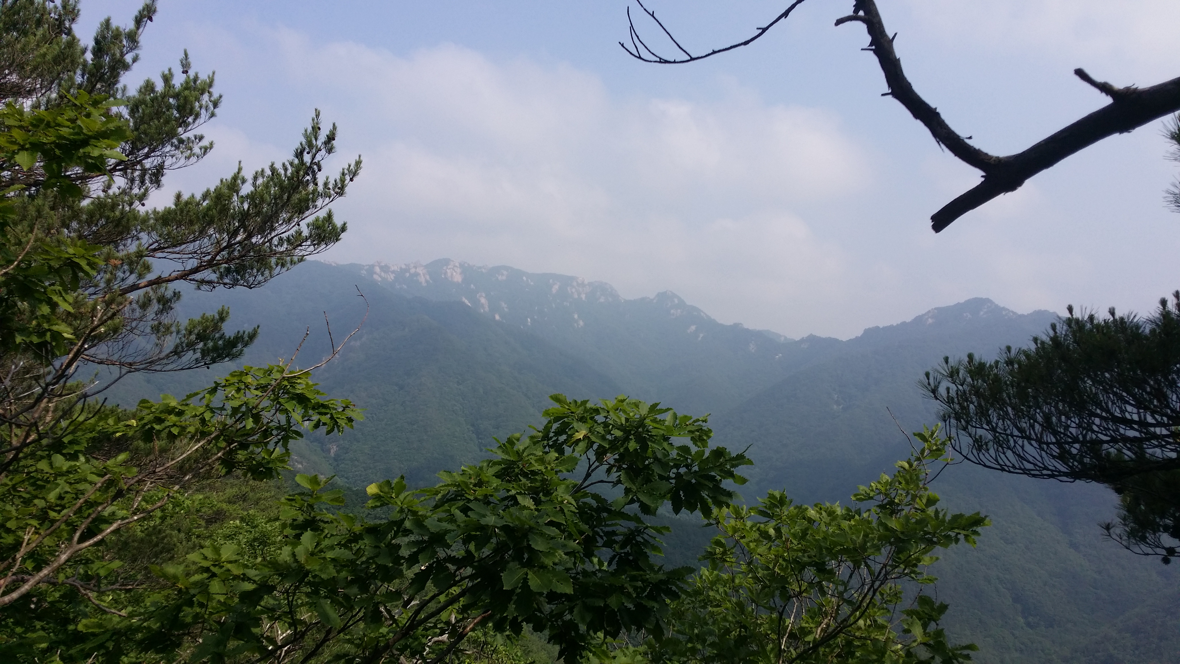 정상에서 뒤돌아본 문장대에서 마루금