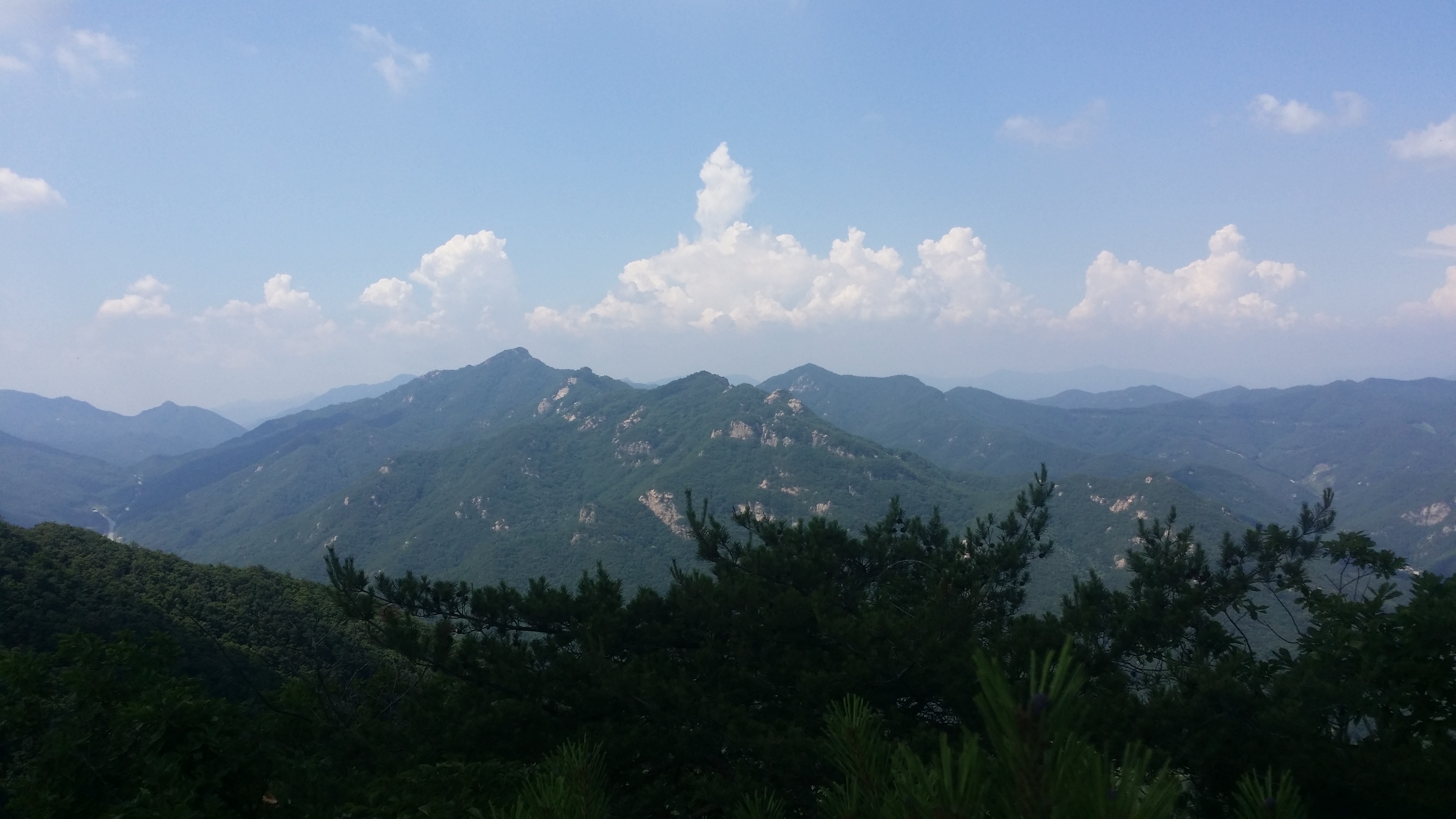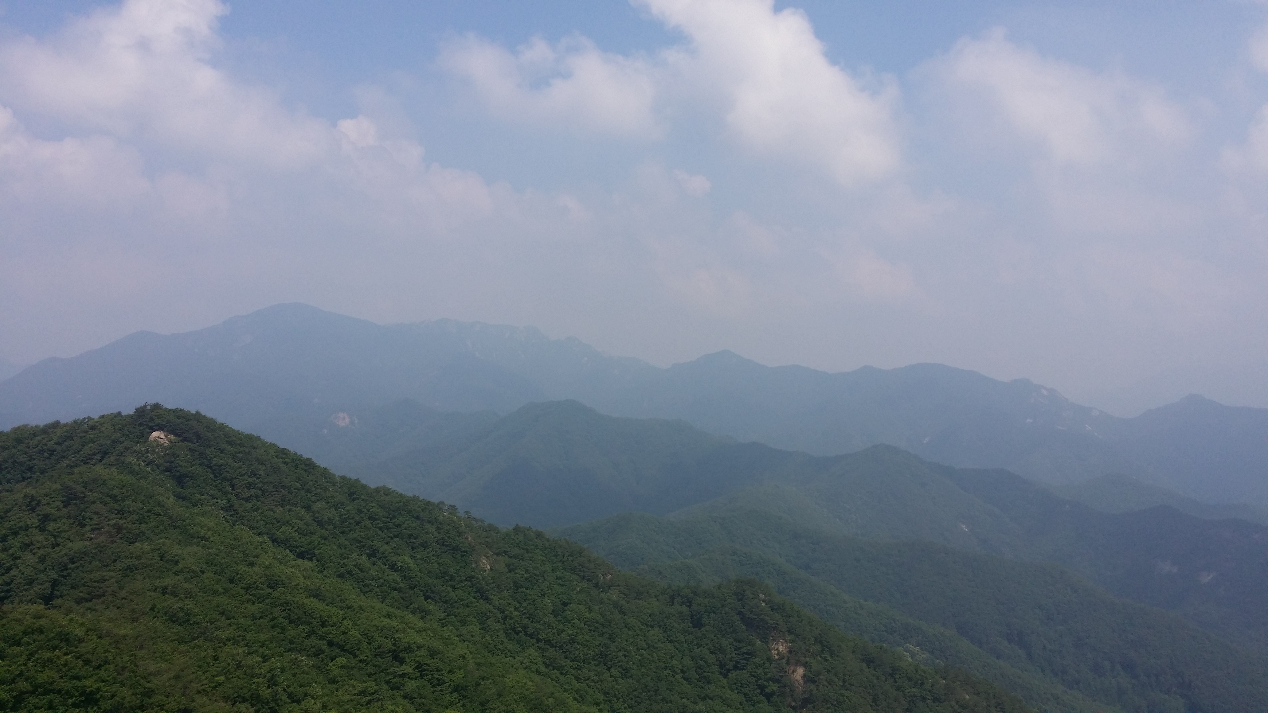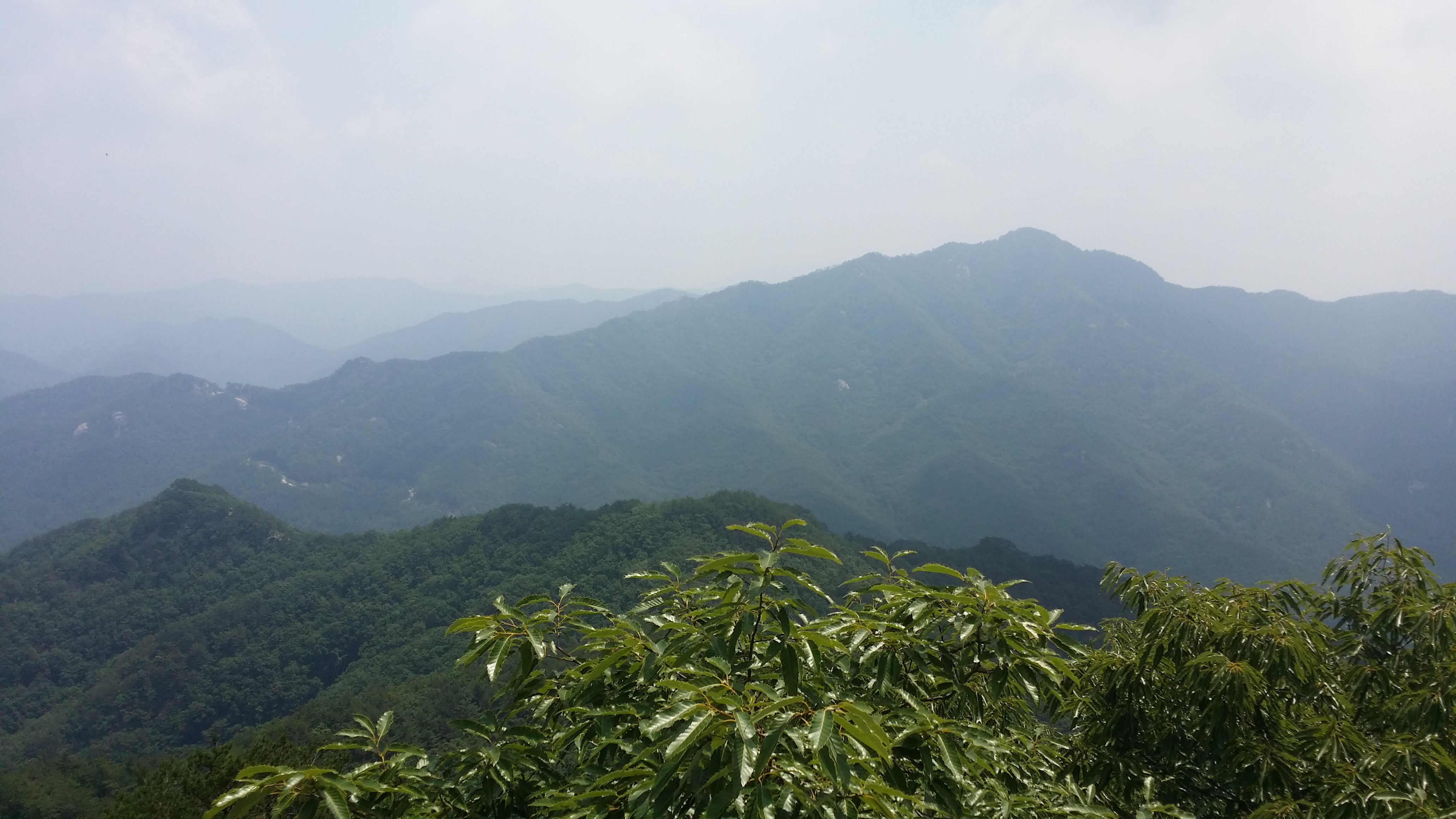 정상에서 뒤돌아본 문장대에서 마루금