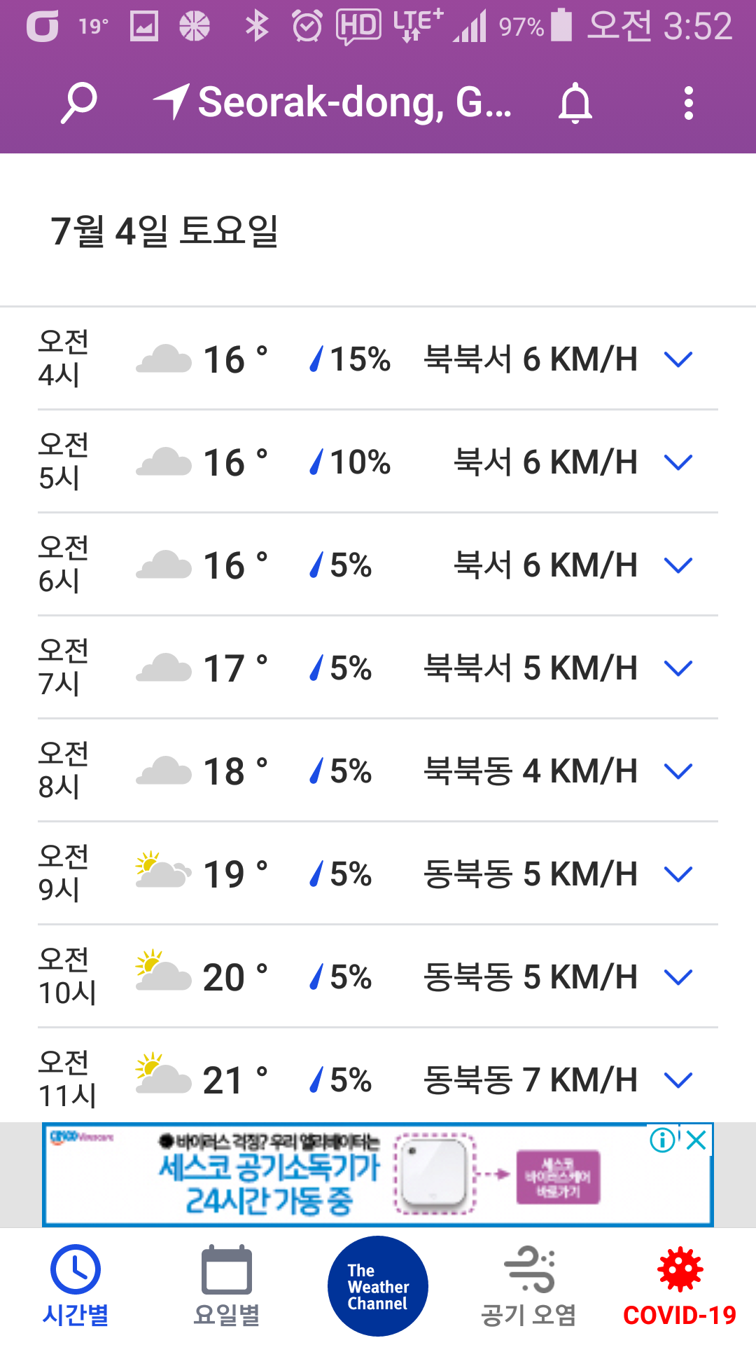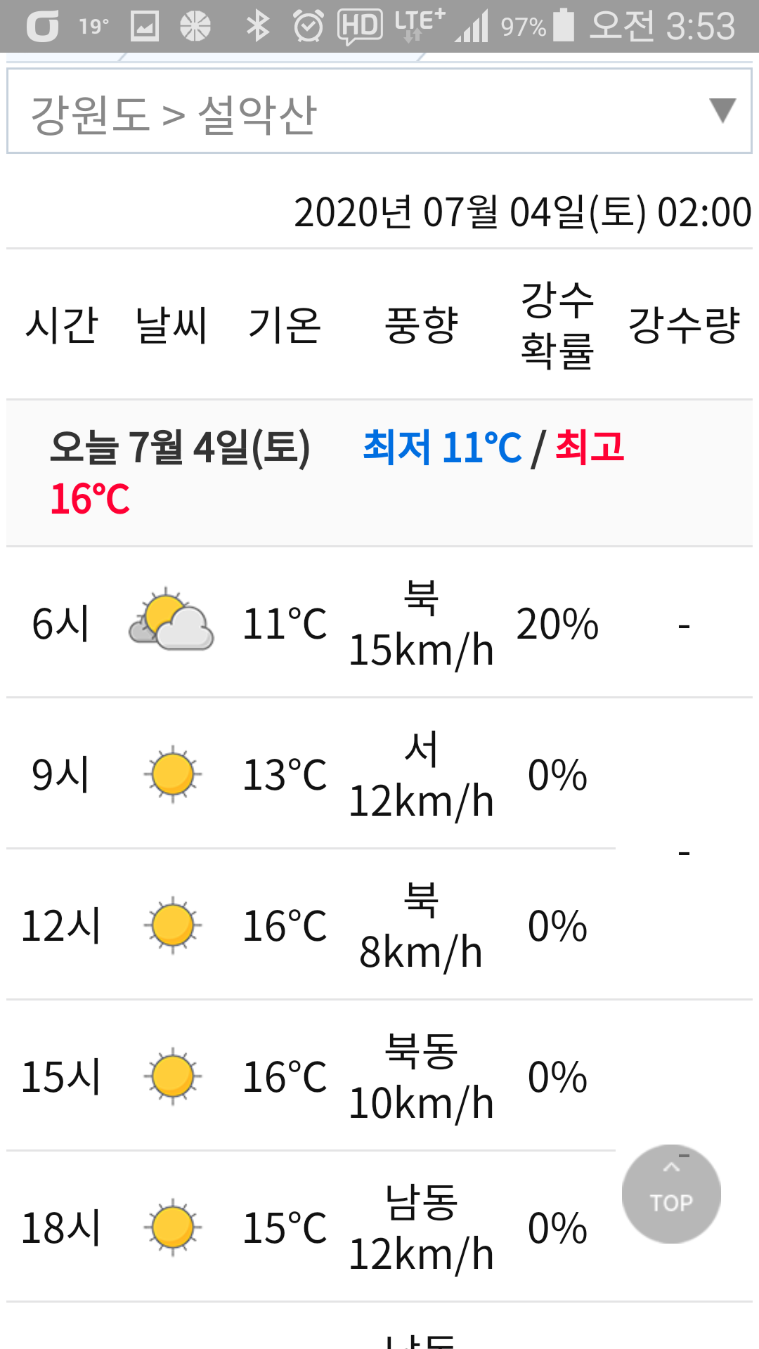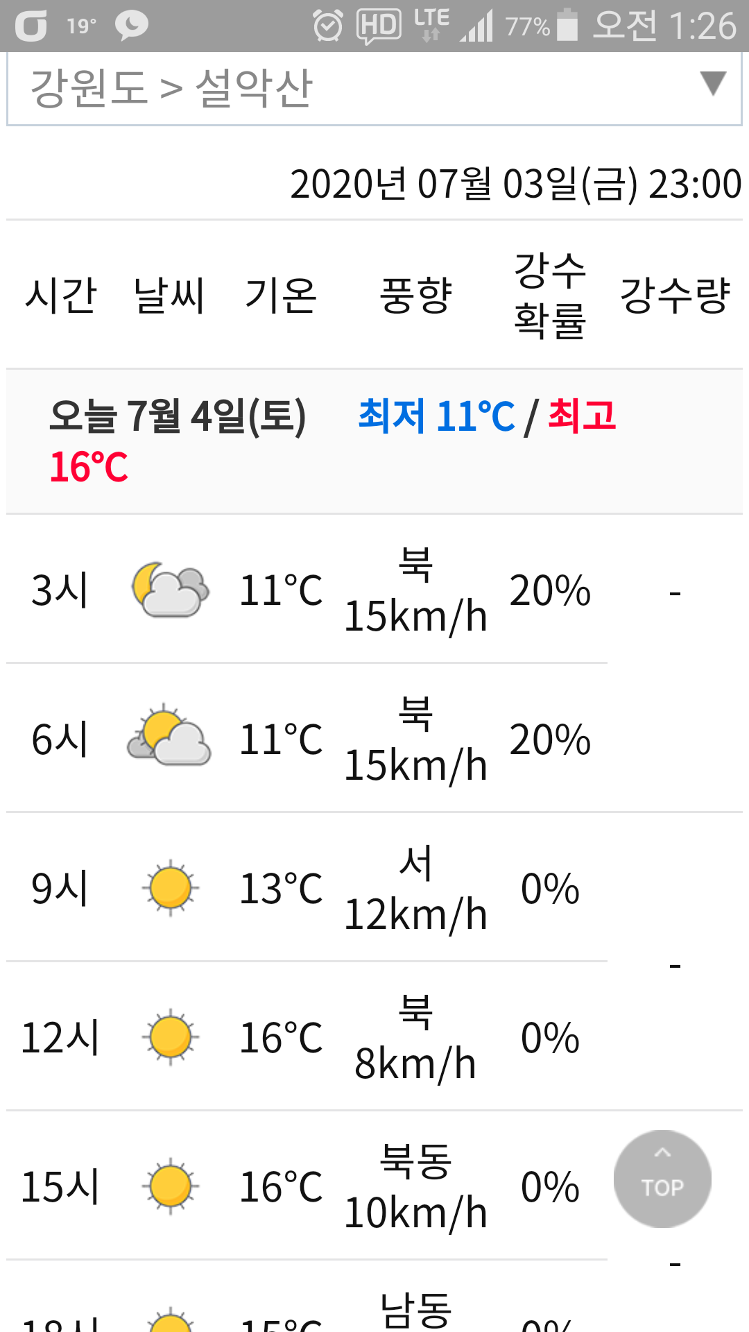 - 현지기온 : 11~16, 티, 오미자(1.4L), 포도쥬스(0.5L) 소모