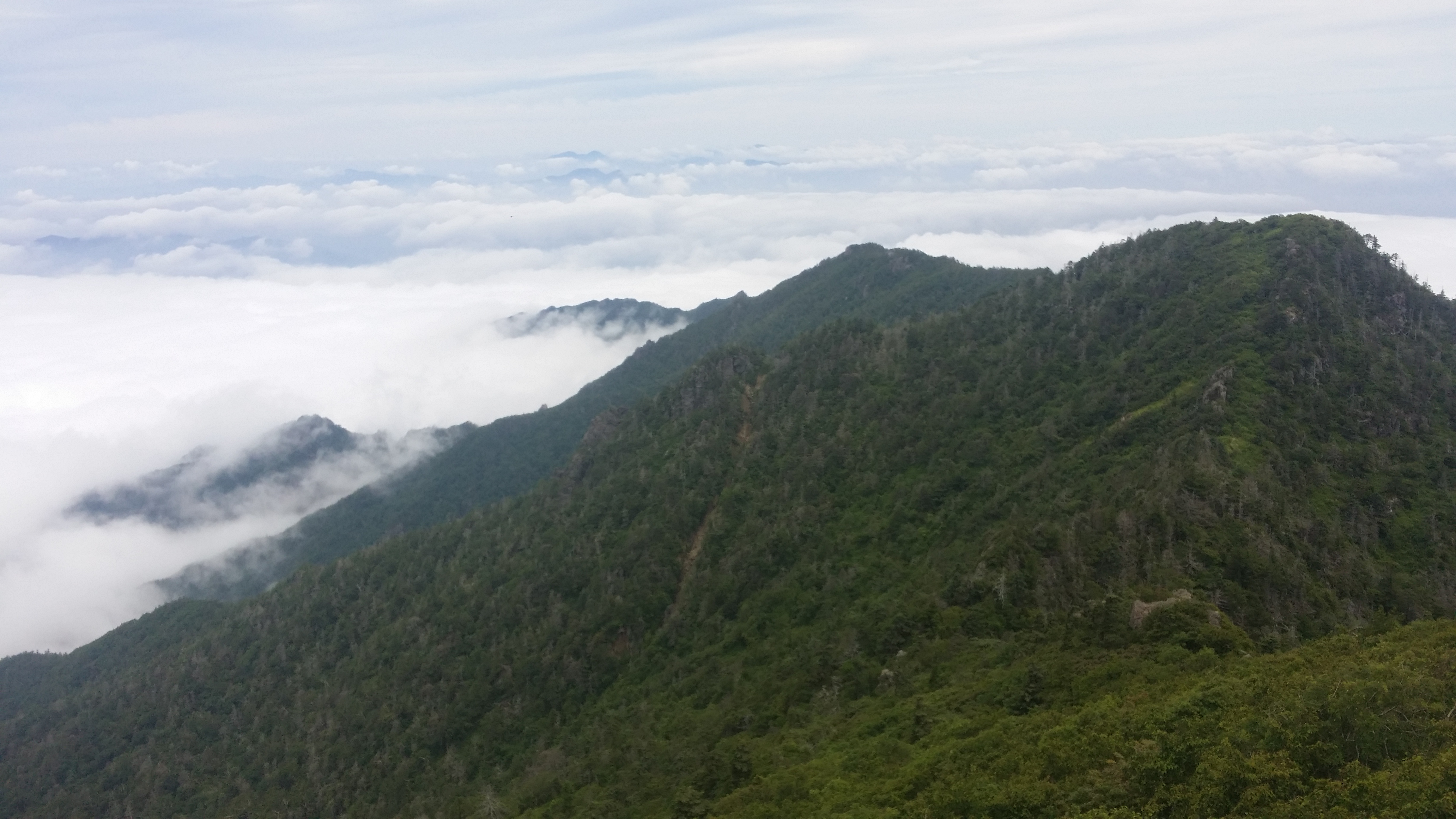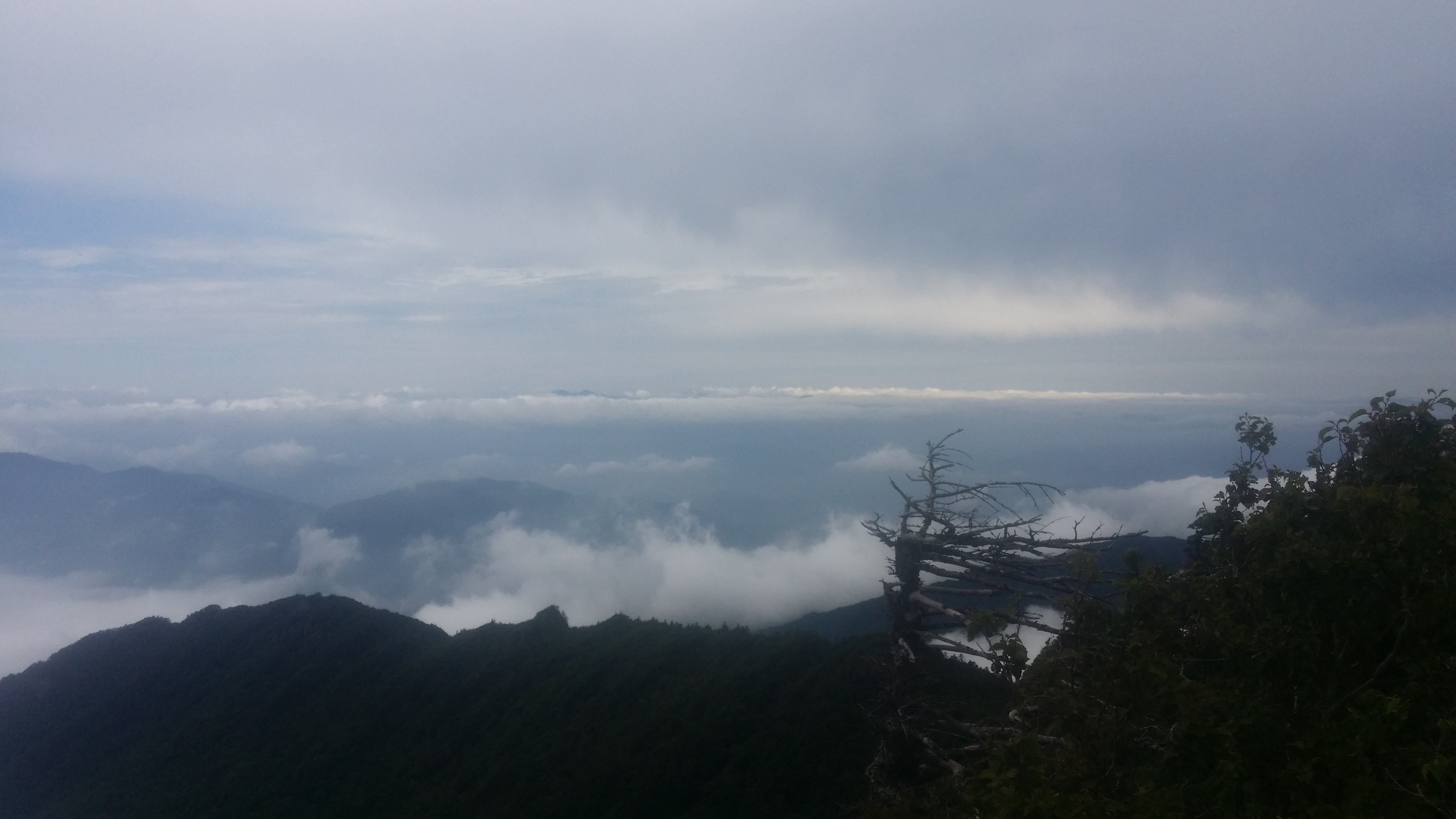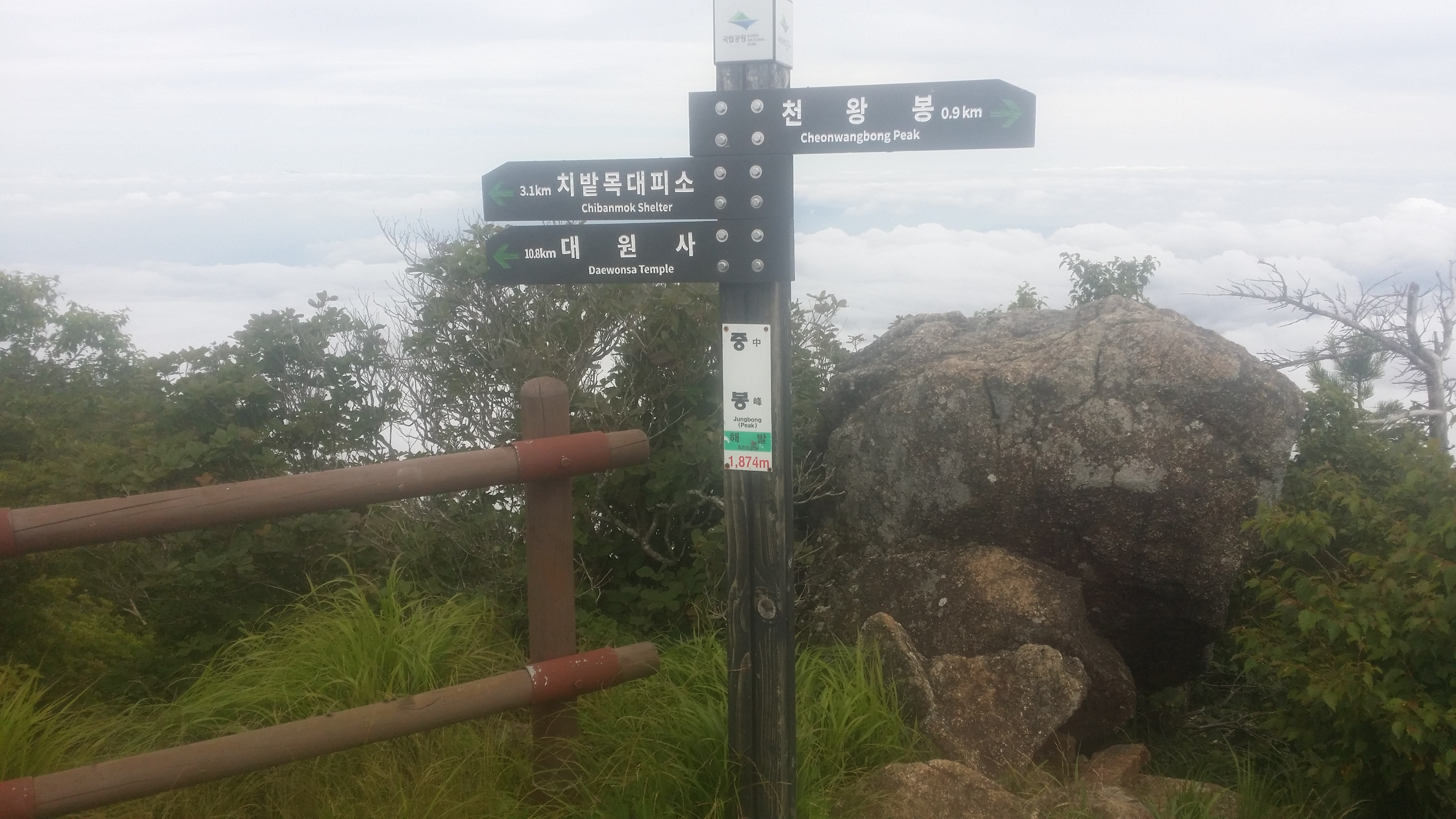 12:14~12:17 천왕봉(1915.4m) / 정상에 올라서 먼저 공단 직원의 동태를 살필려 했는데 안보인다. 장터목대피소로 이동했겠지 12:18 중봉으로 향한다천왕봉을 되돌아 본다치밭목 대피소 / 예전에 했던 화대종주 잘못 걸었나?12:38 중봉(1874.6m) / 대원사에서 오른 젊은이 둘이 풍광을 즐기며 쉬고 있다. 대원사에서 오른길이 너무 지리 하다네. 중산리에서 오르는 길은 숨이 깔딱 넘어가니 잘 몰라왔다 건네주고 공단직원 지나갔는지 물어볼려다 접었다. 설령 지나갔다한들 여기까지 와서 포기할수도 없는 노릇에다 지나갔다면 찜찜할거고..12:40~12:42 비탐방 구간 경계지점 / 입간판 지나 오른쪽으로 진행해야 하는데 들머리를 못찾아 왔다갔다 헤멘다