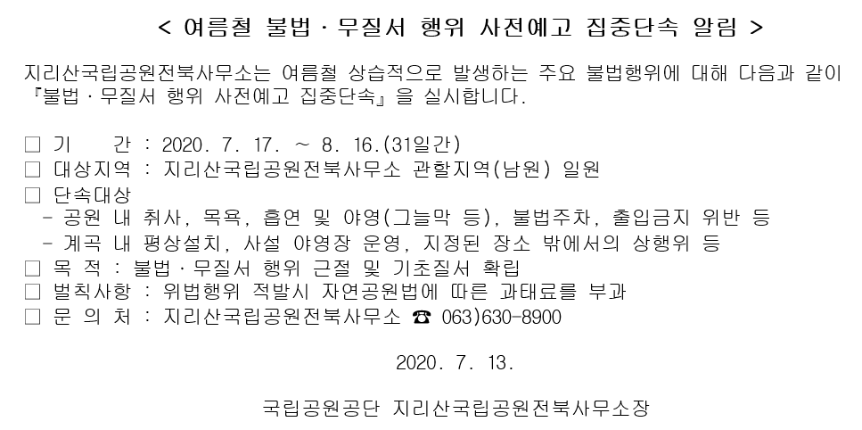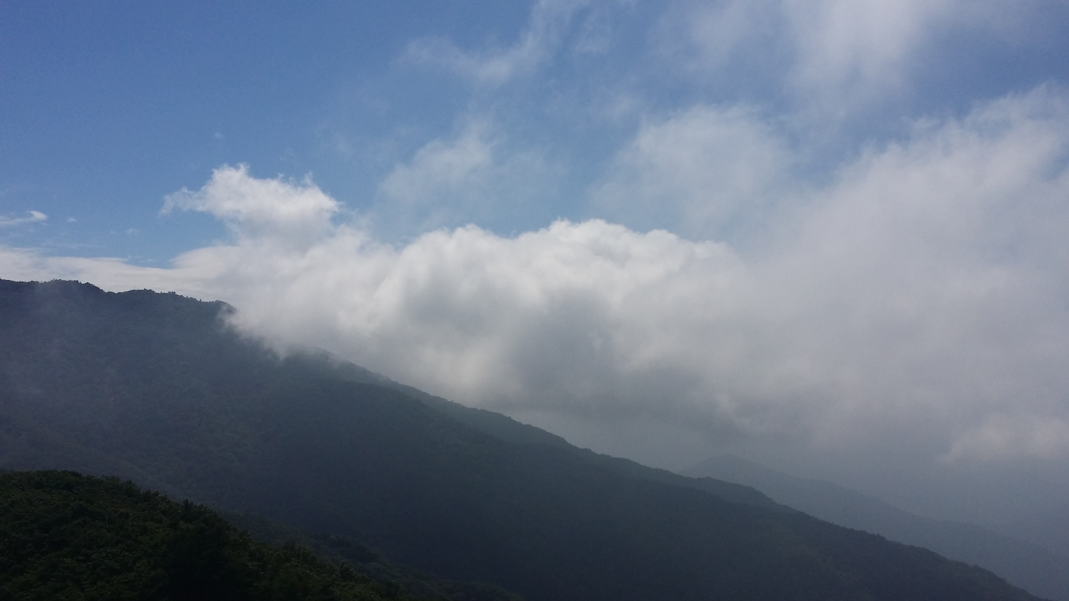 13:08~13:13 휄기장을 진입하는데 반대편 등로 끝에 산꾼이 서 있다. 저분도 나랑 같은 목적으로 왔다는 생각에 인사를 건넬려하다 생각을 접었다. 핸드폰을 물끄러미 보더니 숲으로 곧 사라진다. 천왕봉까진 등로가 좋아 뱀, 진드기 퇴치 대비를 안했는데 중봉을 향하는 등로에 들어서니 대비를 해야 겠다는 생각에 대나무 각반과 진드기 퇴치제를 뿌리고 행동식 김밥을 허리에 찬다. 예상보다 30분 단축했다. 막차 버스 시간과는 10분 여유 있는데 5분 허비 했으니 열씸히 걷자 13:27~13:32 하봉(1754.7m)에서 / 하봉이다 인기척을 느껴 아까 그분이란 생각이 들어 인사를 나눌려 올라서는데 허걱 공단직원이 밥을 먹고 쉬고 있다. 나도 순간 당황했고 공단 직원도 놀라 마스크를 급히 끼고, 신분증을 찾아 목에 걸고는 여기 들어오면 안되는곳 아시죠하며 본격적으로 과태료 부과 작업에 들어간다. 인정하니 증거 자료로 사진을 찍고, 신분증 제시하고, 과태료 끊기 직전 읍소한다. 다행히 처음이라 착한탐방 안내장(지도장)을 발부 받았다. 내가 생각했던 고정 관념이 깨지는 순간이다. 비탐방구역은 들머리와 날머리만 조심하면 된다. 높은 산중에서 단속하는건 미친X 이다. 아니네. 그리고 간과한게 있다 코로나19로 인한 지역경제 살리기 일환으로 단속이 느슨할거라는 선입견에 공단 알림판 보는걸 게을리한 결과다. 항상 비탐방구역을 진행할땐 알림판을 봤는데 뭘믿고 자신 만만했는지. 어차피 162지맥은 마무리해야 하고 비탐방구간 또한 앞으로 지나다녀야 하고. 날 좋는날은 무조건 피해야겠다. 이제부터 하루는 걱정 끝. 밤머리재까지 가볼까 생각했는데, 무리다 영랑대 오흠길13:40 영랑대에서 / 뒤돌아본다13:58 두류봉(1617.4m) / 하늘은 맑은데 야시비가 내린다14:11 국골사거리14:22 야시비가 그쳤다14:37 쑥밭재 / 물소리가 들린다. 우측 750m 지점에 물을 구할수 있는 계곡이 있다14:43 1260.8봉14:50 윗새재 탈출로물먹은 산죽으로 인하여 등산화가 물을 먹기 시작한다독바위에 다가가자 2m넘는 산죽 밀림 길이다15:07 1294.3봉(독바위)이 눈에 들어온다 15:10 1294.3봉(독바위) 아래 도착15:11 동아줄이 있다15:12~15:14 1294.3봉(독바위)에서15:22 로프15:38 1322.3봉(새봉)에서15:41 마당바위 좌측으로 하산15:45 산하가 박무로 뒤덮혔다16:12 등로주의(왼쪽진행) / 얕은 봉우리로 등로가 있어 올라섰더니 더 이상 길이 없다. BACK16:15 새재까지 키높이 산죽 터널이다16:28 새재 / 오늘은 여기까지 이제 윗새재로 하산하자16:35 계울새재 하산길 또한 키높이 산죽터널이다. 다음에 이곳을 오를거 생각하니 끔찍하다16:49 삼거리16:52 비탐방 구간 경계지점16:54 불조사16:55 윗새재16:57 치밭목대피소 갈림길이곳에선 덕산택시를 호출하여야 한다. 이곳까지 편도 40분(23천원), 대원사 20분(19천원), 대원사주차장 15분(17천원) 소요되며, 요금은 덕산 출발때부터 과금 시작하여 덕산까지 과금하므로 일단 불렀다면 덕산까지 나가는게 맞다. 이외에 055-974-9393, 972-9292, 972-6662, 010-3836-5215, 010-8234-9427, 010-4878-7784등이 있다 / 대원사 주차장까지 약 1시간10분 소요되고 막차가 약 19시에 있어 걸어가도 된다17:15 새재교17:39 치밭목대피소 갈림길17:42 밤밭골 식당 거리17:55 대원사18:00 대원사 일주문18:17 삼장분소18:19 대원사 시외버스 정류소18시50분 홍계에서 출발한 막차가 18시57분경 도착한다. 주차장 입구에서 기다렸는데 시외버스 주차장 입간판에서 주차장 땅을 밟는곳에 세운다. 어슬렁 이동하여 승차후 18시59분 진주를 향하여 출발한다. 그러니까 막차 탈려면 18시55분까지 도착해야 안정빵. 기사님 말에 따르면 홍계에서 정확한 시간에 출발하며 경유지는 교통상황에 따라 약간의 오차가 있다한다. 이놈 놓치면 덕산택시타고 덕산에 가면 20시5분 막차가 있다덕산에서 19시15분 출발하여 원지에 19시35분 경유 19시58분 진주 도착20시5분 우등버스를 타고 부산에 21시20분 도착 귀가한다