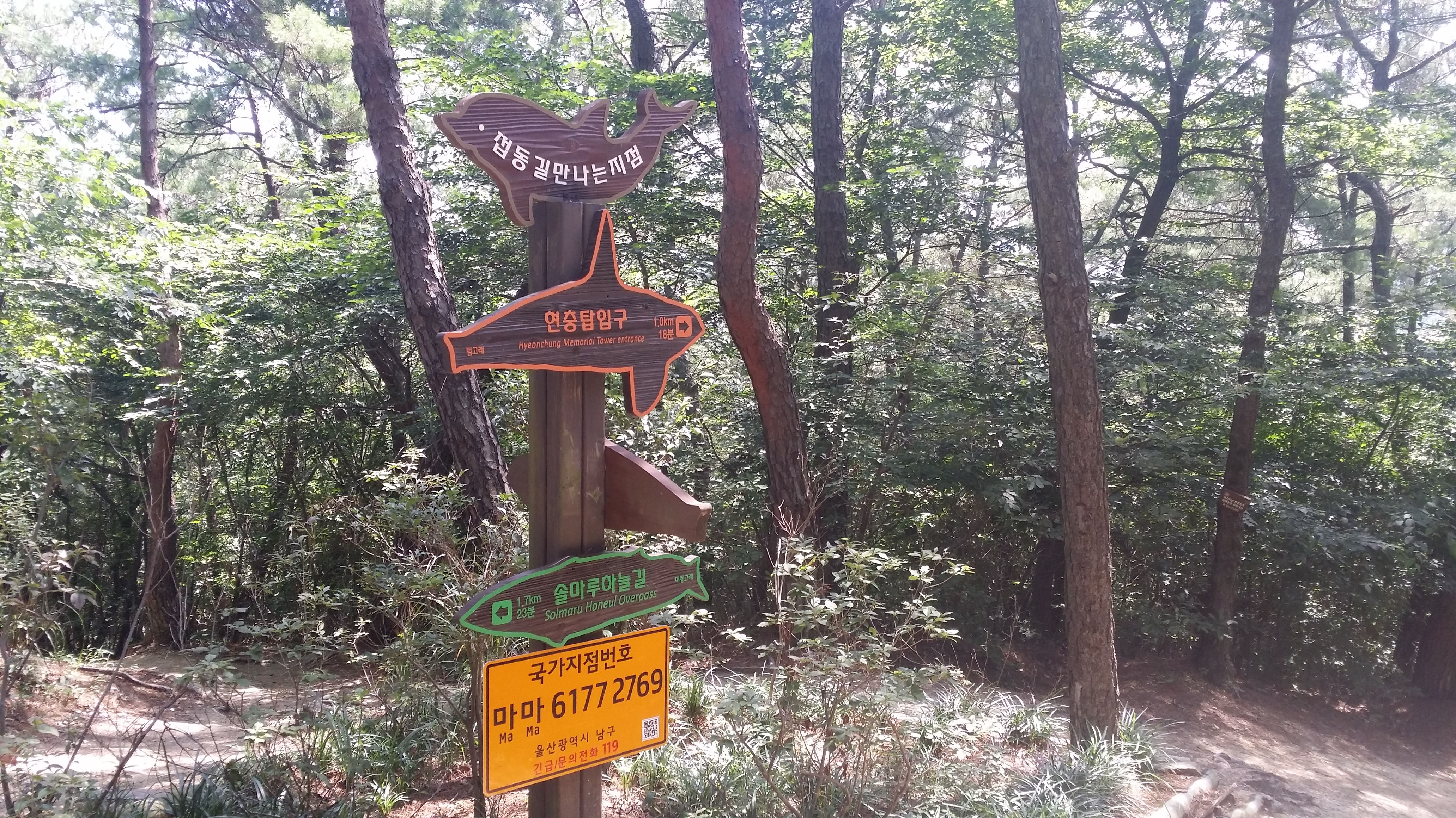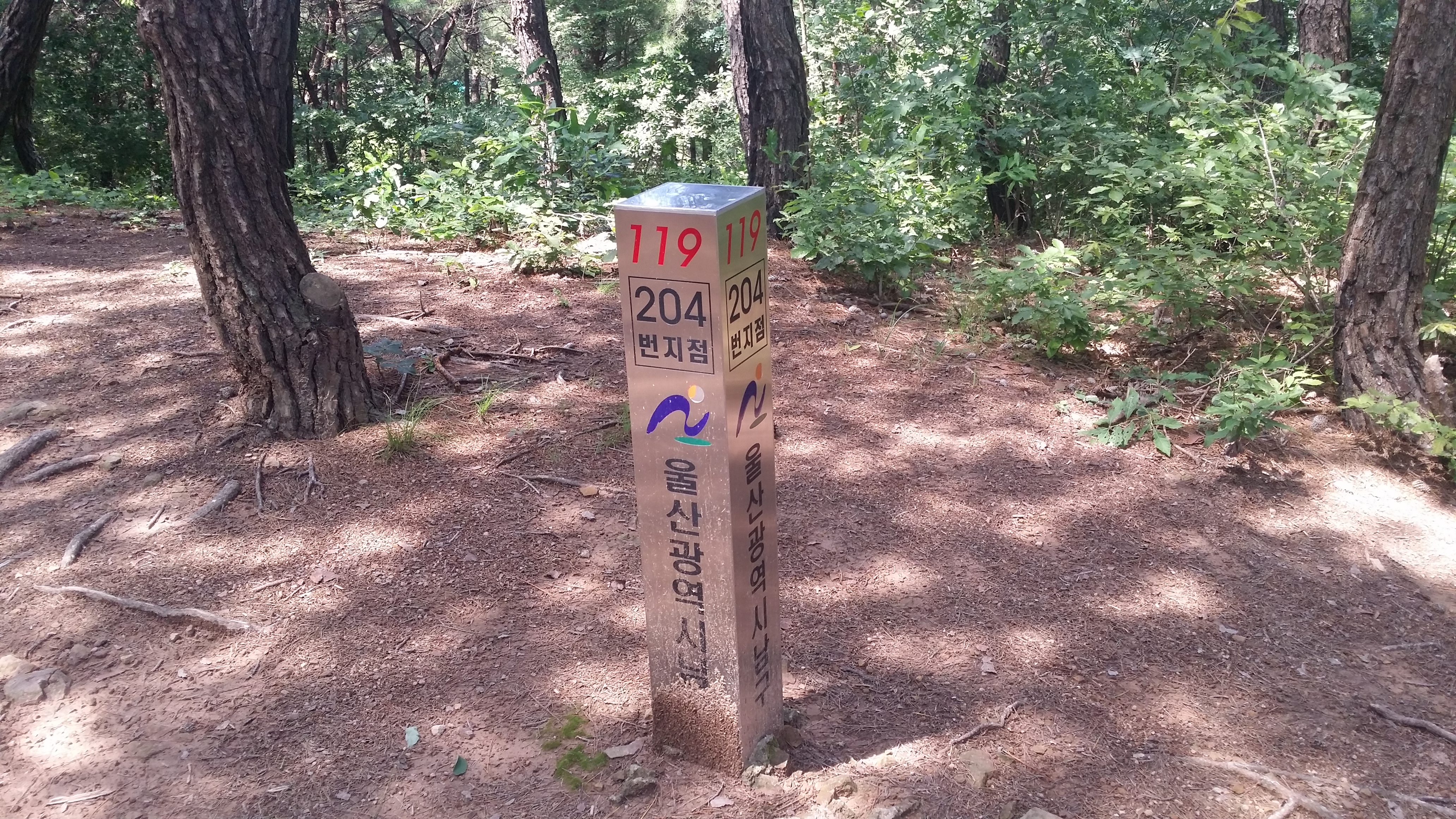 10:38 해파랑길 6코스 / 신선정 까지 해파랑길과 함께한다울산시는 솔마루길로10:43 다시 도로 공사현장을 가로지른다 해파랑길 6,7코스10:49 불당골사거리10:56 접동길 만나는 지점10:57 등로주의 / 샛길로 진입11:08 62.8봉11:09 풍요삼거리