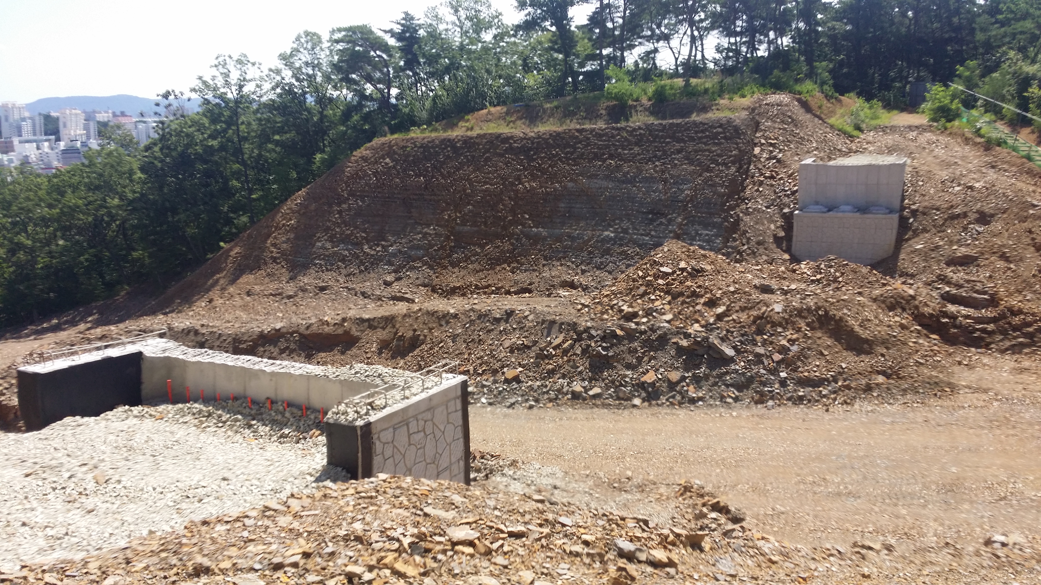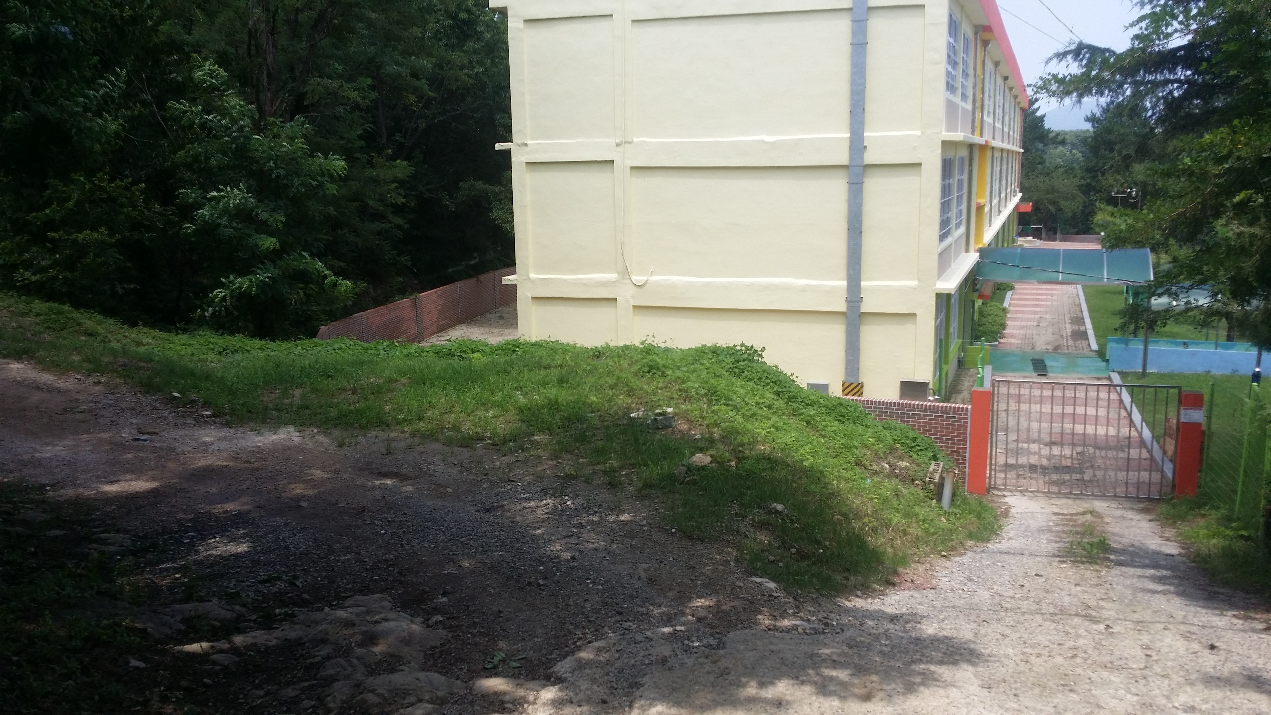 12:52 신성테크옆으로 골목길을 따른다12:56 여천초교 뒤로 진행하다 체육시설을 만나 11시 방향으로 진행한다13:05 야음테니스장으로 진입13:07 펜스 넘고좌측으로 이동하니 57.3봉 오르는 등로가 있다13:16 57.3봉 봉우리는 배수장 시설 공사로 없어졌다13:17 철망통과13:19 배수지 공사로 정문이 열려있다.