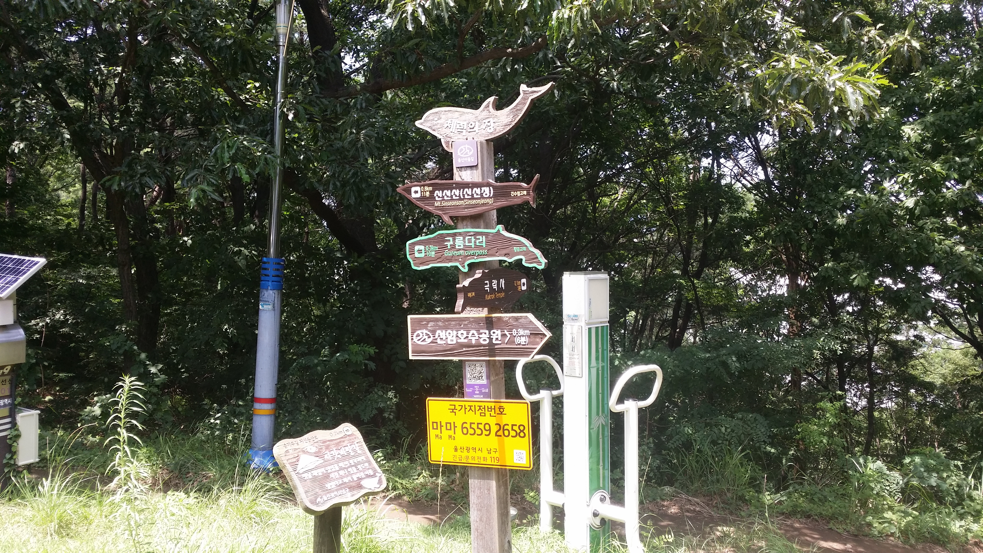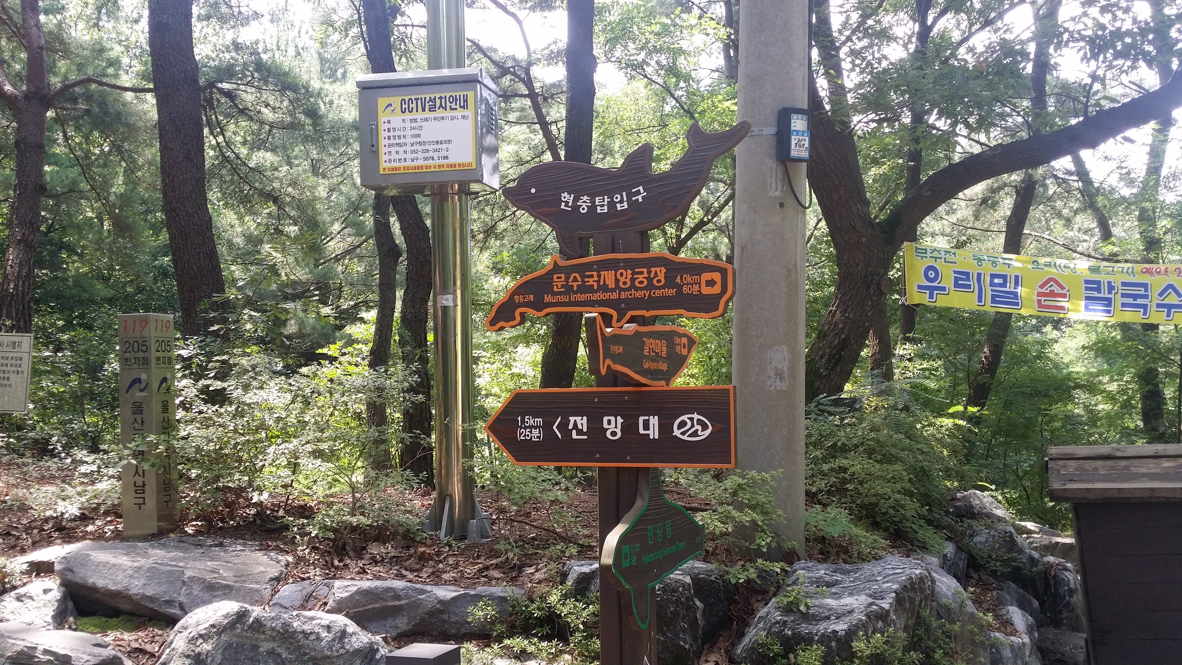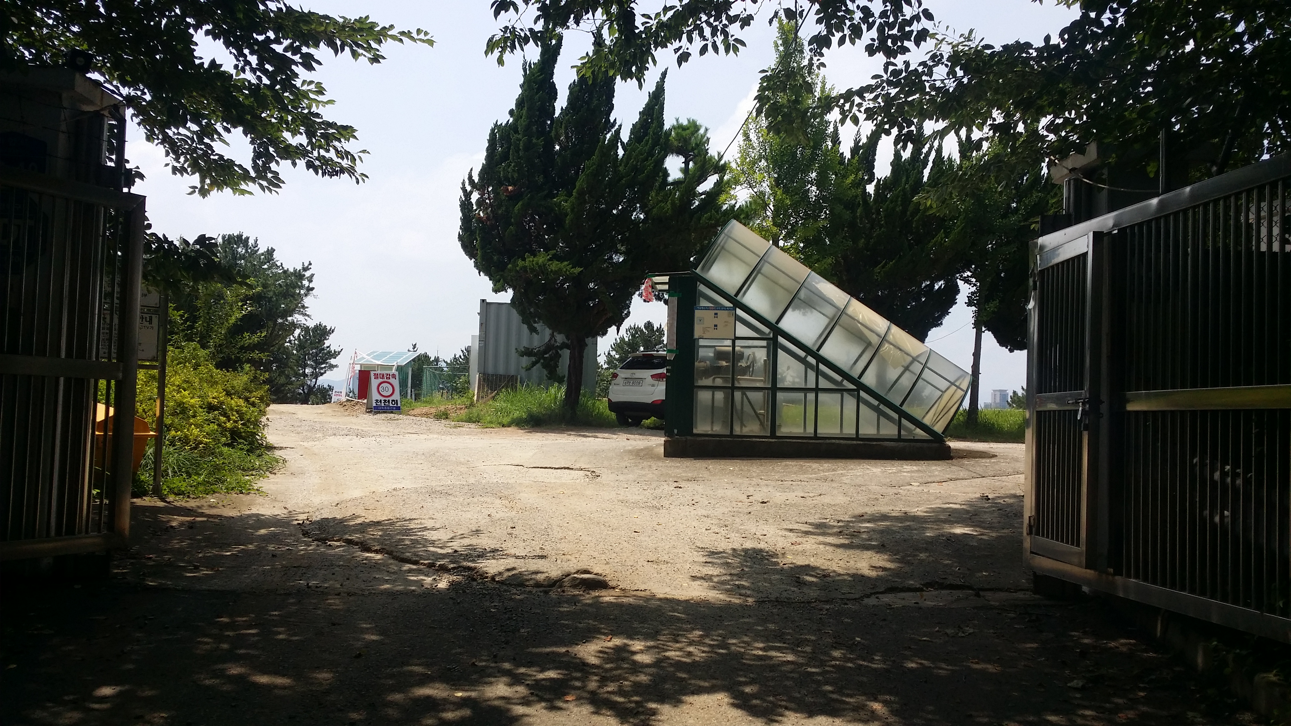 좀 덥기는해도 비소식은 없다08:36 태화강역 / 8시3분차로 출발할려 했는데 일찍 일어나 할일도 없고 해서 7시41분 차를 타고왔다태화강역 승강장에서 8시45분 401번을 탄다09:14~09:16 문수실버복지관에서 하차하여 산행준비후 두현삼거리로 이동하여 9시19분 지맥산행을 시작한다 울산 제2실내 종합체육관 뒤편 진입로는 지저분 했지만 능선에 오르니 제대로된 등로가 있다야외 주차장을 가로지를려 했는데 아카시아 가시와 돌담 경계에 에머랄드 골드 정원수가 빽빽하게 심재되어 헤치고 뛰어 내려서기가 어려워 BACK하여 정문으로 나온다 09:41 오른쪽 구치소 펜스를 따라 올라선다09:53 90.6봉