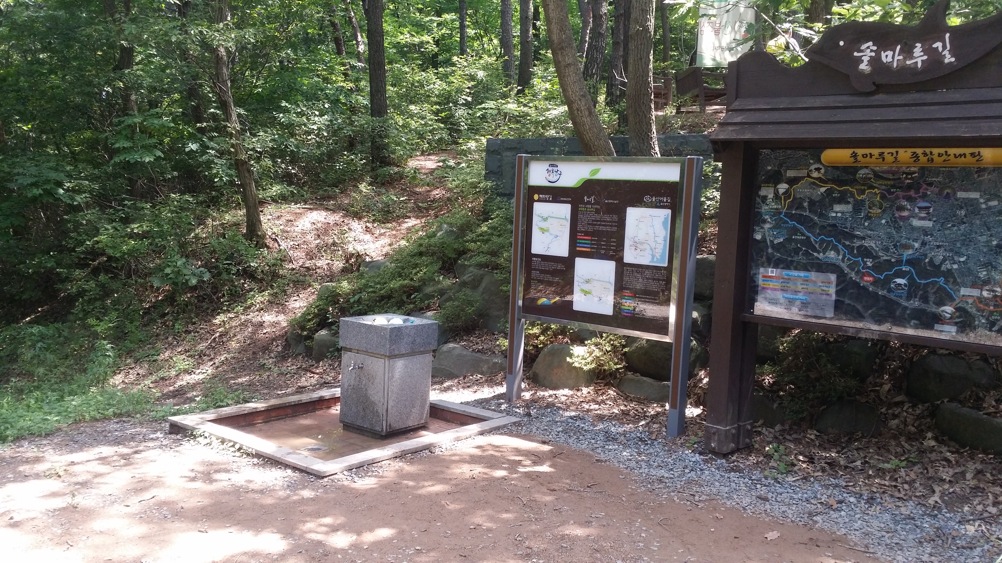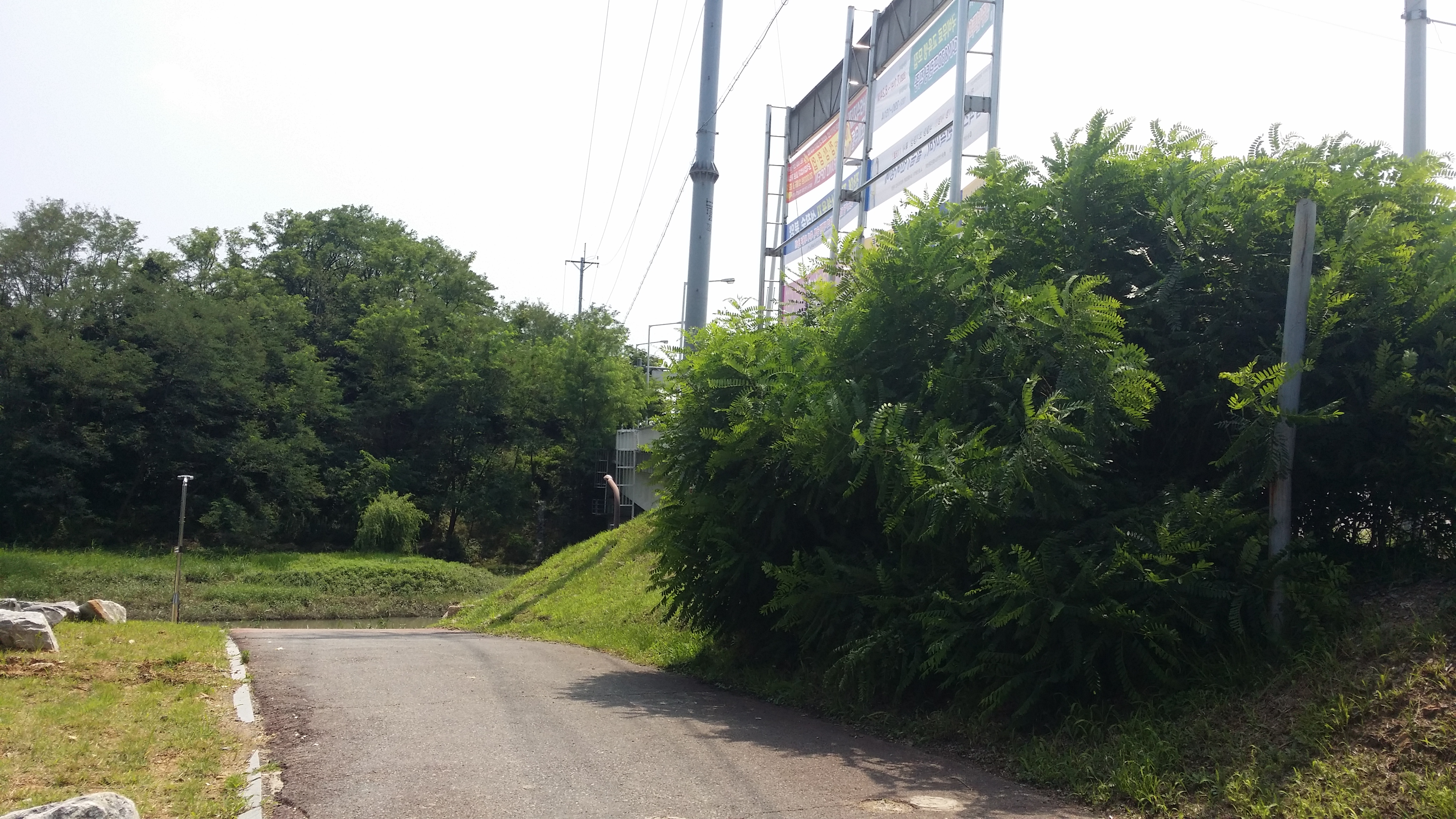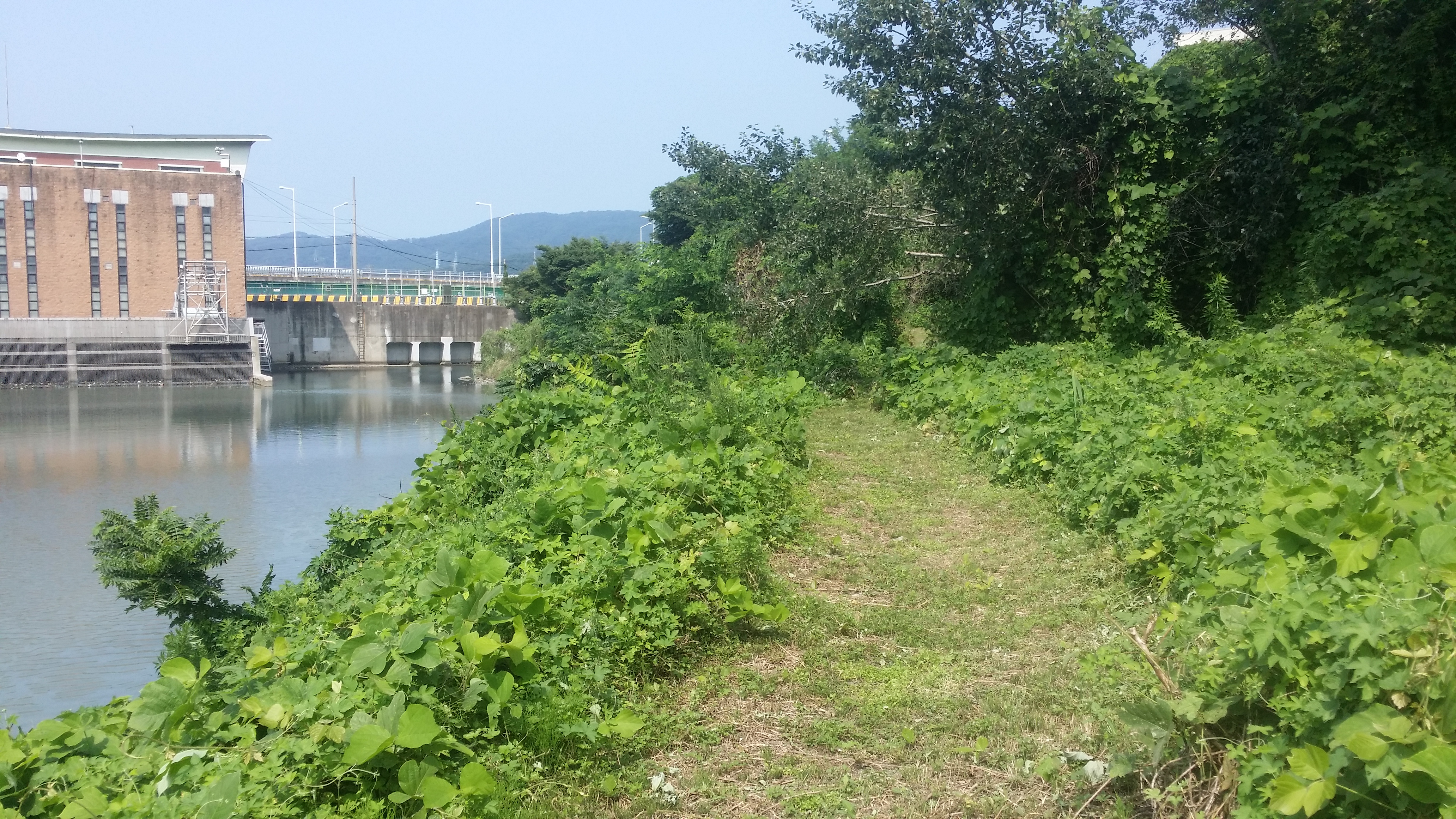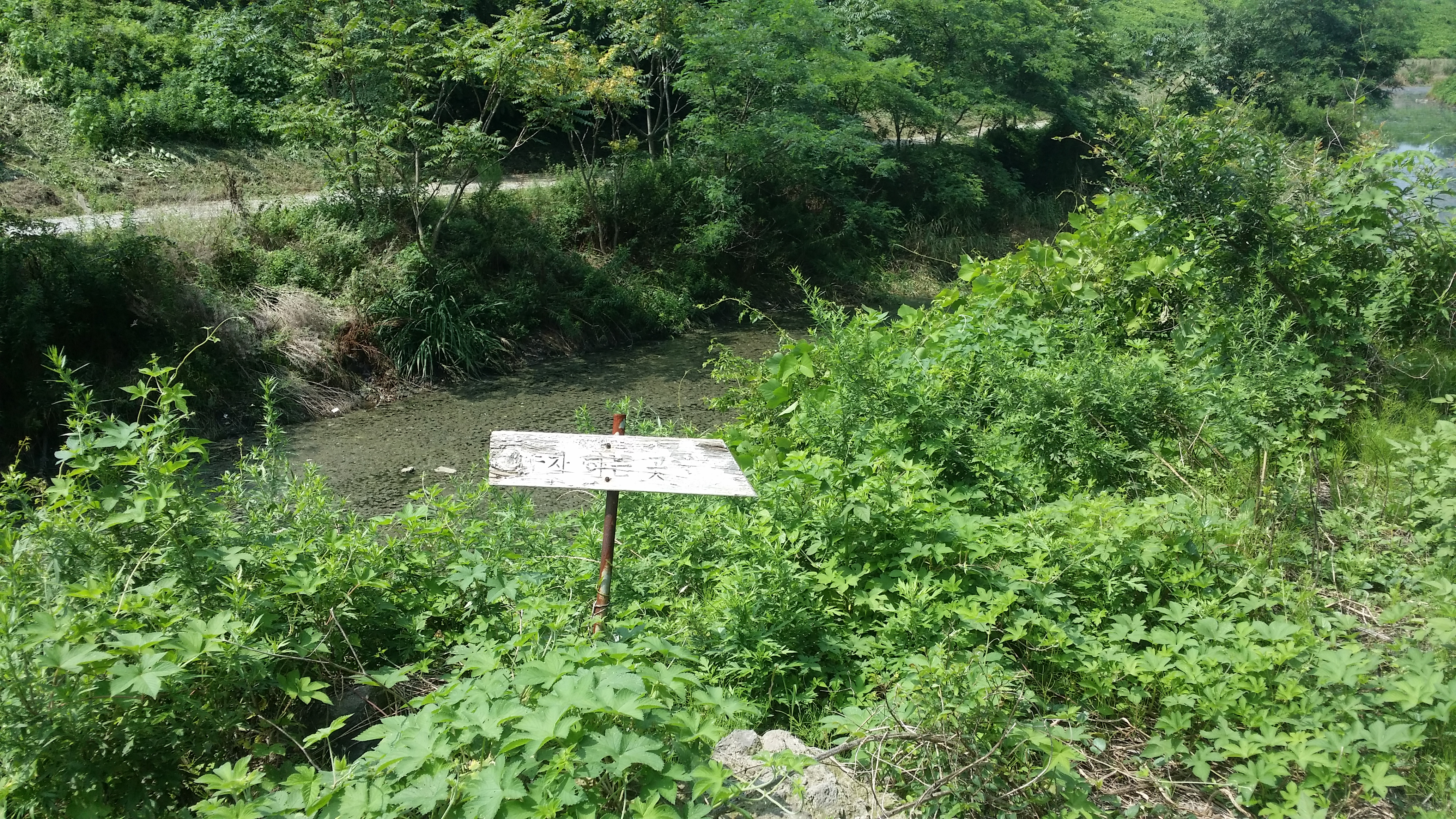 13:49~13:58 직진하면 알바,. 문이 접혀져 있어 출입금지인지도 모르고 진입했다가 BACK 도로에서 바로 강변 산책로로 내려서야 한다저기 다리를 건너면 알바. 다리옆 용연수질개선사업소앞 공터로 진입해야한다울산 석유화학단지로 진입해야 하는데 철도로 인하여 여천천을 건넜다만 다시 마루금에 복귀하기 위해선 용연수질개선사업소앞 다리를 건너 진행하여야 한다고 생각하고 건넜는데 경로이탈이다. 이상하다 마루금이 여천천을 횡단한다. 뭔가 이상타 싶었는데 오른쪽 물길은 인위적으로 만들어진 하천이다 14:08 여천천/수문 : 수문 왼쪽이 원래 여천천이고 오른쪽 물길은 인위적으로 만들은 물길이다. 수문 뒷편으로 마루금이다. 능선만 올라서면 포장 도로가 있는것 같아 오를까하다 강변길이 좋아 포기 했는데 결론은 잘했다. SK공장으로 펜스로 인하여 되돌아 와야 될것 같다 14:12 주차하는곳 / 등로는 차량 한대가 다닐수 있을 정도로 양호한데, 용연수질개선사업소앞 다리에서 차단되어 있다14:13 학수암 진입로 / 강변길을 버리고 시멘트 포장길을 오른다14:19 학수암 진입로 시주자 명단 / 외지에 왜 포장도로가 있었는지 이유가 여기에 있었네. 마루금 반대편에 SK공장 철문이 있다. 종전 수문에서 마루금을 고집했다면 여기서 철문 넘는다고 고생께나 했을게다돋질산 가는길14:25 게이트