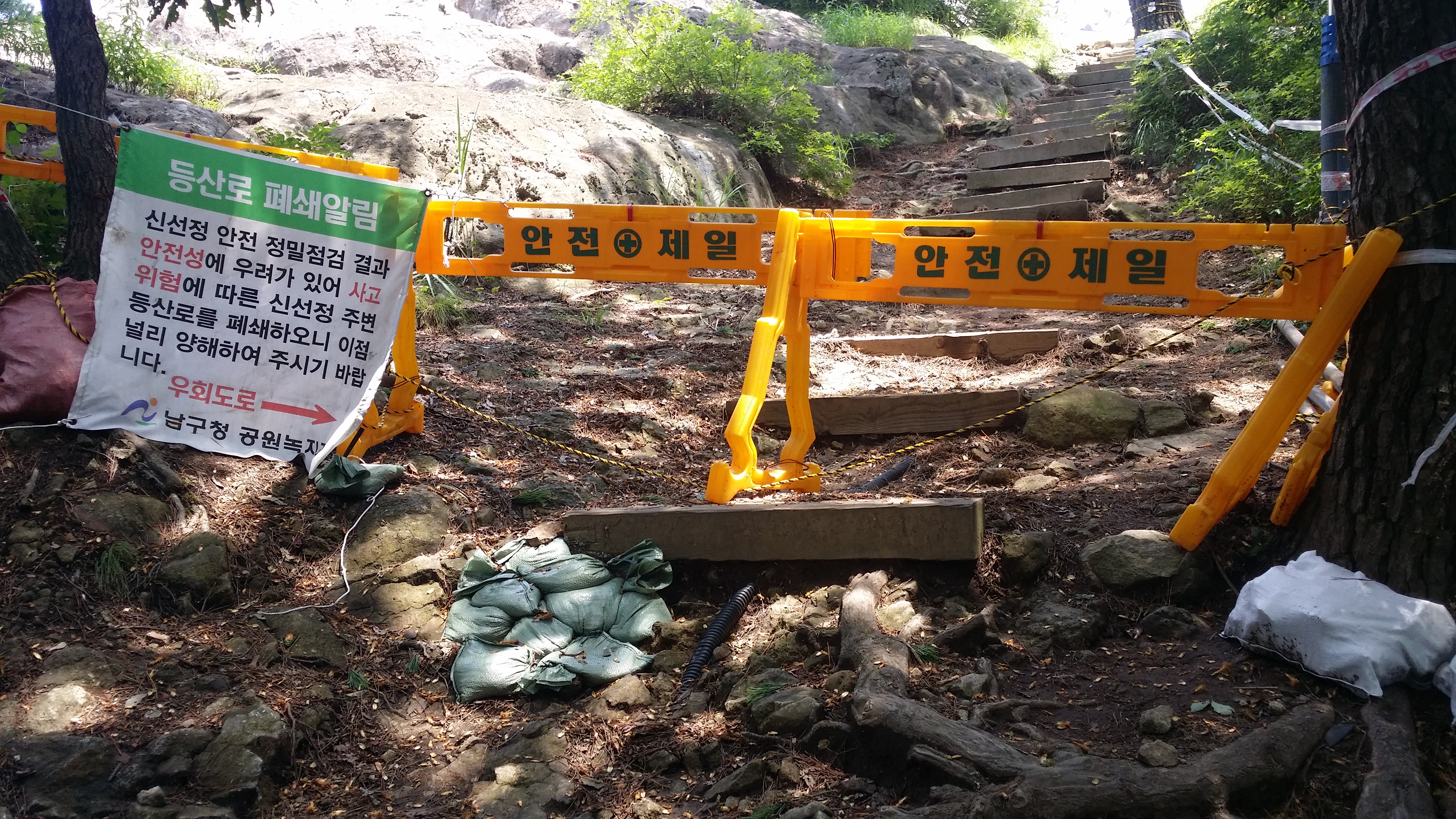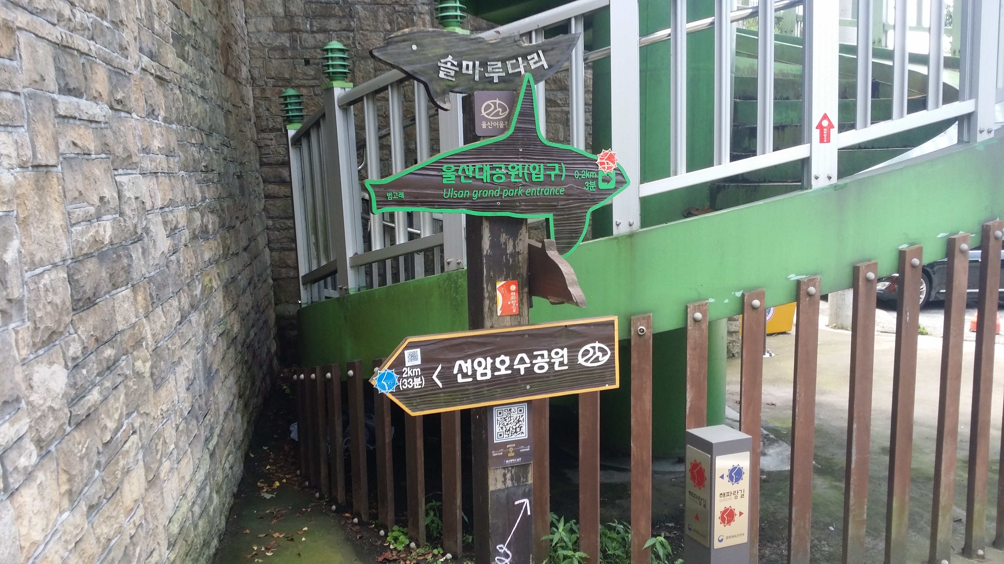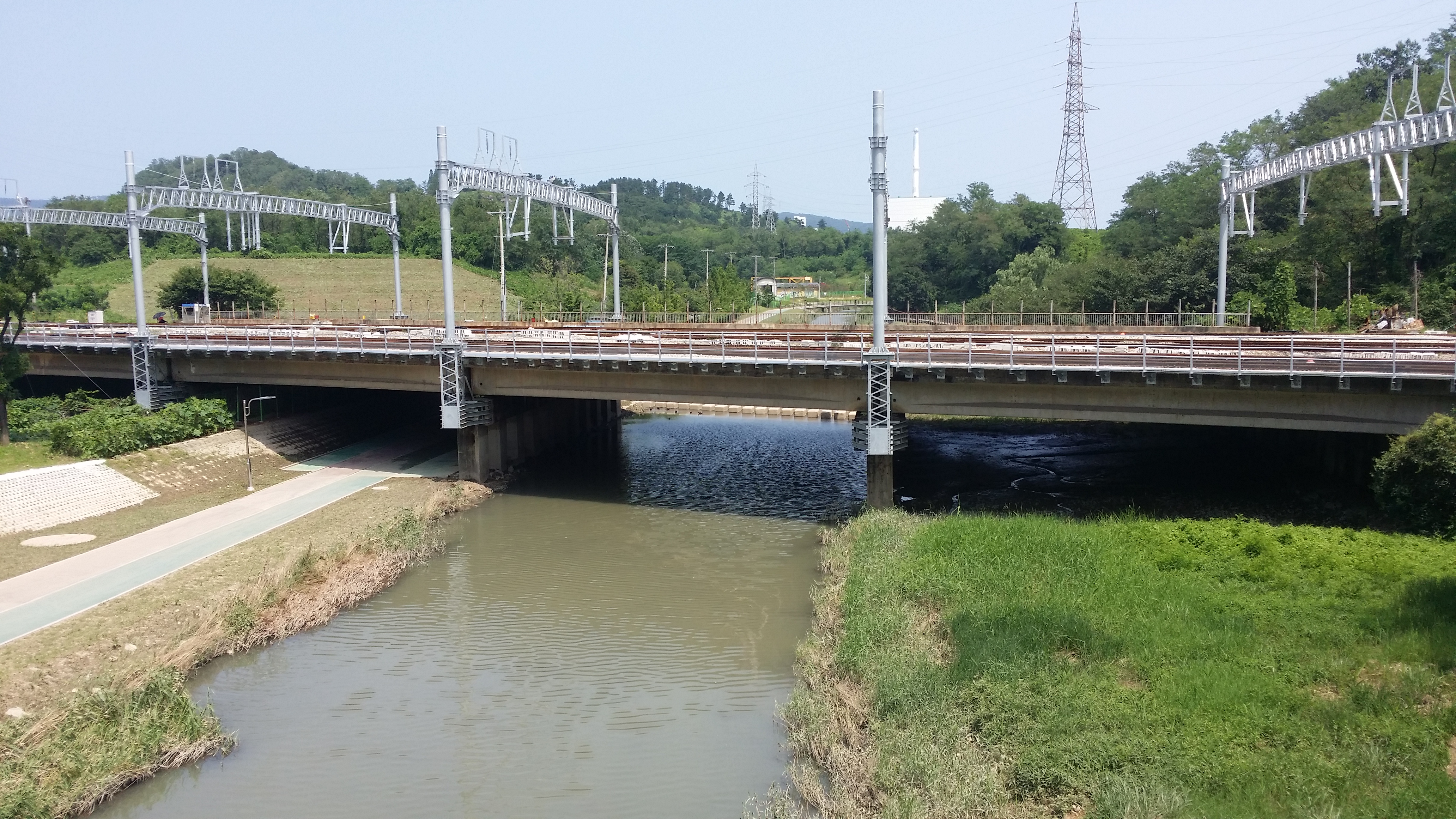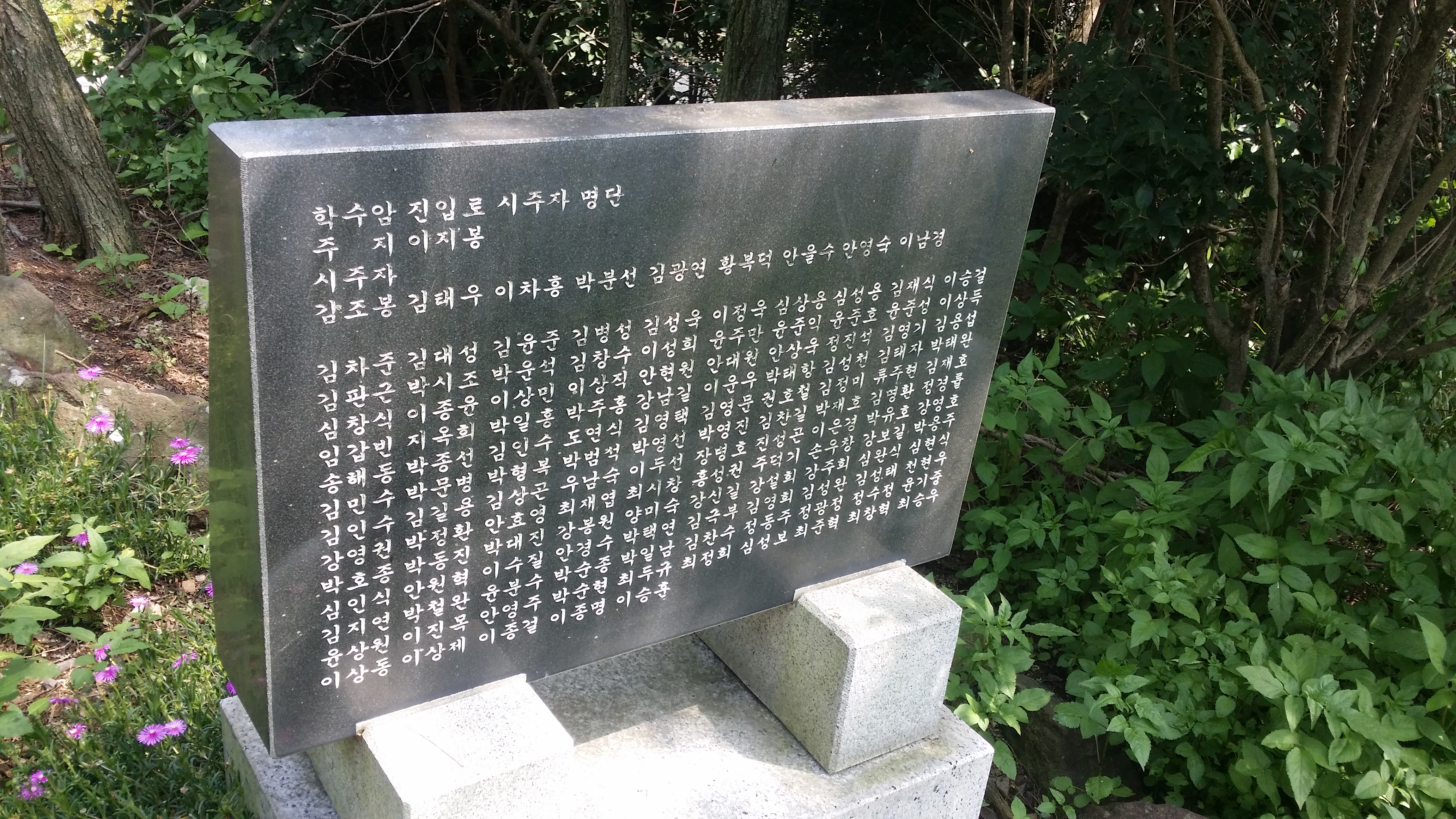 13:49~13:58 직진하면 알바,. 문이 접혀져 있어 출입금지인지도 모르고 진입했다가 BACK 도로에서 바로 강변 산책로로 내려서야 한다저기 다리를 건너면 알바. 다리옆 용연수질개선사업소앞 공터로 진입해야한다울산 석유화학단지로 진입해야 하는데 철도로 인하여 여천천을 건넜다만 다시 마루금에 복귀하기 위해선 용연수질개선사업소앞 다리를 건너 진행하여야 한다고 생각하고 건넜는데 경로이탈이다. 이상하다 마루금이 여천천을 횡단한다. 뭔가 이상타 싶었는데 오른쪽 물길은 인위적으로 만들어진 하천이다 14:08 여천천/수문 : 수문 왼쪽이 원래 여천천이고 오른쪽 물길은 인위적으로 만들은 물길이다. 수문 뒷편으로 마루금이다. 능선만 올라서면 포장 도로가 있는것 같아 오를까하다 강변길이 좋아 포기 했는데 결론은 잘했다. SK공장으로 펜스로 인하여 되돌아 와야 될것 같다 14:12 주차하는곳 / 등로는 차량 한대가 다닐수 있을 정도로 양호한데, 용연수질개선사업소앞 다리에서 차단되어 있다14:13 학수암 진입로 / 강변길을 버리고 시멘트 포장길을 오른다14:19 학수암 진입로 시주자 명단 / 외지에 왜 포장도로가 있었는지 이유가 여기에 있었네. 마루금 반대편에 SK공장 철문이 있다. 종전 수문에서 마루금을 고집했다면 여기서 철문 넘는다고 고생께나 했을게다돋질산 가는길14:25 게이트
