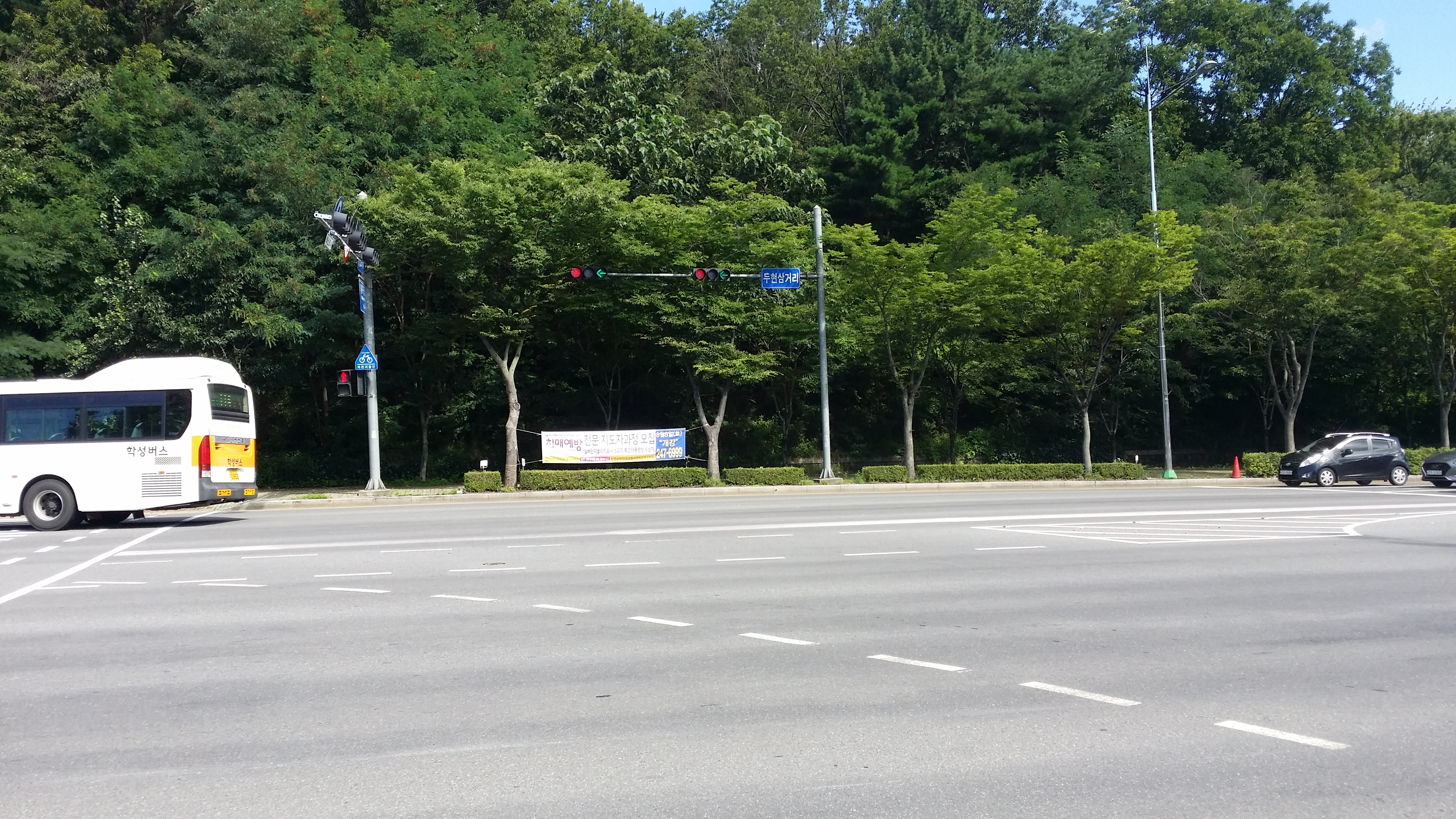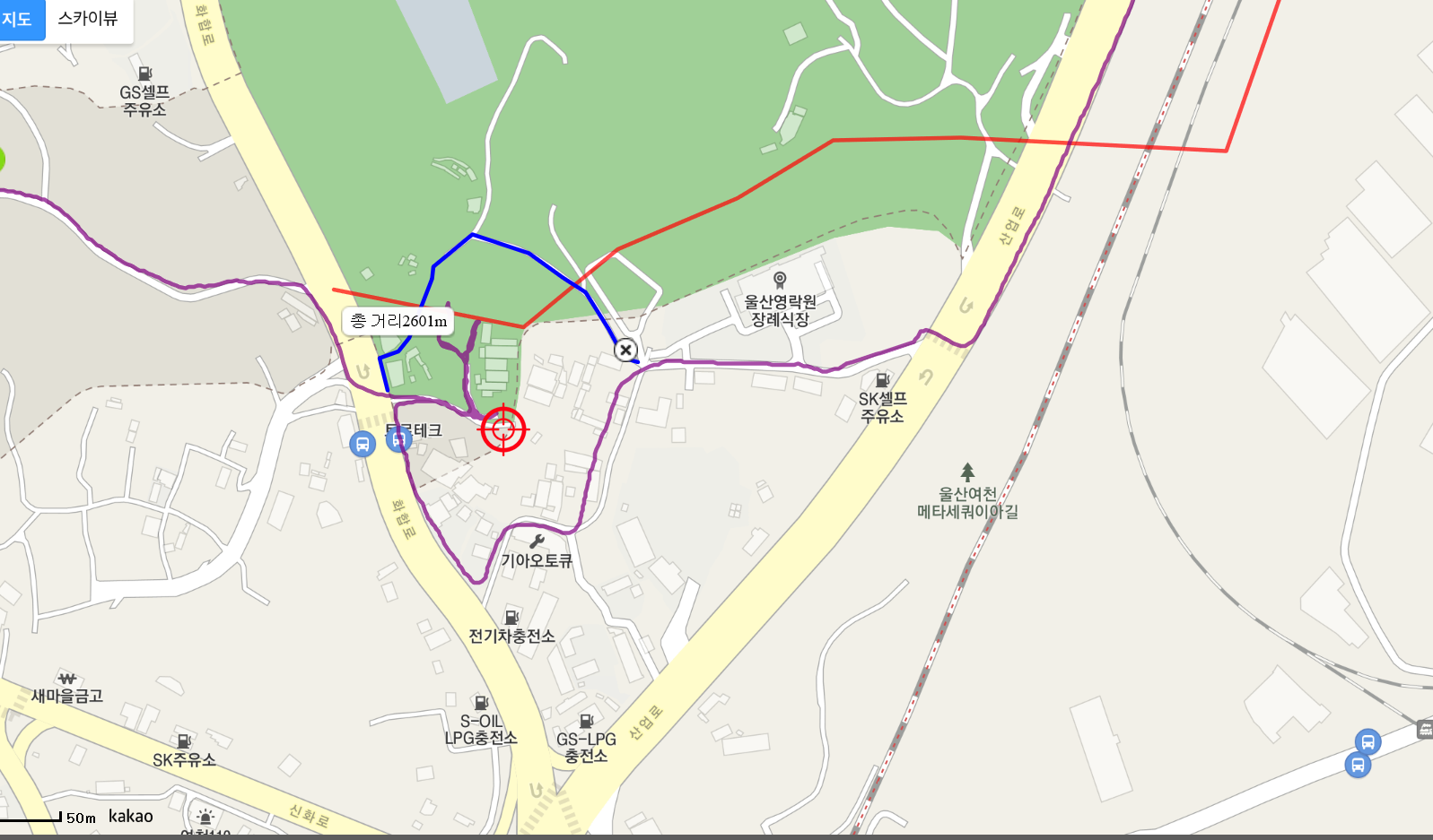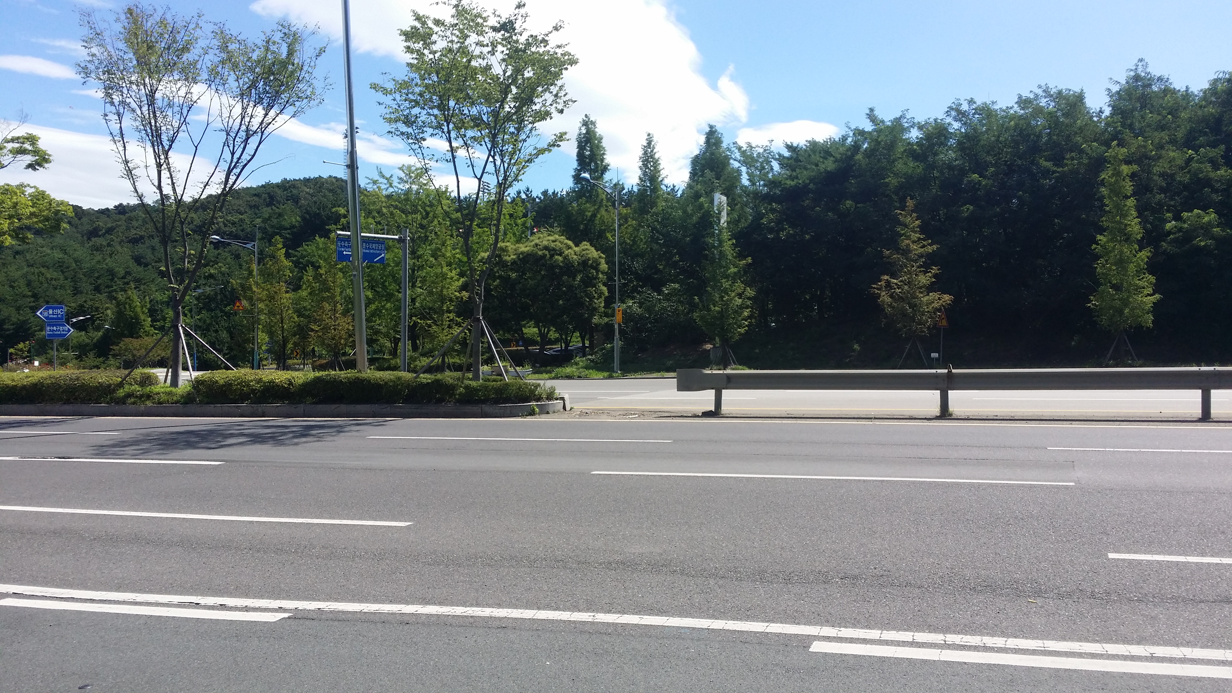 09:58 90.6봉에서 마루금은 오른쪽으로 내려서야 하는데 남부순환도로가 왕복 6차선이라 좌측으로 내려서 문수야구장앞 질타교 아래로 진행할려 계획 했는데 차량도 한산하고 중앙분리대도 통과하기 쉽게 끝자락이라 두눈 질끈깜고 양궁장입구로 횡단한다