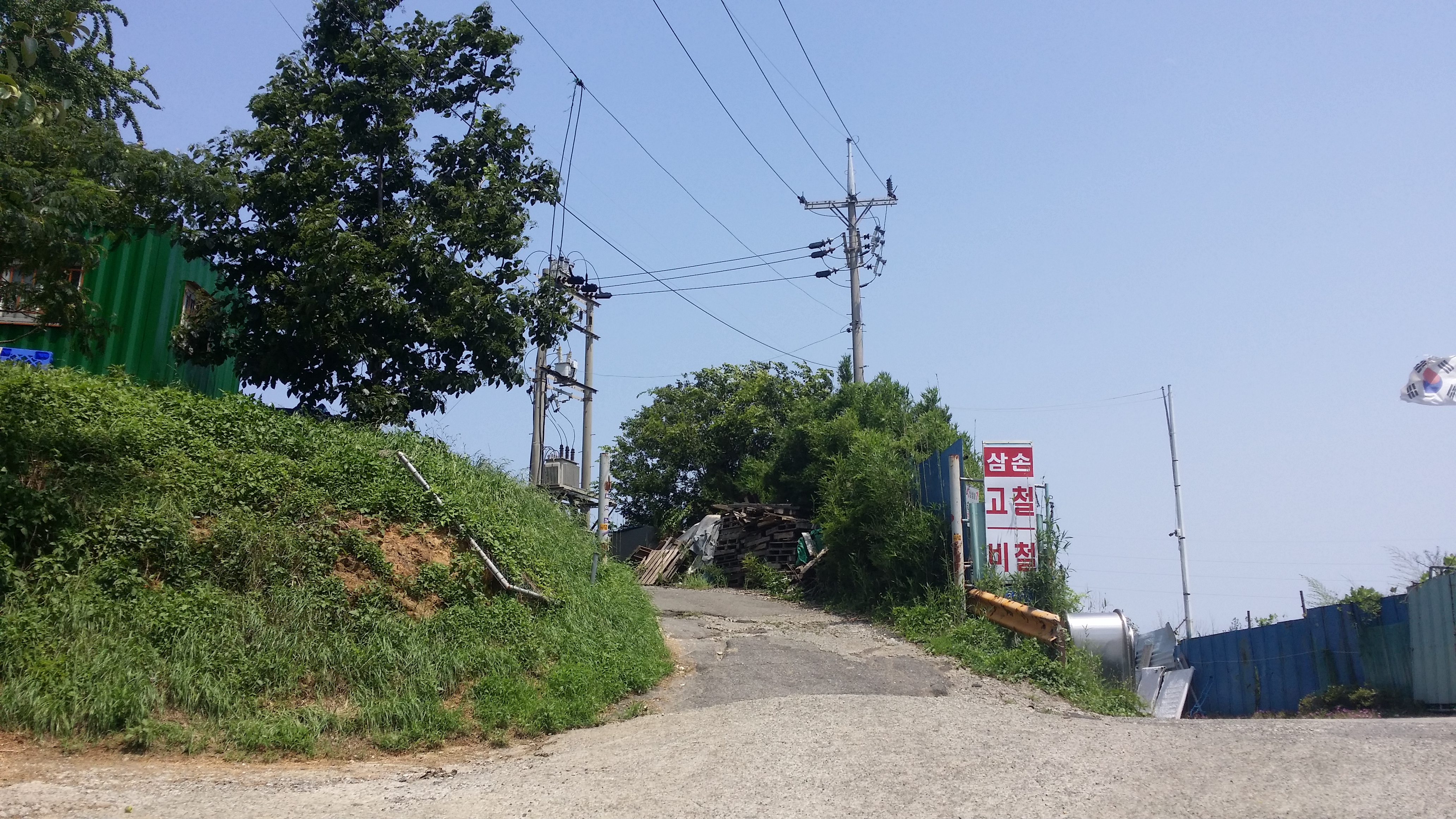 13:23~13:33 명진기계앞 / 횡단보도를 건너 왼쪽으로 내려서야 한다.보라색이 진행 루트, 빨간선이 이론적 마루금, 파란선이 마루금 적용 가능 루트명진기계로 들어서 삼손고철 옆으로 올러니 사나운 개새끼가 양쪽에서 짖어댄다 공장이라 휴일날 상주하는 사람이 없다 생각하고 무시하고 올라서는데 주인 양반이 나와 제지한다.BACK하여 왼쪽 공장으로 들어가니 펜스를 쳐놓았다. 힘을주면 제거 될것 같았지만 다시 BACK하여 다시 왼쪽으로 들어서니 답이 없다. 철수13:39 영락원 / 지리를 모르니 우측으로 많이 돌아왔다13:48 여천천