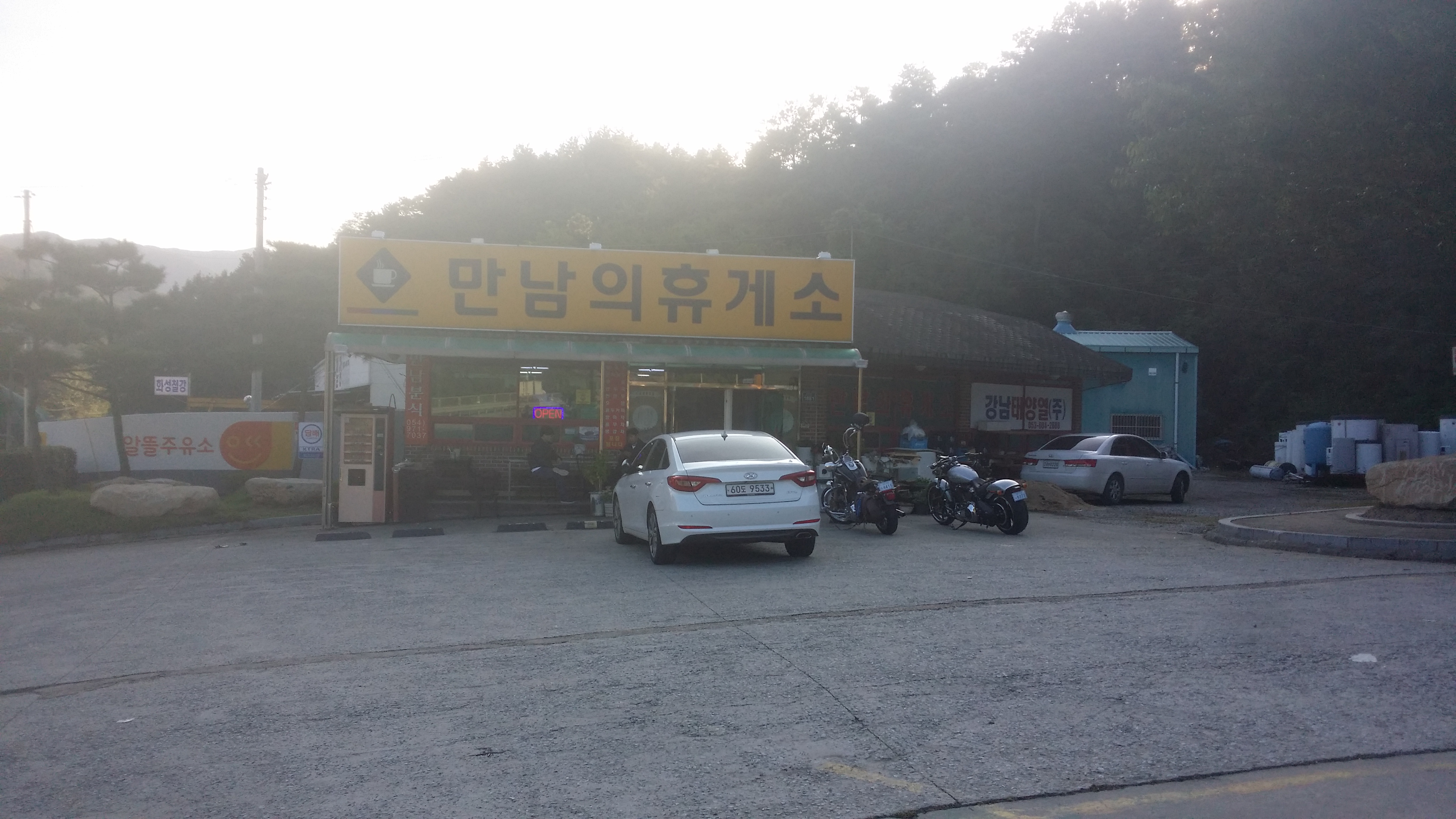 16:39 374.1봉(△)16:47 327.4봉17:02 갈비재5번 국도길은 이동하는 차량이 많았고 속도 때문에 갓길을 걷는다면 생명의 위협을 받았을게다. 도덕재에서 중앙 분리대를 넘어 만남의휴계소로 향하는 길은 다행히 국도 가장자리옆으로 소로가 있어 안전하게 진행할수 있었다17:15 만남의휴계소 / 라면을 부탁하며 300번 버스가 몇시즘 오는지 문의하니 천평리(4Km)까지 가야 한단다. 미심쩍어 주유소에 문의하니 대답은 마찬가지다. 애라 모르겠다 세워보자 안세워주면 차선책으로 구미로 이동하면 되니까
