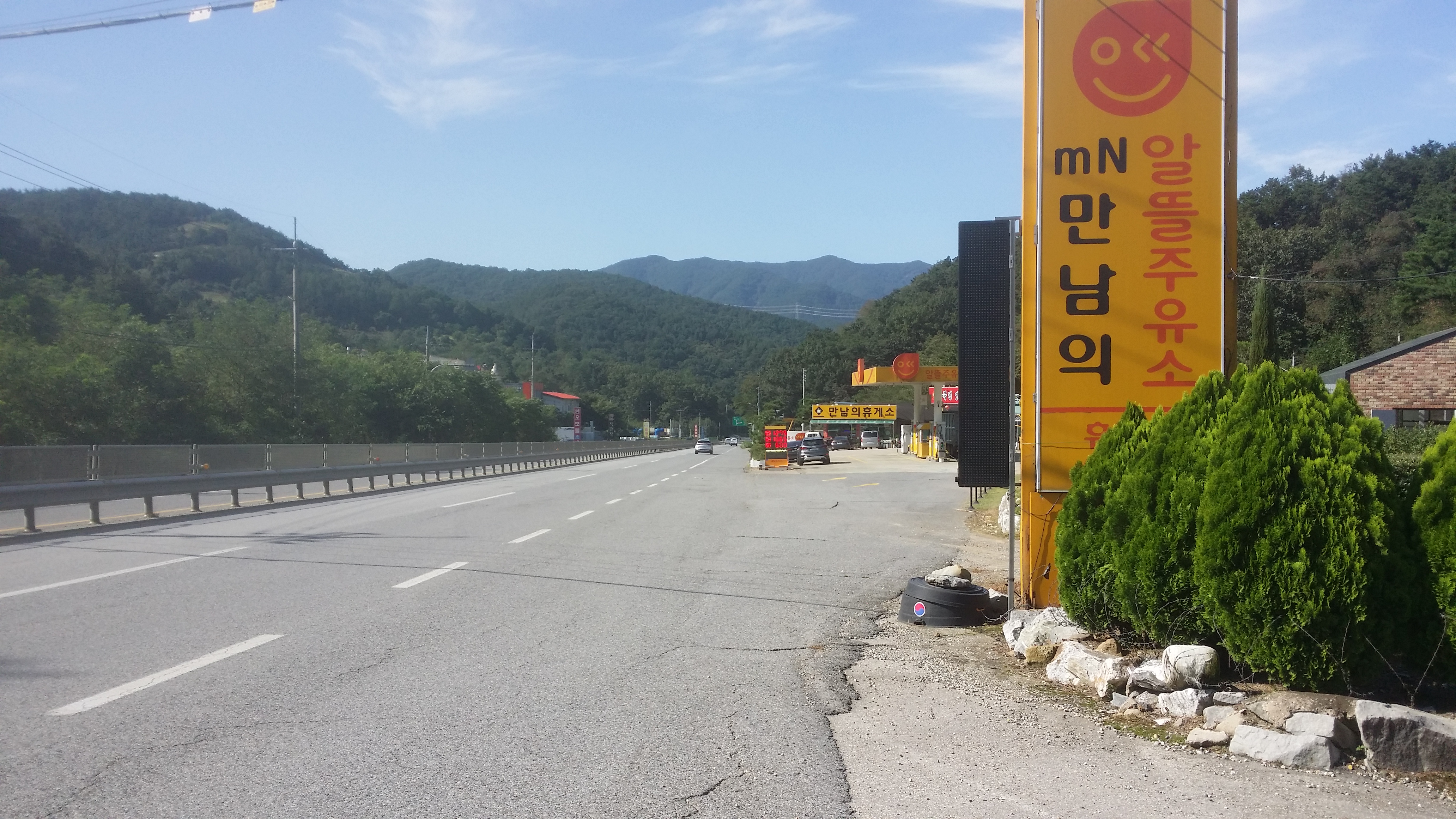 09:40 만남의휴계소(금탑목공예) 끝나는 지점에 국도를 횡단하기 좋게 중앙분리대가 끊긴 지점이 있다