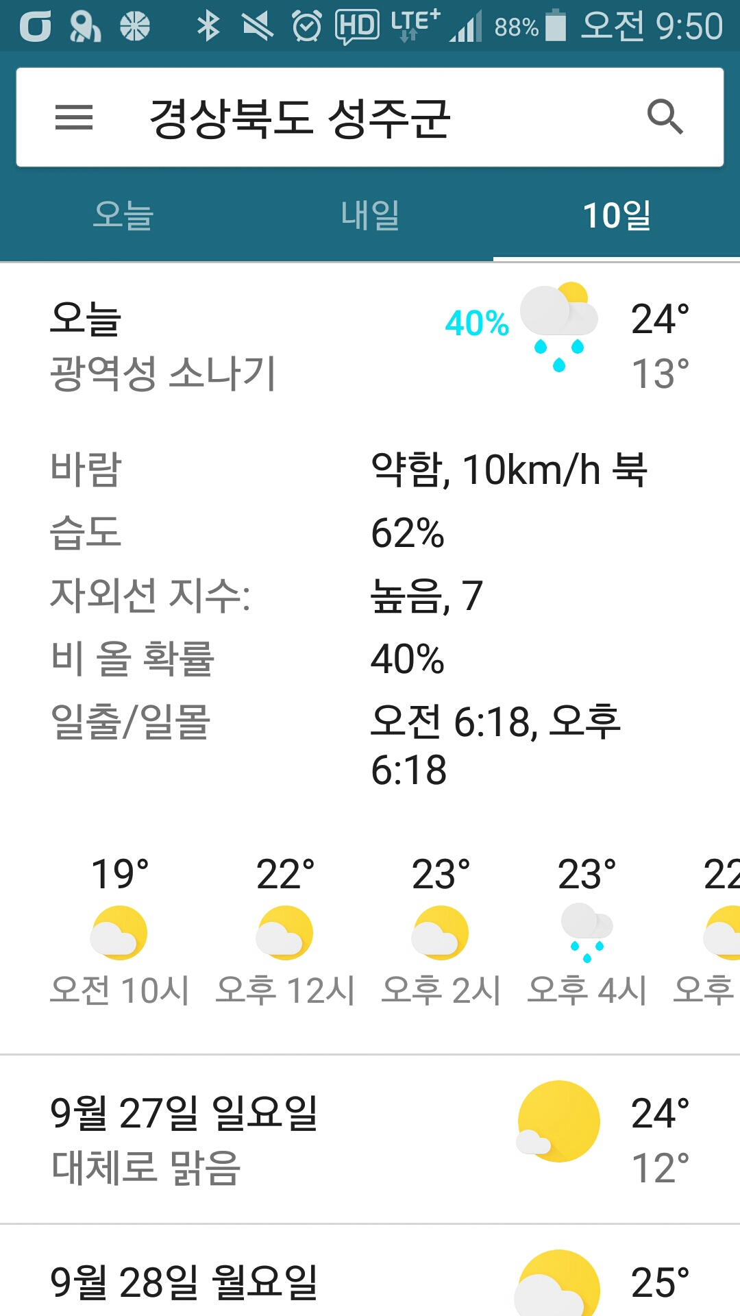 오후에 비소식이 있네. 몇일전에 날씨가 좋아 확인을 안했는데..