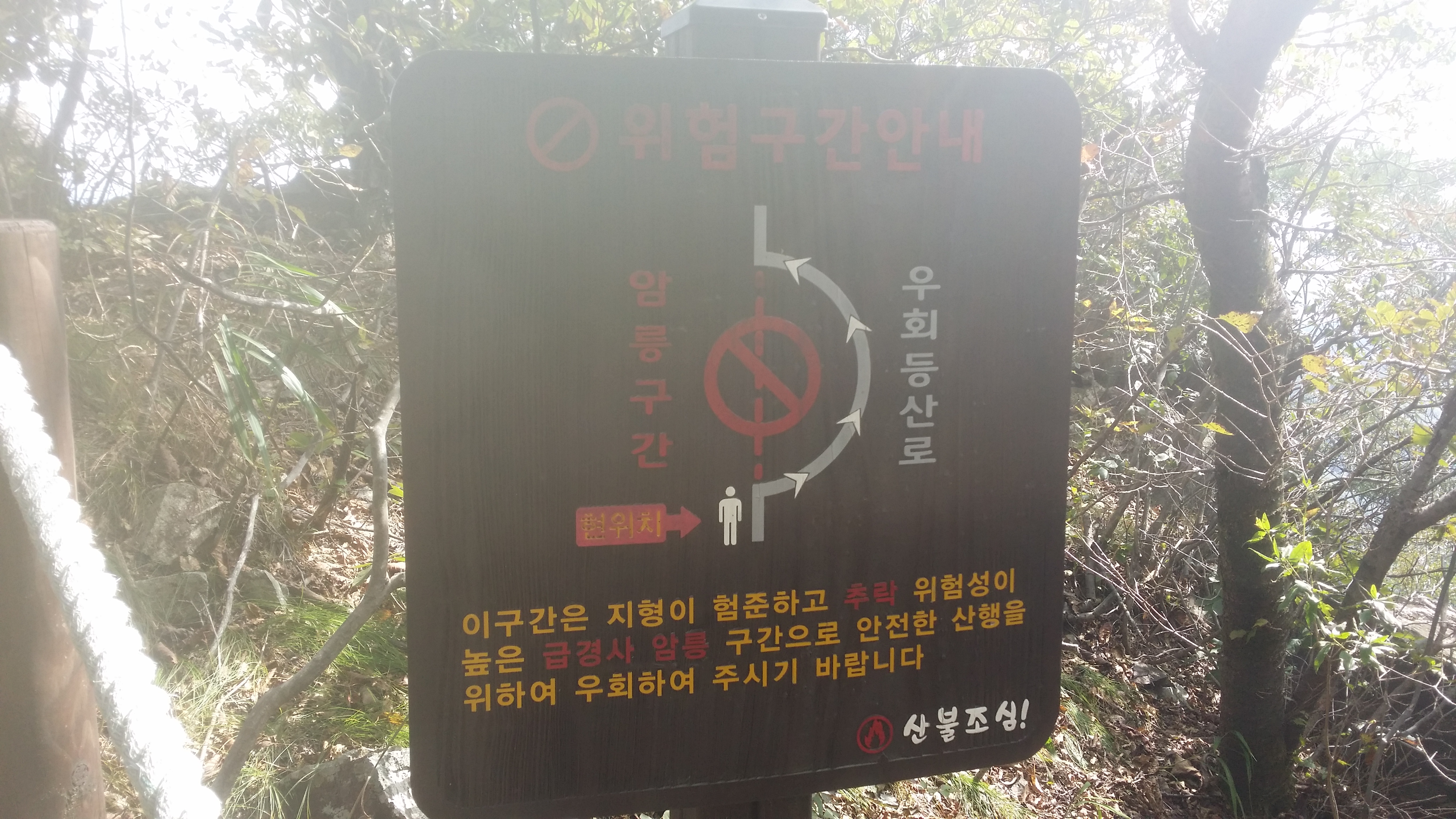 13:55 선답자 산행기엔 2개의 로프가 있었는데 몽조리 없앴다. 되돌아 선다