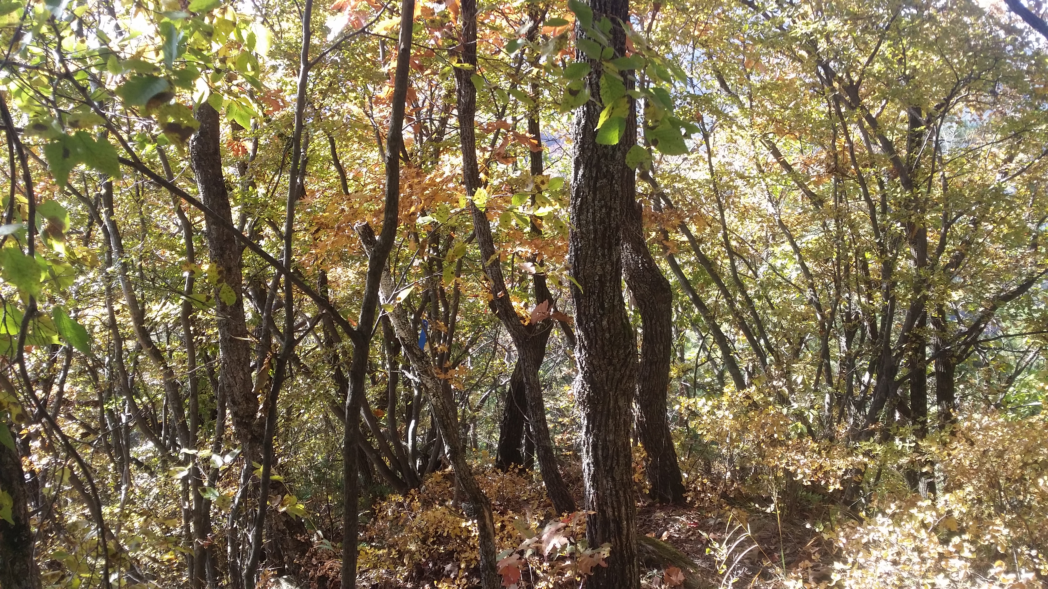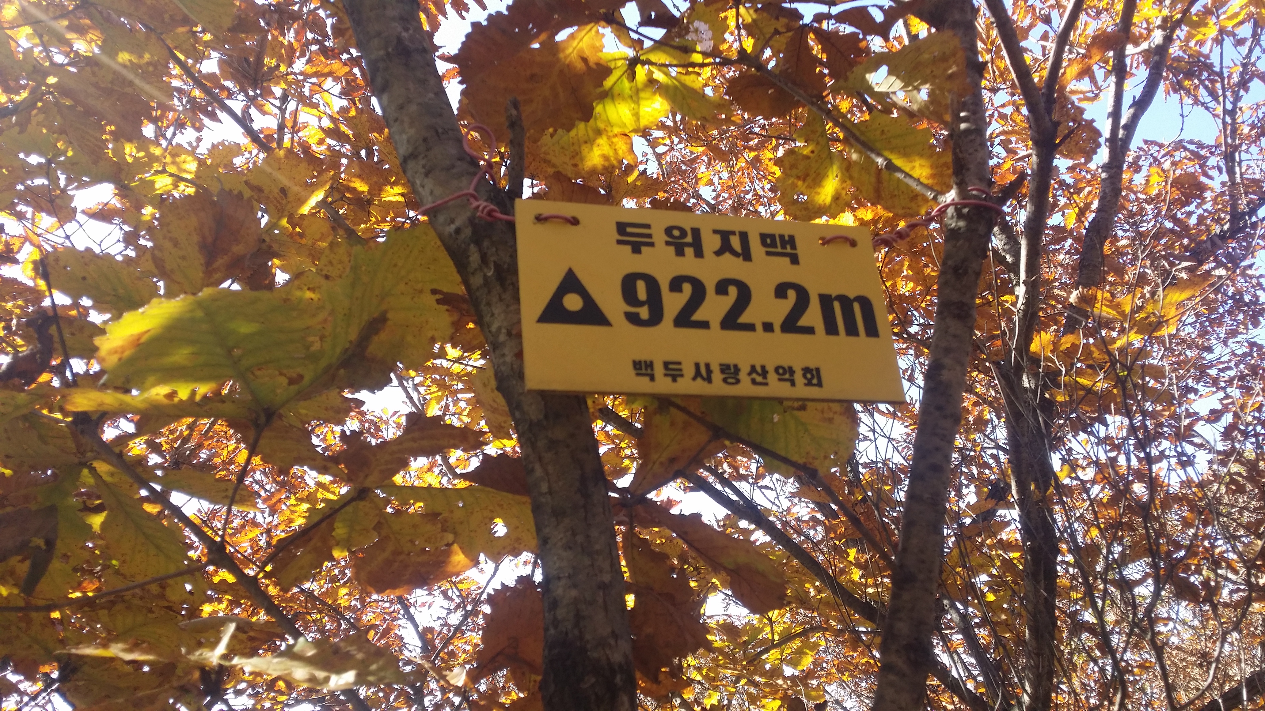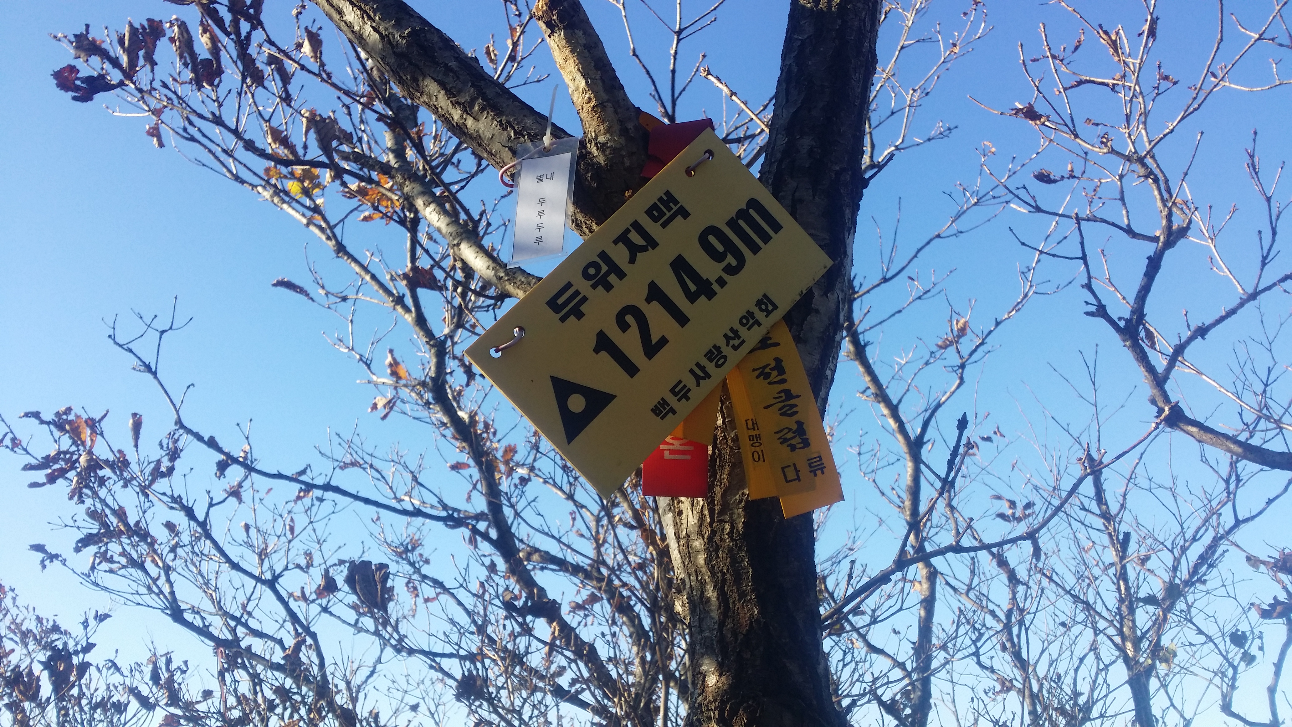 10:53 두위봉(斗圍峰/△/1470.8m/지리원 한글표기 : 두리봉)은 정선군 신동읍 방제리, 사북읍 사북리, 남면 무릉리와 영월군 중동면 직동리에 걸쳐 있는 산으로 태백산(1566.7m)에는 못 미치나 소백산(1439.7m)보다 높은 두위봉은 山이 되지 못하고 峰으로 남아있다. 일반적으로 여러 峰이 모여 하나의 山을 이루는데, 오히려 두위봉은 주위에 여러 山을 거느리고 있다. 산 모양새가 두툼하고 두루뭉실하여 사람들이 두리봉으로 불렀다는데 이를 한자로 옮기면서 두위봉이 된 모양이다.(조은산님 블로그에서 발췌)11:04 자뭇골 갈림길11:10 죽렴지맥 분기점11:42 1118.9봉1118.9봉 지나 임도를 만날때까지 마루금은 진입 불가하다. 좌측으로 우회하다 중간에 혹시나하여 들어갔는데 도저히 진행 불가하다 만약 고집을 부렸다면 오도가도 못하는 상황이 발생할뻔 했다12:05 임도