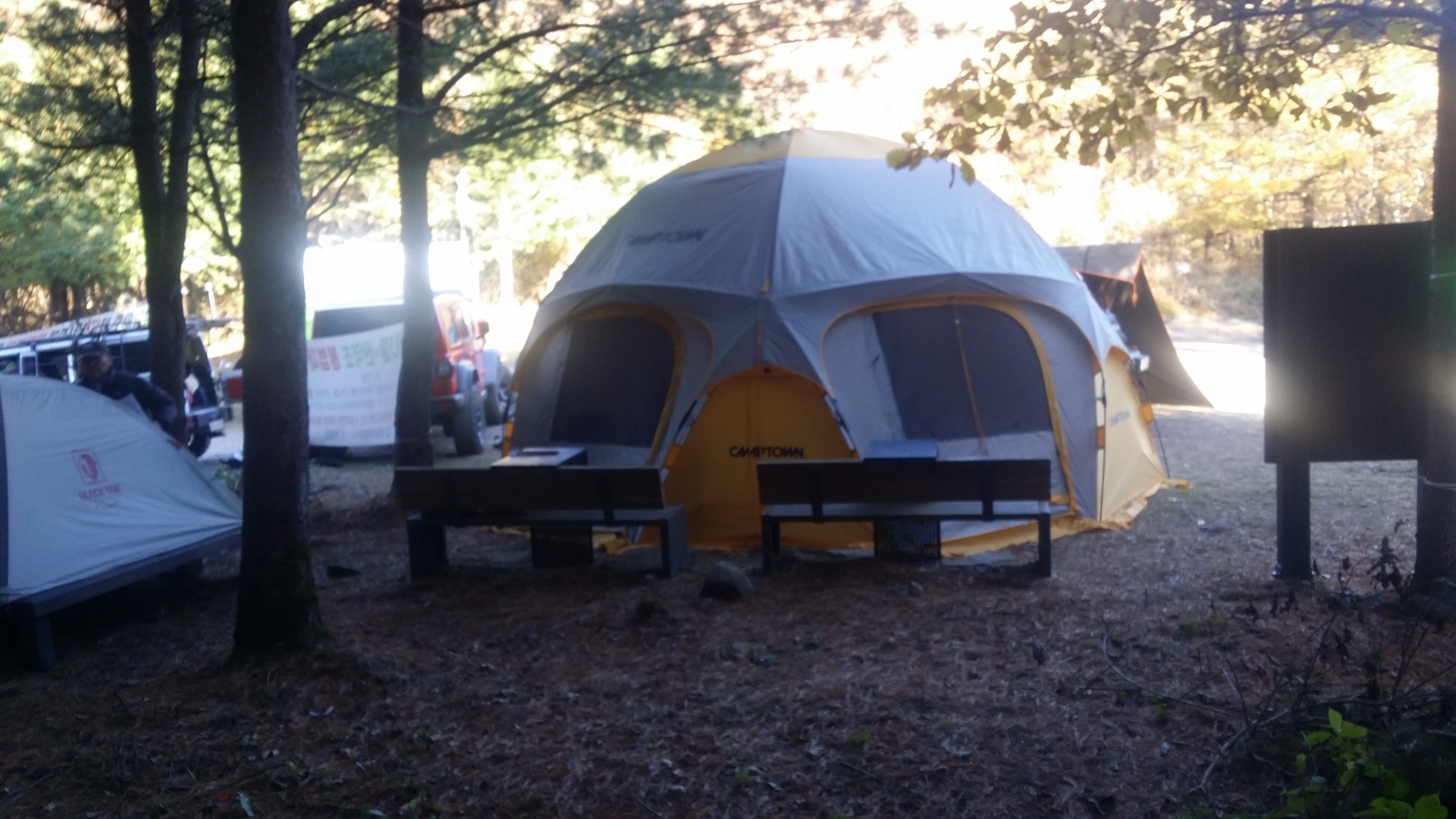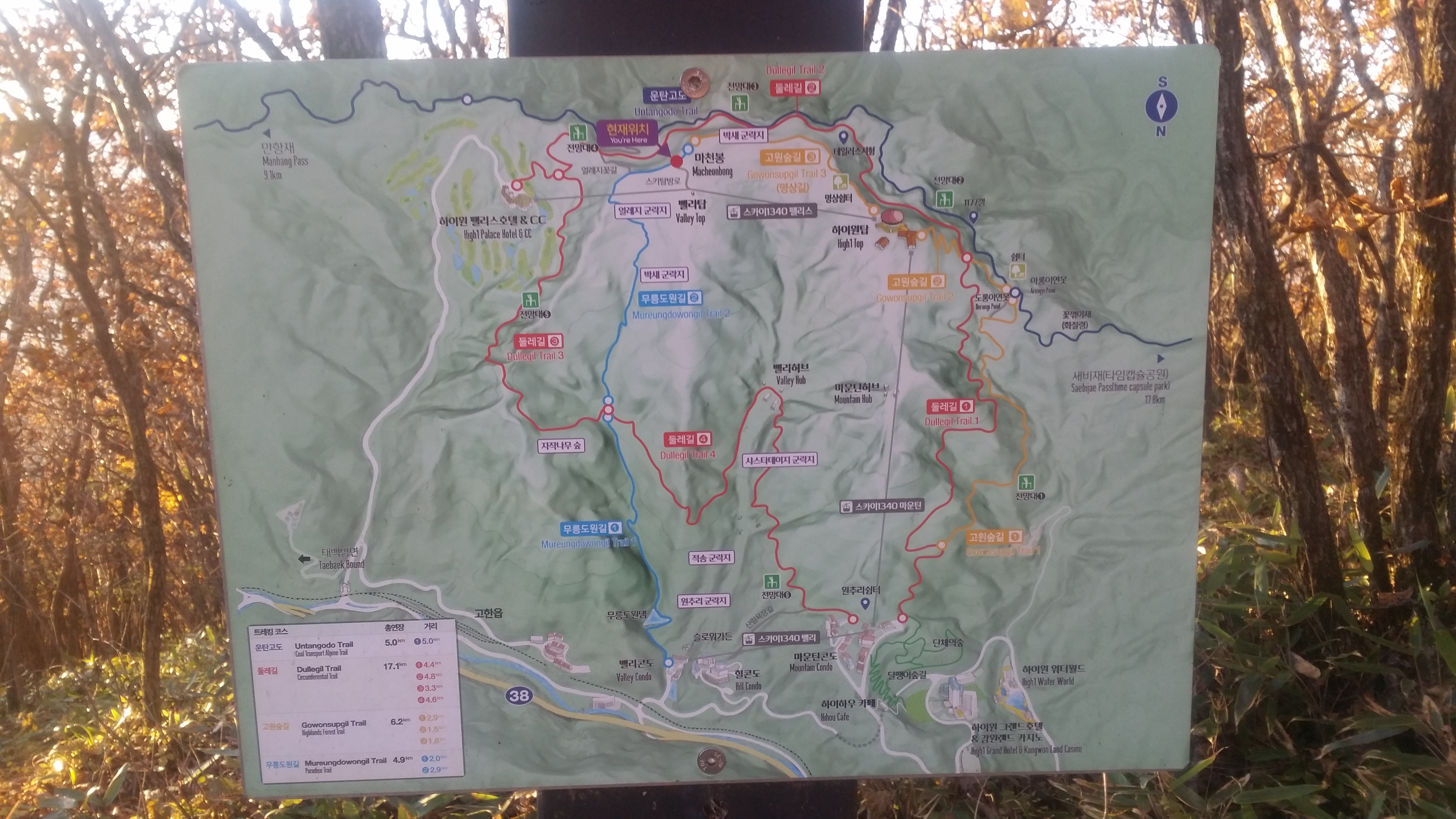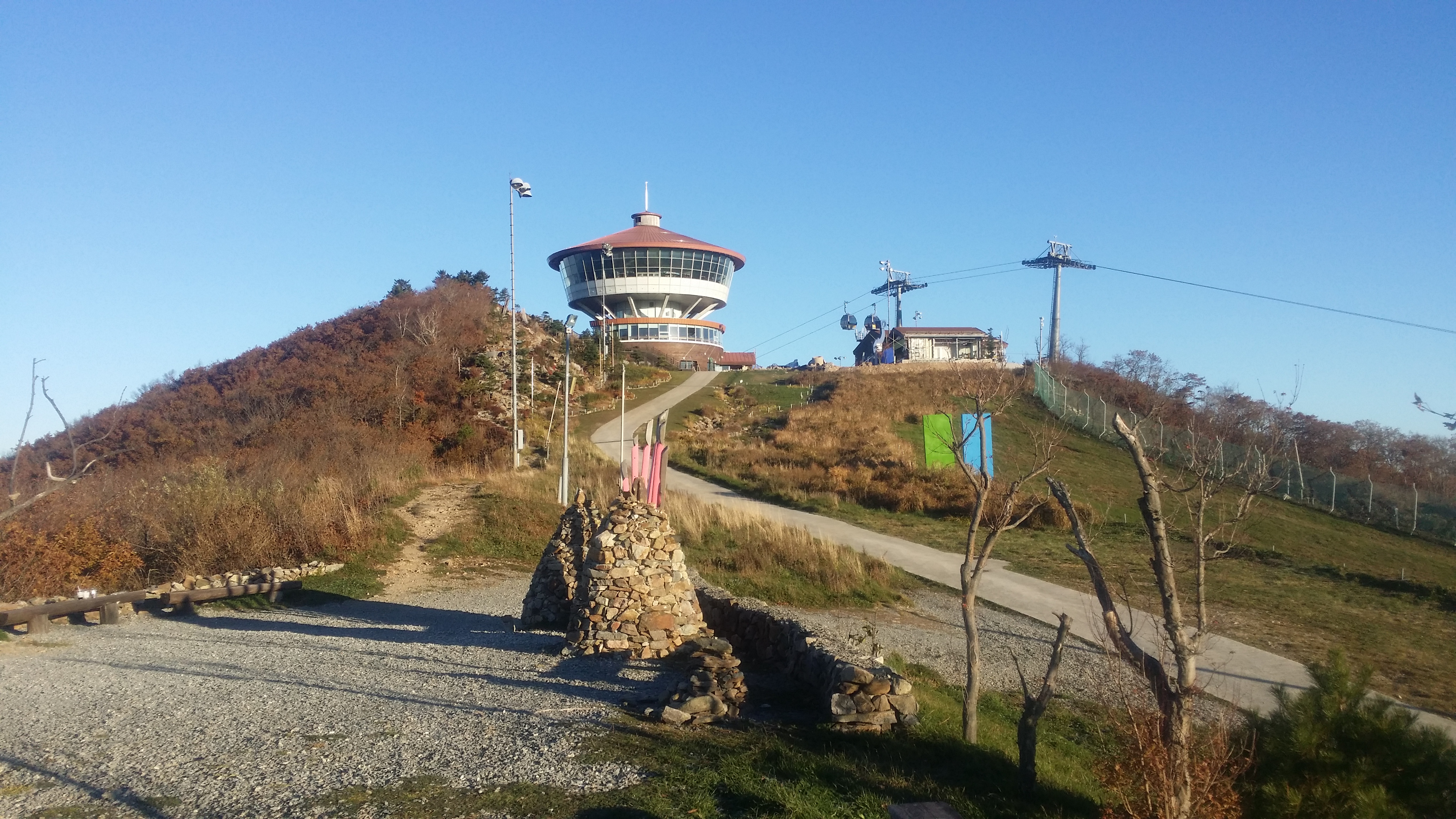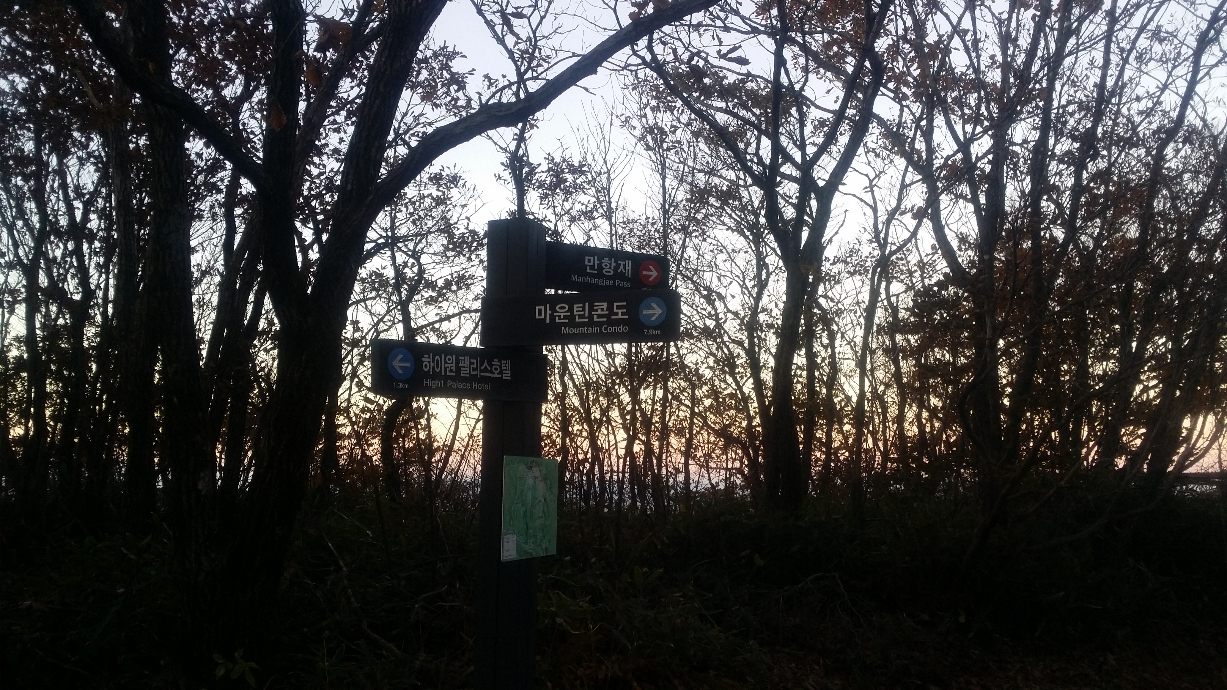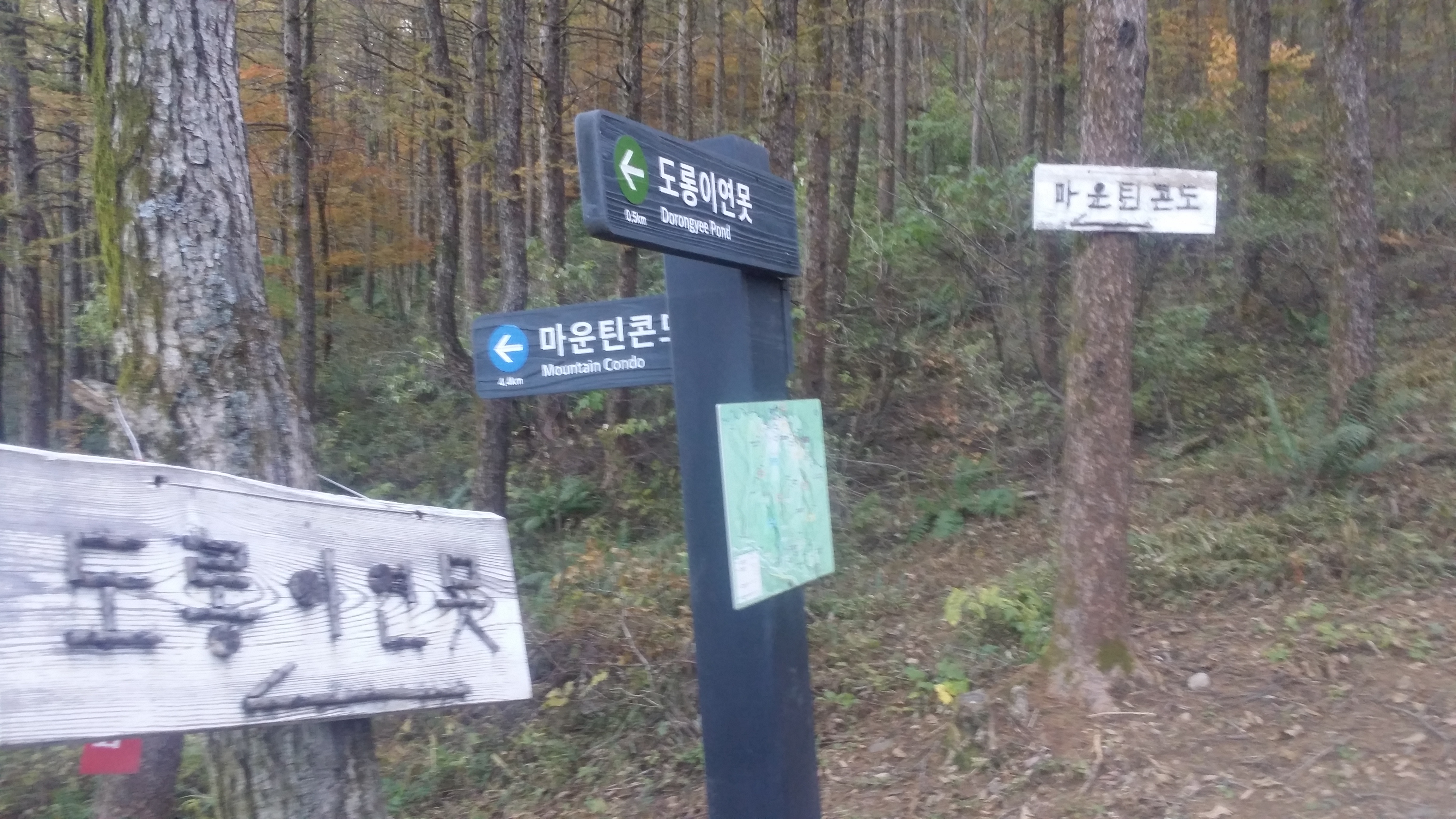 07:31~07:41 마운틴 탑 / 직원은 없지만 사용 가능하며 화장실에 물이 나오는지 test하니 온수가 나온다. 물이 부족하면 찜찜하지만 식수로 / 생리현상도 해결하고이런 생각도 했다. 전망레스토랑에 읍소하여 先송금후 생수를 약속된 장소에서 회수하는 방안도07:51 마운틴콘도 갈림길07:57 도롱이연못 갈림길 / 텐트족이 몇동 있다