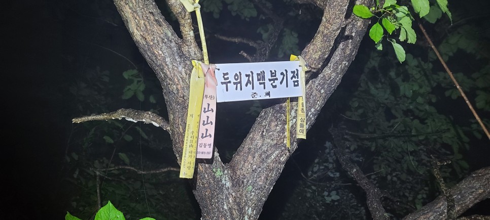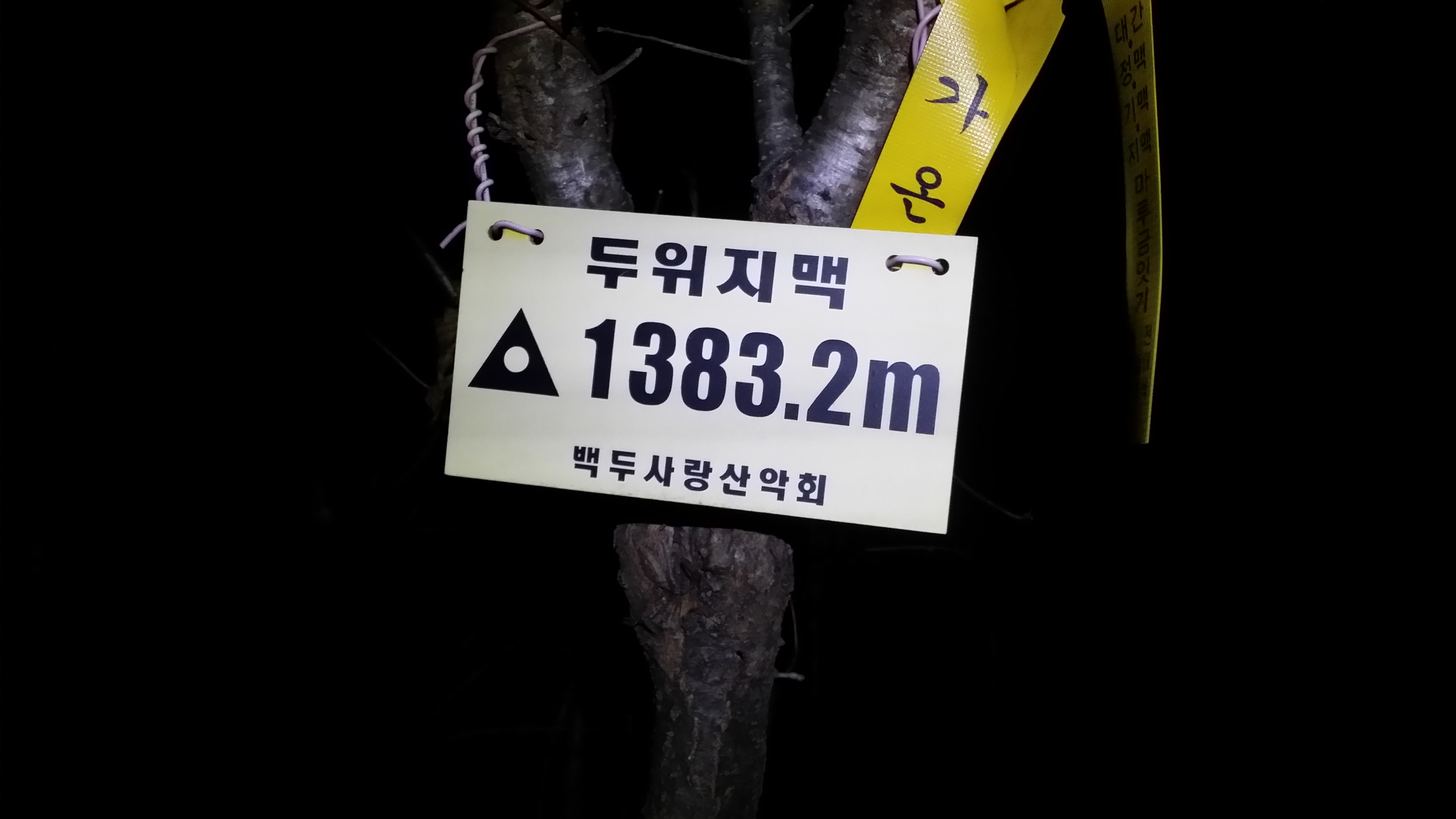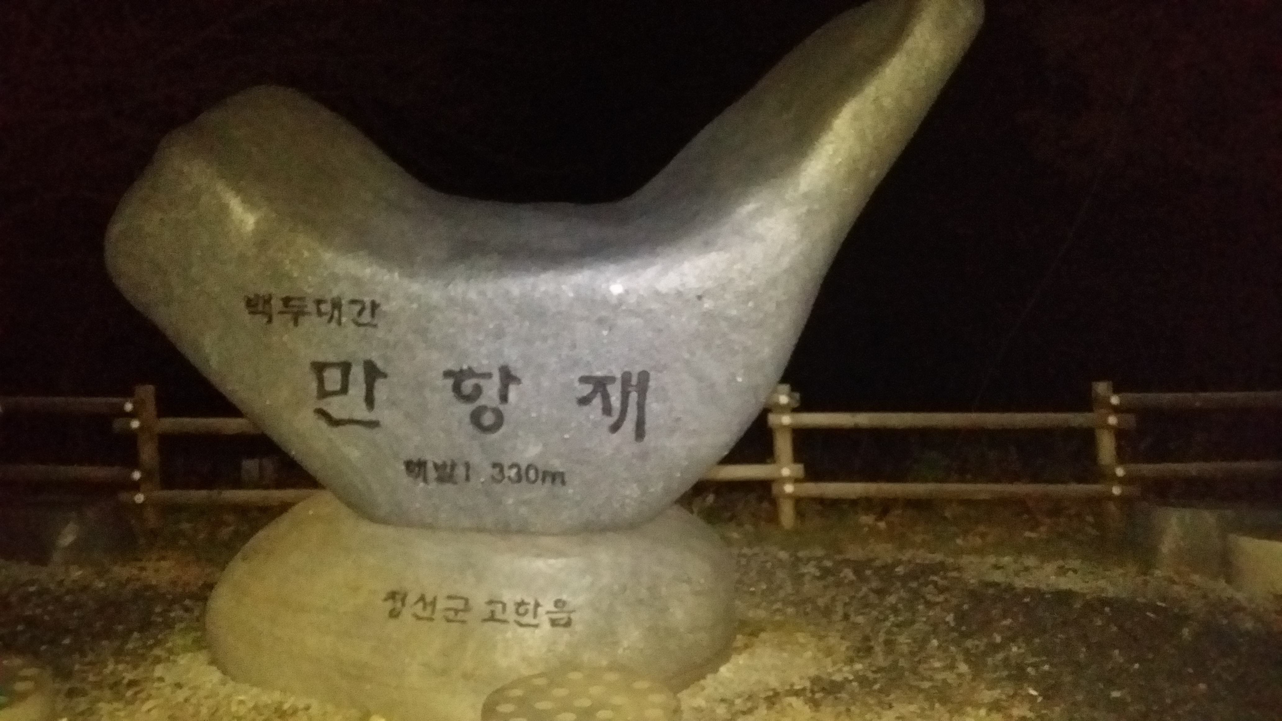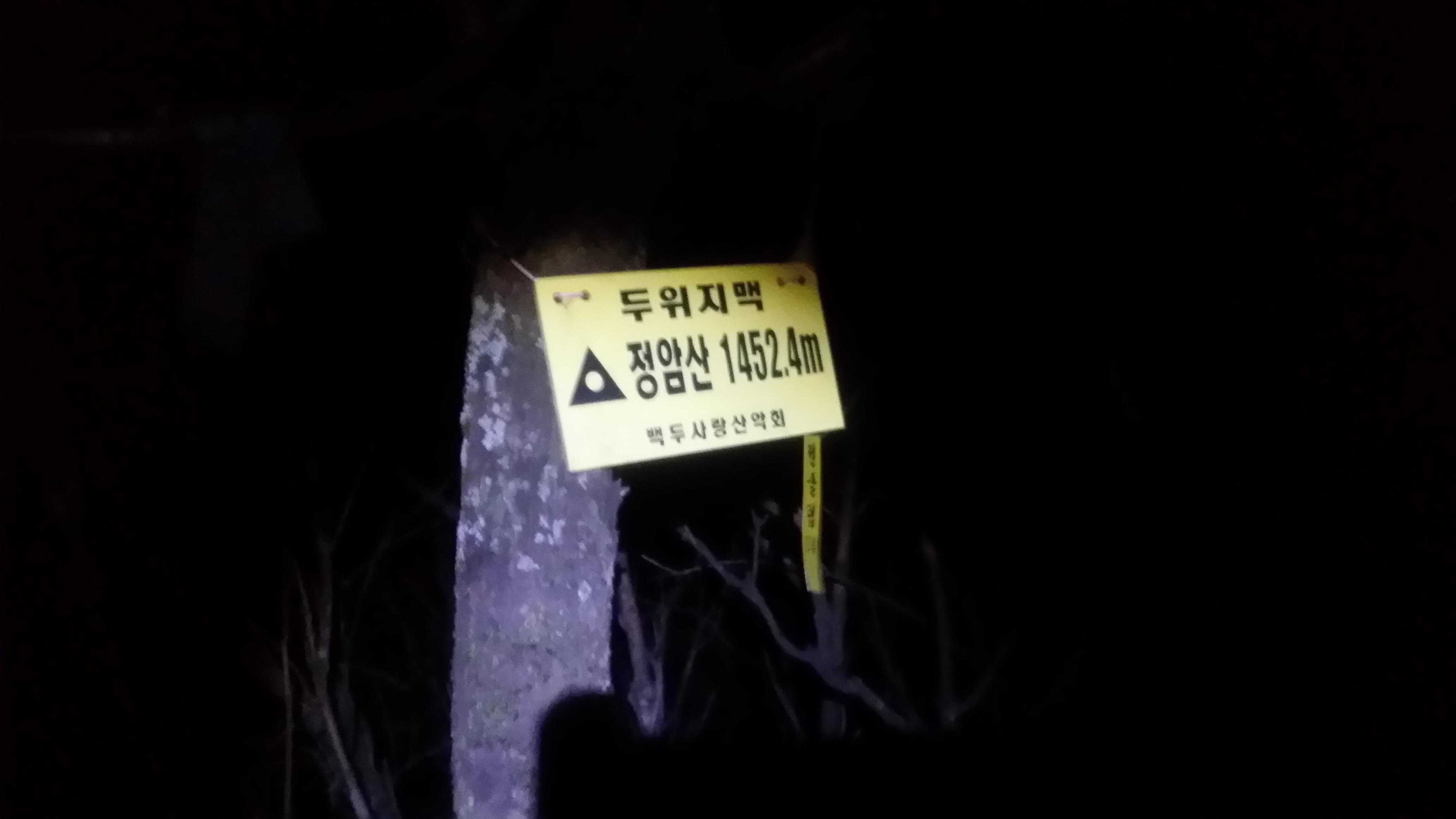 새벽 바람이 차다. 겨울 산행 준비를 할때네03:15 만항재에 도착하여 분기점으로 이동한다03:18 두위지맥 분기점 / 산패는 매점 뒷쪽에 있다