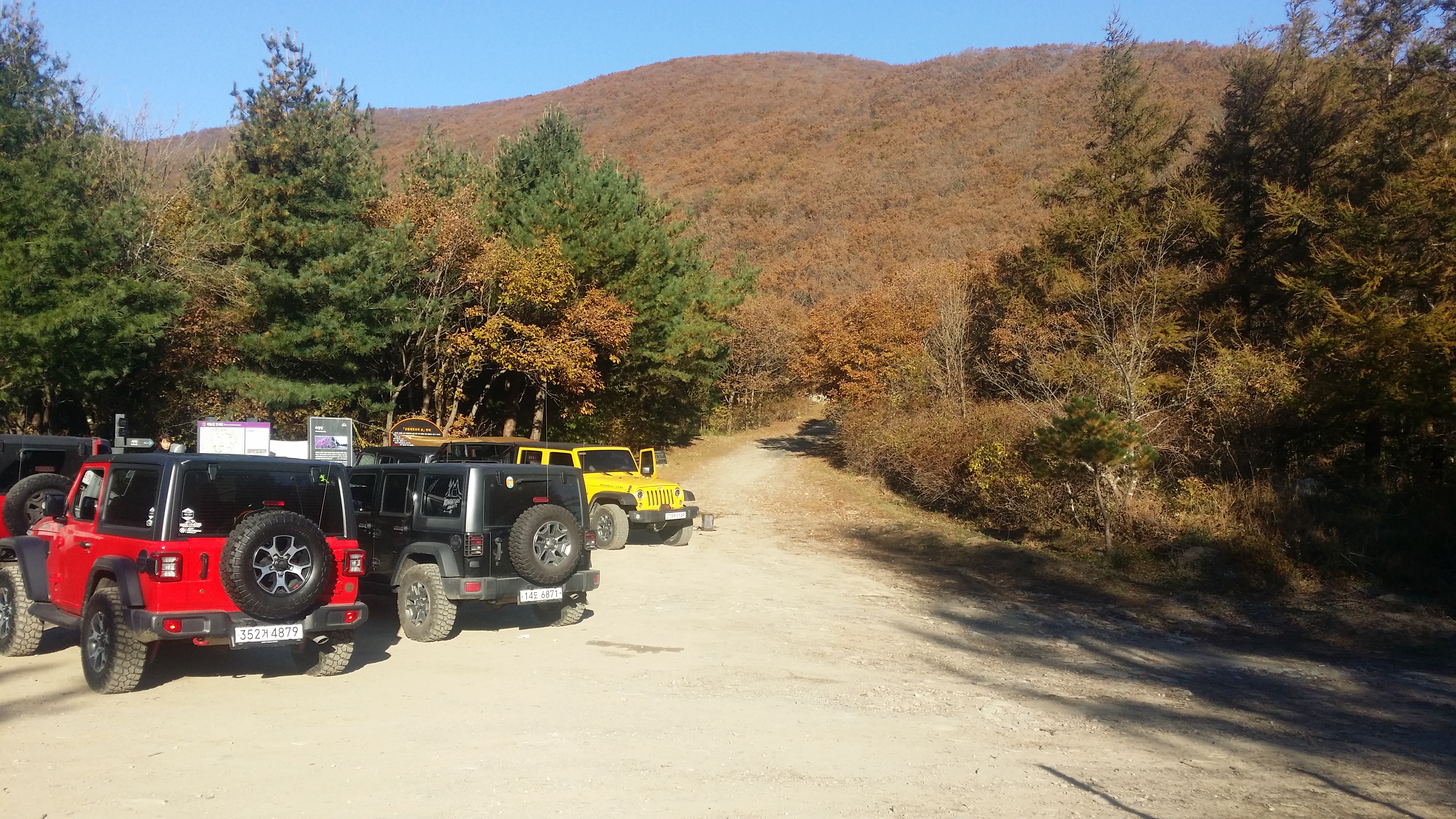 2시30분 어평재 도착 예정이다. 예상보다 30분 경과했다. 장거리 산행시 피로로 인하여 밥먹기가 고역이라, 김밥을 준비하여 산행 예상시간에서 20분을 제하면 10분 초과다. 산행 준비를 하고 오룩스를 켜니 어평재를 지나 만항재로 가고 있다. 내적 갈등을 일으킨다. 말해야되나 말아야되나, 고민하는데 산행대장이 눈치채고 버스를 돌린다. 다시 BACK 하는 시간과 어평재에서 만항재 오르는 시간을 생각하니 차라리 여기서 내려 도로를 따라 걷는게 시간이 단축 될것같아 세웠다. 어평재에서 4Km지점, 만항재까지 4.3Km 지점인 장산콘도 근처에서 하차한다