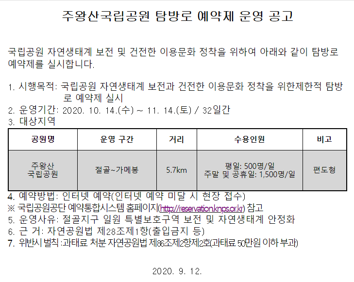 - 산행구간 : 절골탐방지원센터 ~ 가메봉 ~ 주왕산 ~ 대전사 ~ 주왕산상의탐방지원센터