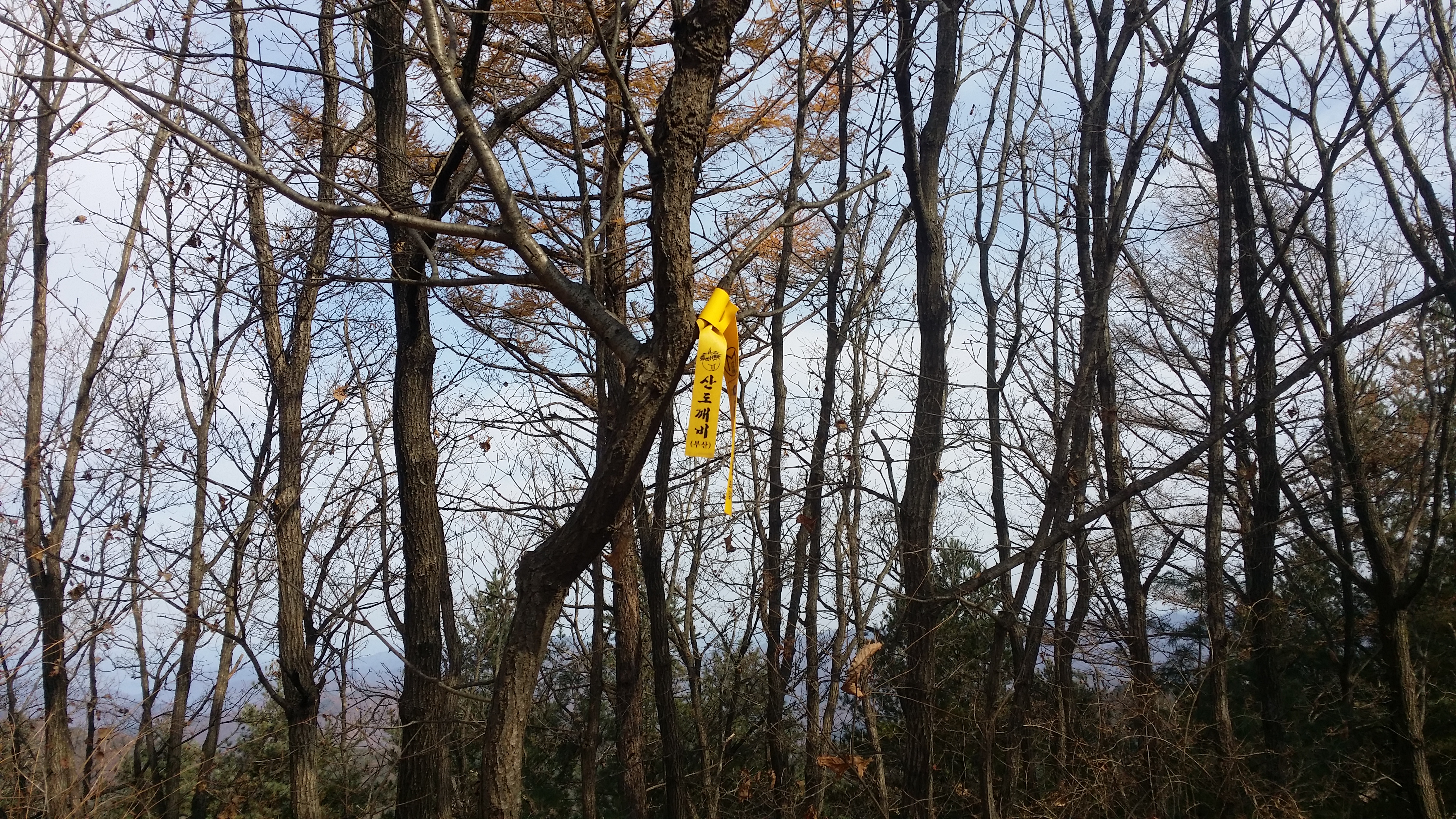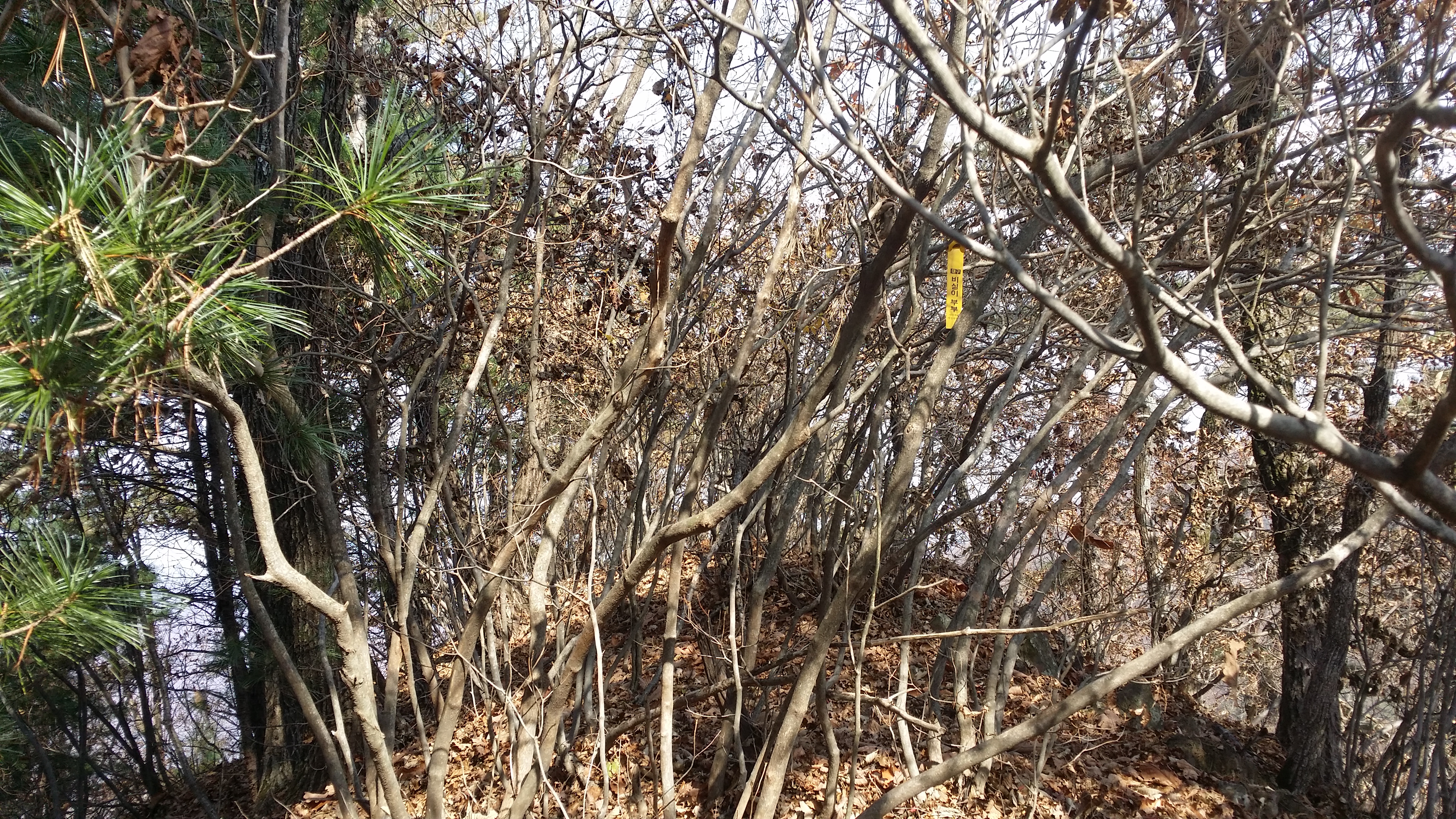 10:11 수라 삼거리10:35 만경대산(1088m)10:36 만경대산(△) / 마루금은 만경대산 휴양림 방향으로 진행하여야 하는데 선답자 산행기를 보면 미역줄기 나무로 인하여 개고생 한다고 대다수가 만경선사 방향 임도를 따라 우회하네마루금으로 진입하자 마자 후회가 밀물처럼 밀려든다. 정확한 등로는 없다. 알아서 헤쳐 나가야 한다. 그래도 견두지맥때 보다는 상황이 좋다. 10:43 들머리와 날머리에만 시그럴이 존재하고 중간엔 알아서 기란다10:45 만경대산 정상밑 공터