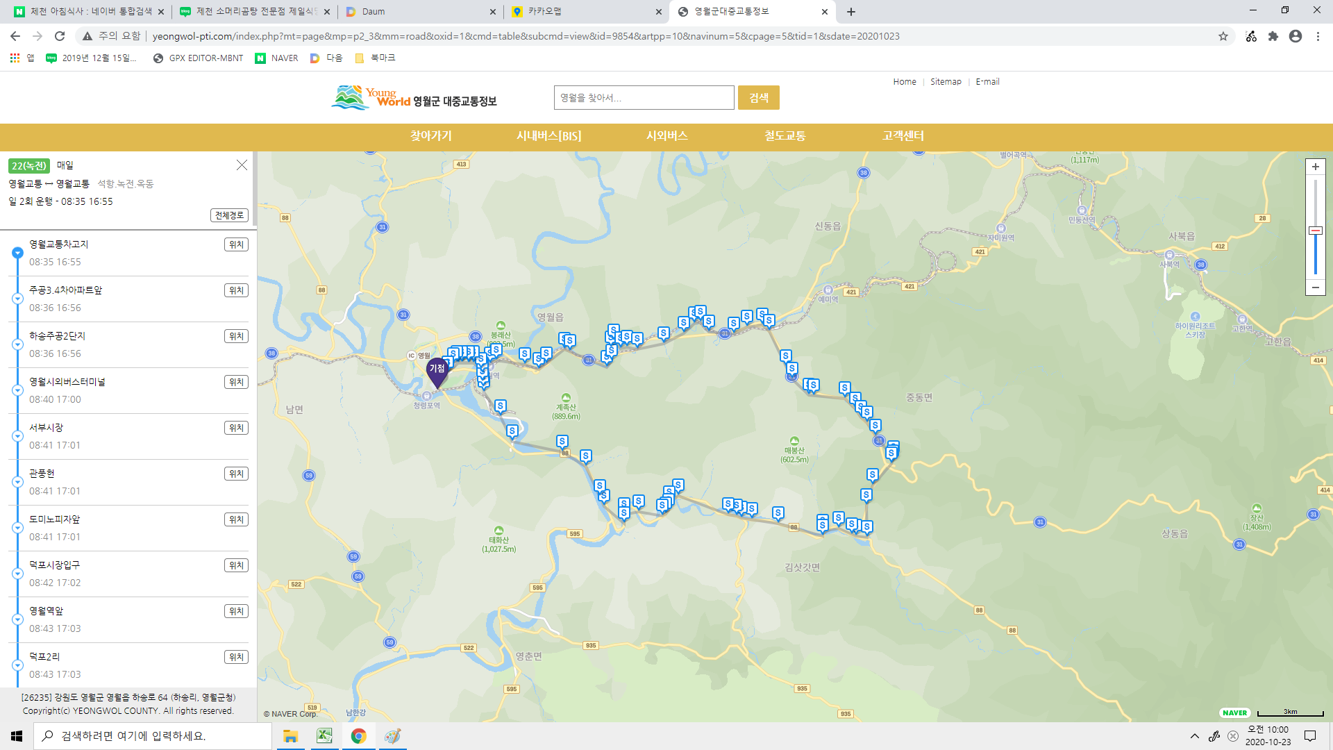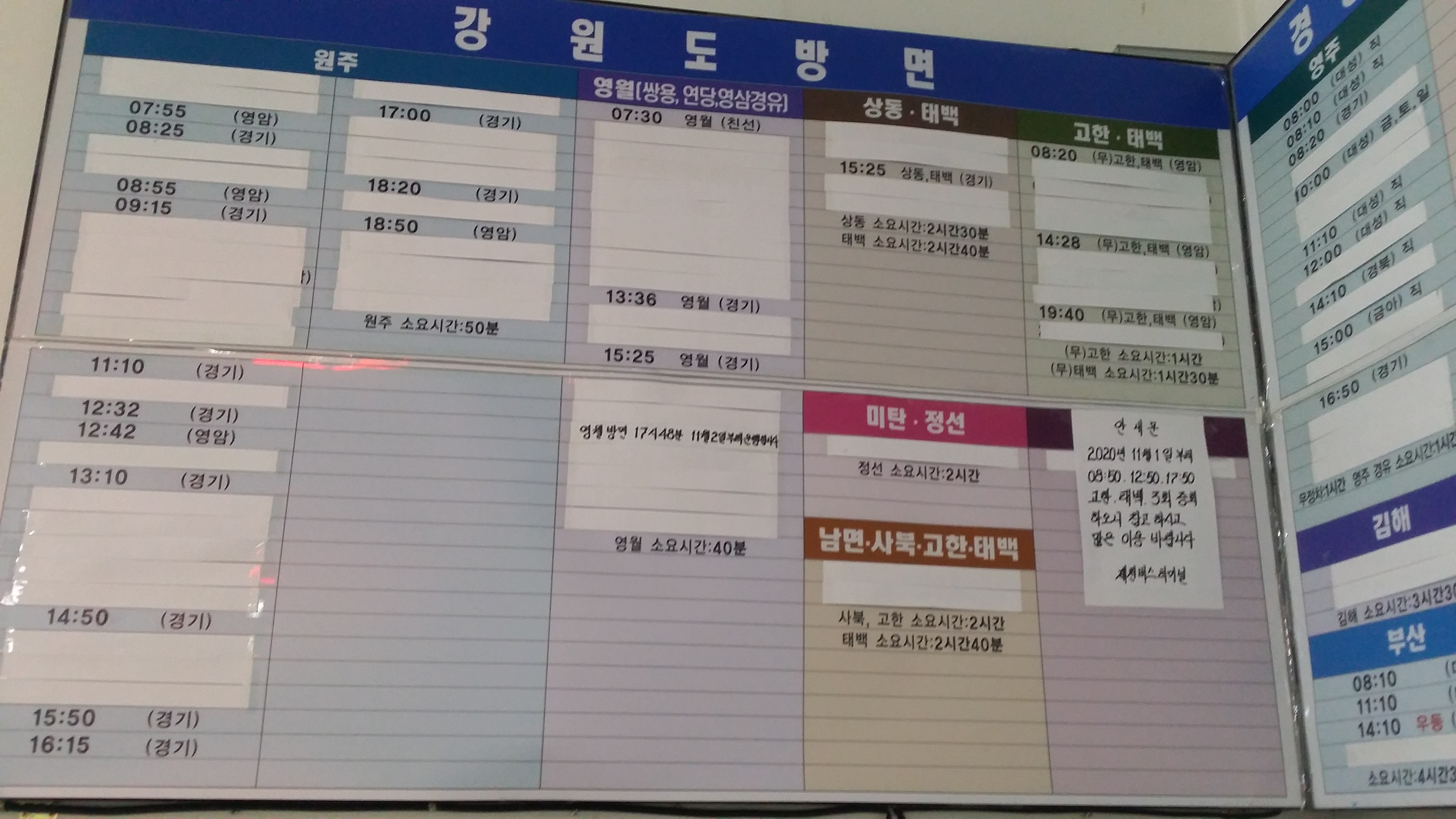 터미널로 이동하는데 부근에 아침 식사가 되는곳이 몇군데 있네요07:09 제천 시외버스터미널시내에서 일출을 맞이 합니다07:30 영월가는 시외버스에 오릅니다08:16 영월 시외버스터미널에 도착하여 8시40분 녹전행(22번) 버스를 기다립니다