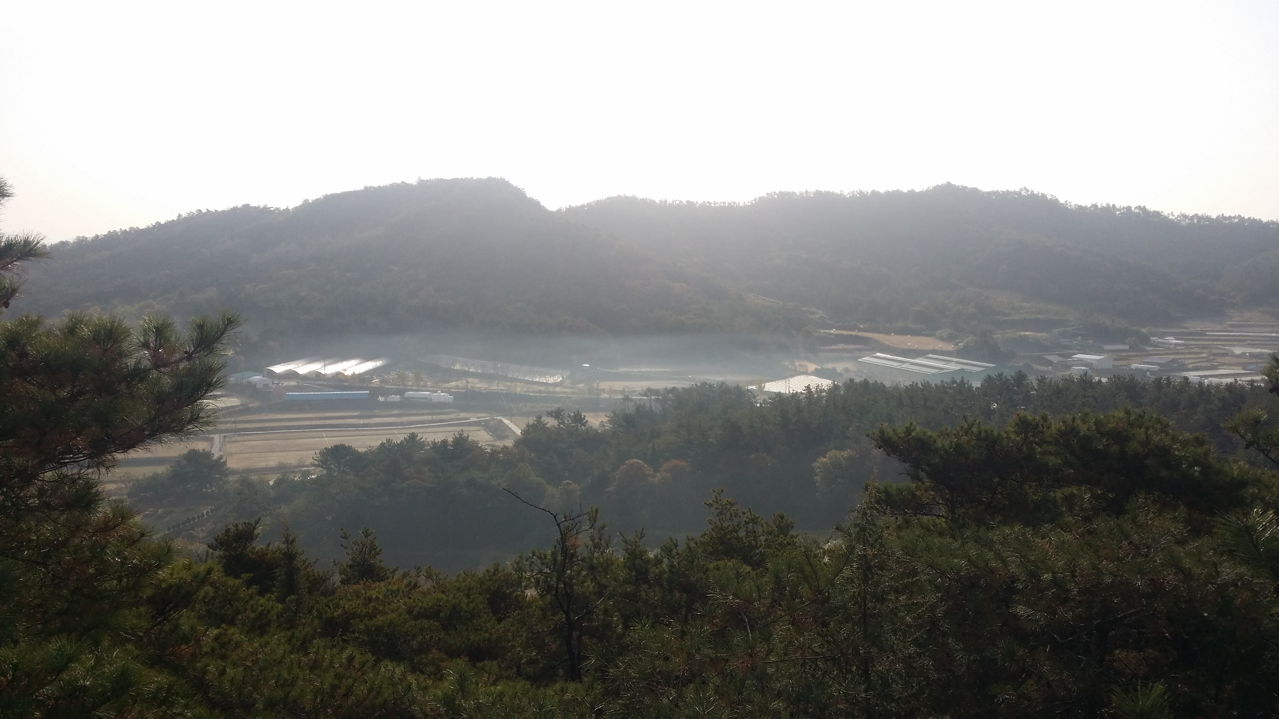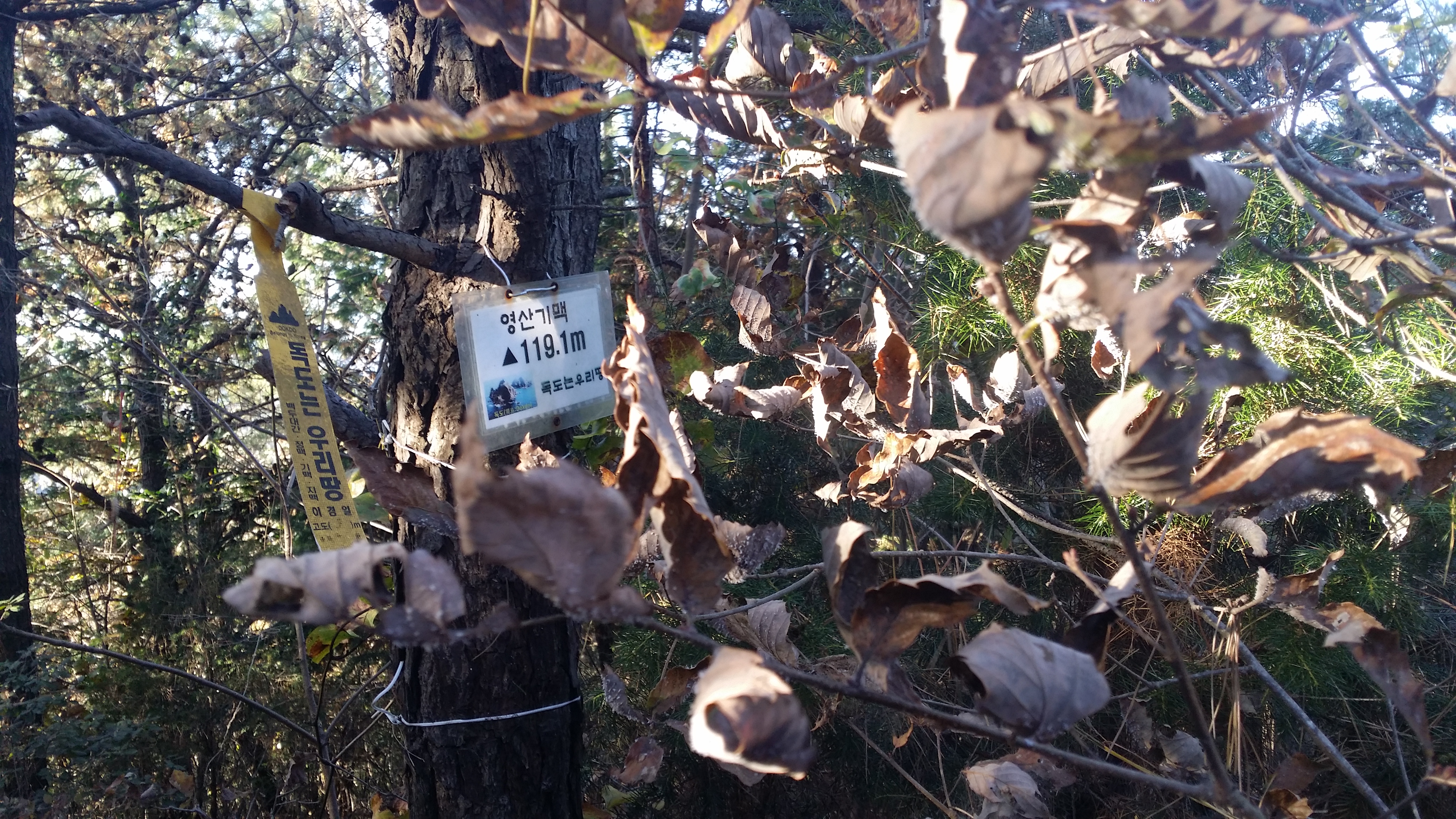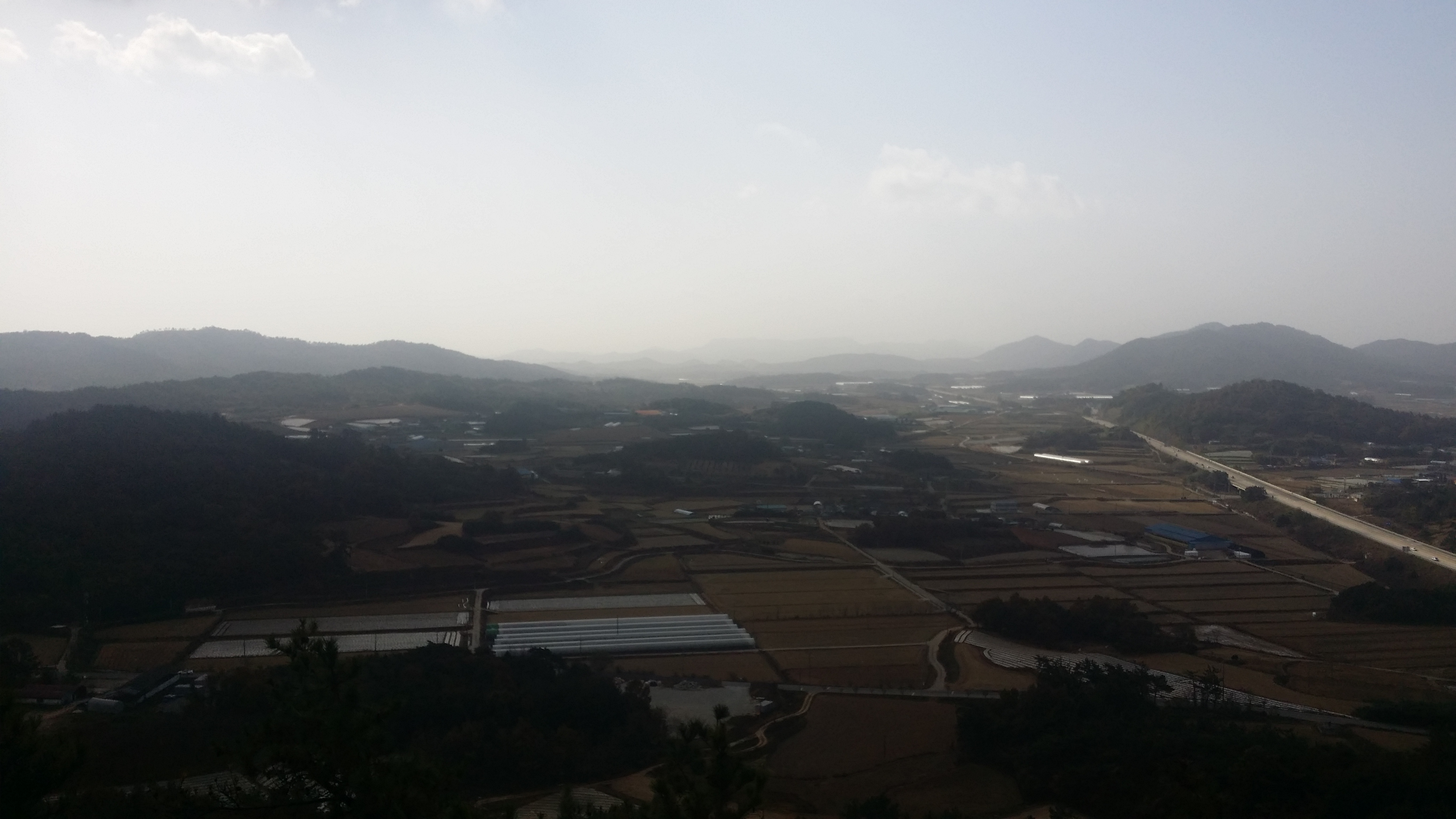 07:34~08:05 함평나비 휴계소에서 순두부로 아침을 해결하고08:24 가는고개에 도착하여 산신령님, 백양산다람쥐님 내려 드리고08:41~08:47 815지방도(대덕리)에 도착하여 산행 준비후 출발다음구간 들머리09:04 101.2봉에서 바라본 대덕리 / 대덕리~101.2봉 등로가 난해하고 가시나무 산재09:17 마루금은 비닐하우스와 축사 사이인데 견공이 지키고 있다. 게다가 주인까지 있어 비닐하우스를 우회한다