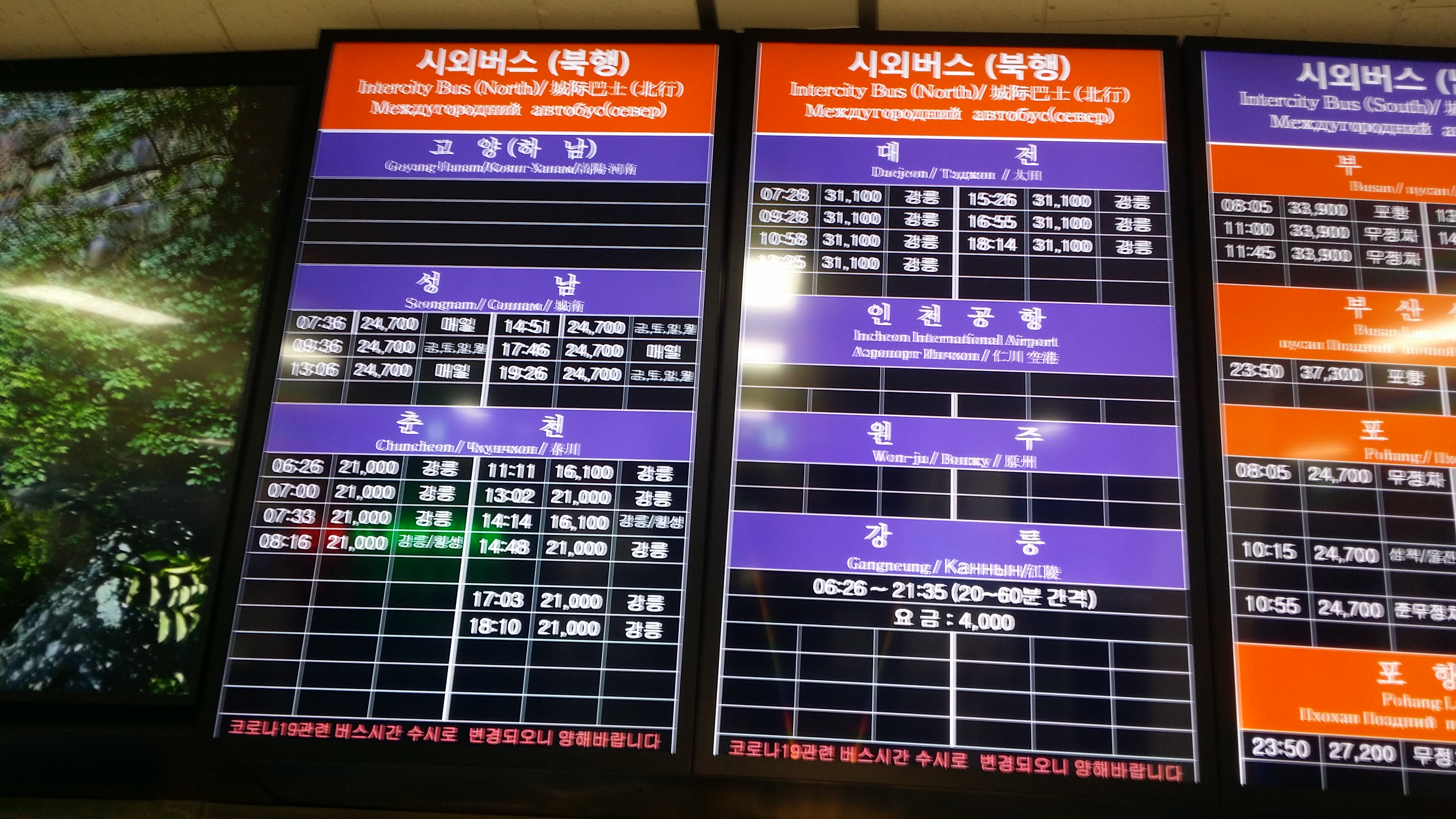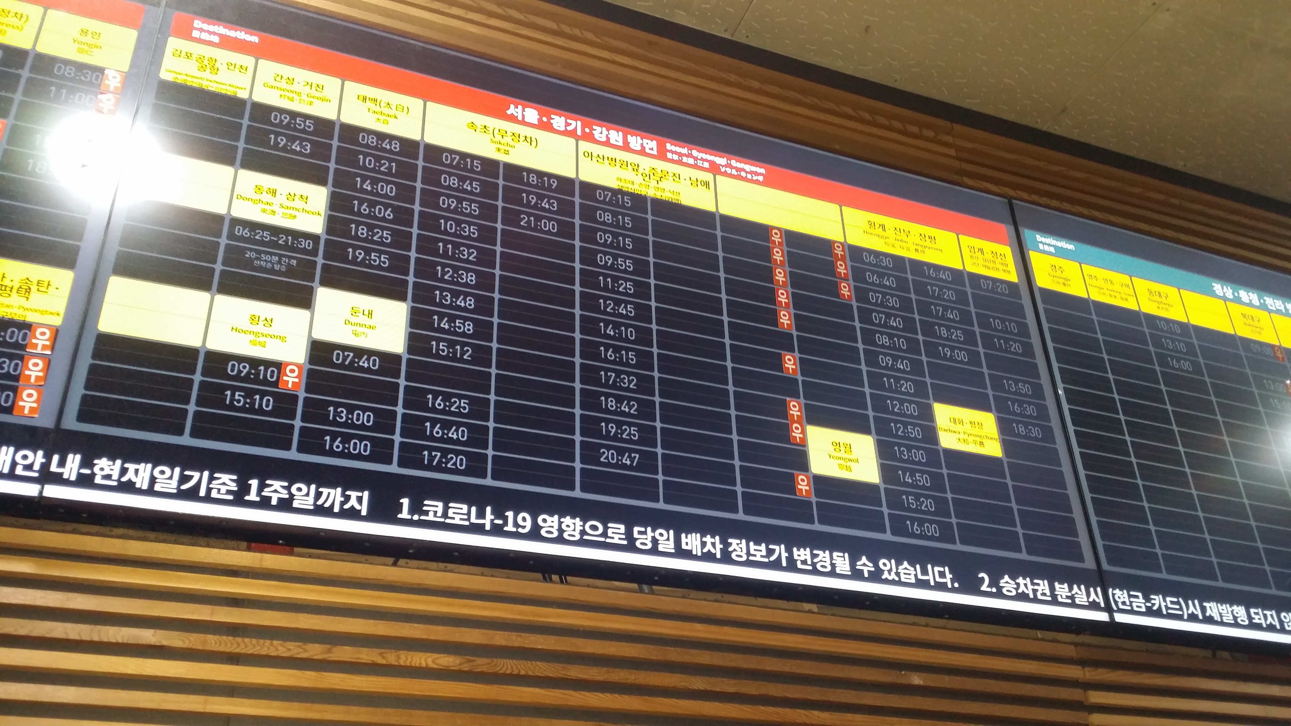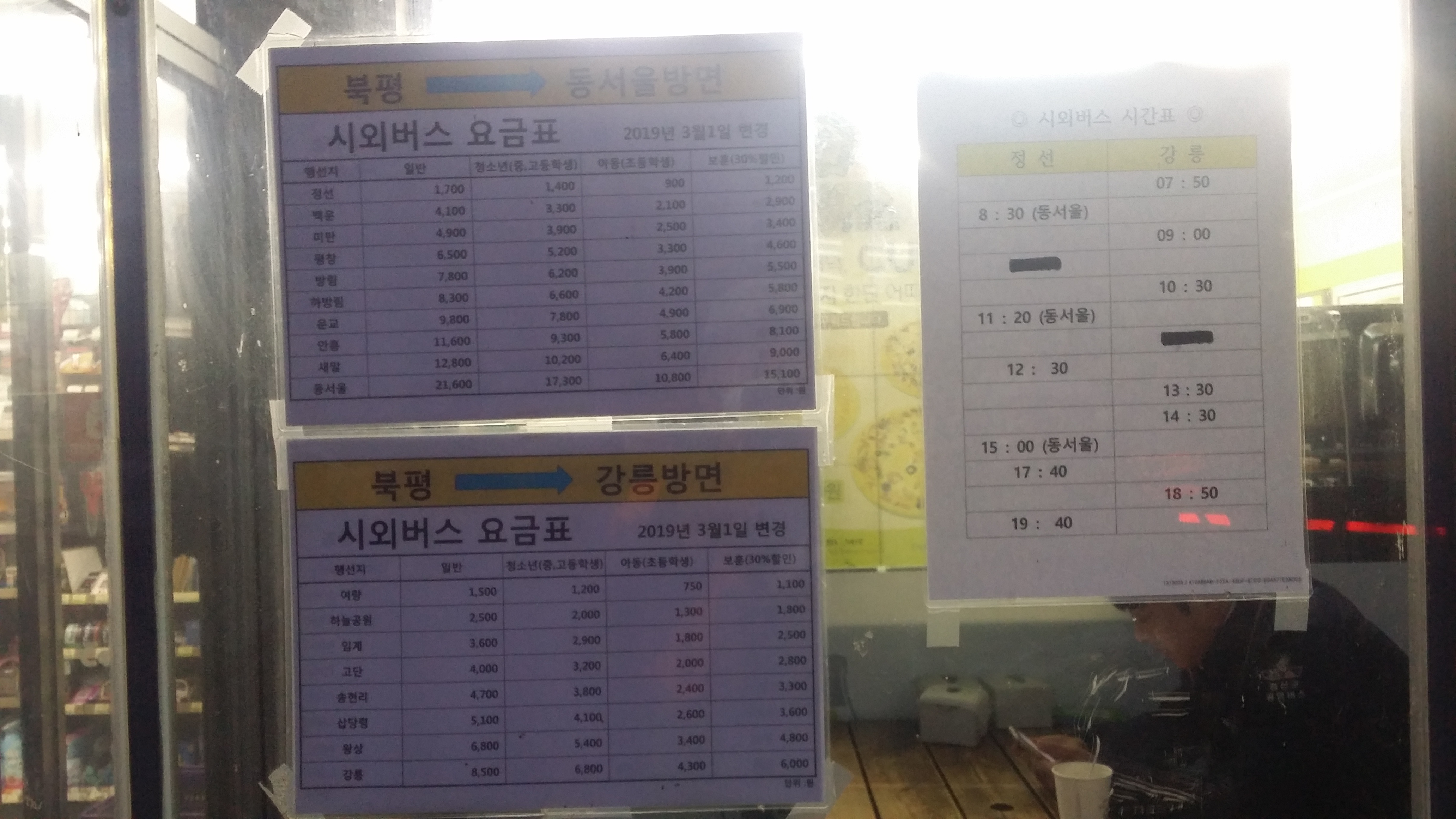 5시45분 기상하여 샤워하고 6시10분경 식당에 도착해 황태해장국을 먹는다. 인근에 06:50 잘 묵고 갑니다요집도 아침 식사가 되네06:52 나전시외버스터미널에 도착하여 편의점에서 김밥 1개와 생수 2병을 산다. 베이컨 땡초 김밥을 샀는데 나의 입맛엔 안맞다 불고기 왕가득 김밥이 딱인데, 생수도 2통으론 부족할것 같은데, 베낭 무게 때문에...만약을 위해 강릉행 시간표를 기억하고숙암가는 버스다. 7시10분에 출발해야 하는데 14분에 출발한다. 여기서 숙암까지는 10분 소요되니 대기없이 바로 턴할려 일부러 늦게 출발하네. 나한텐 1초가 아까운데