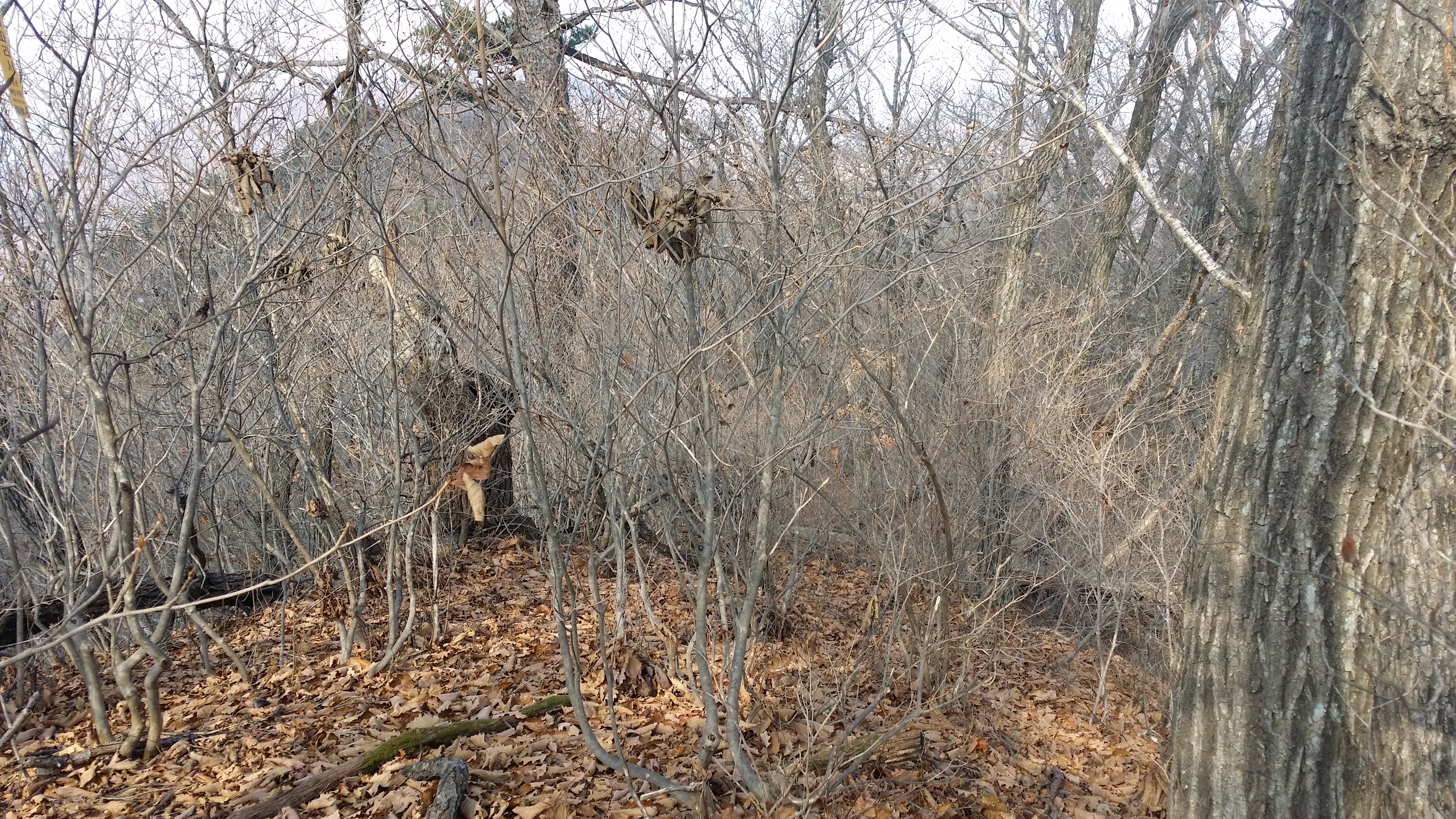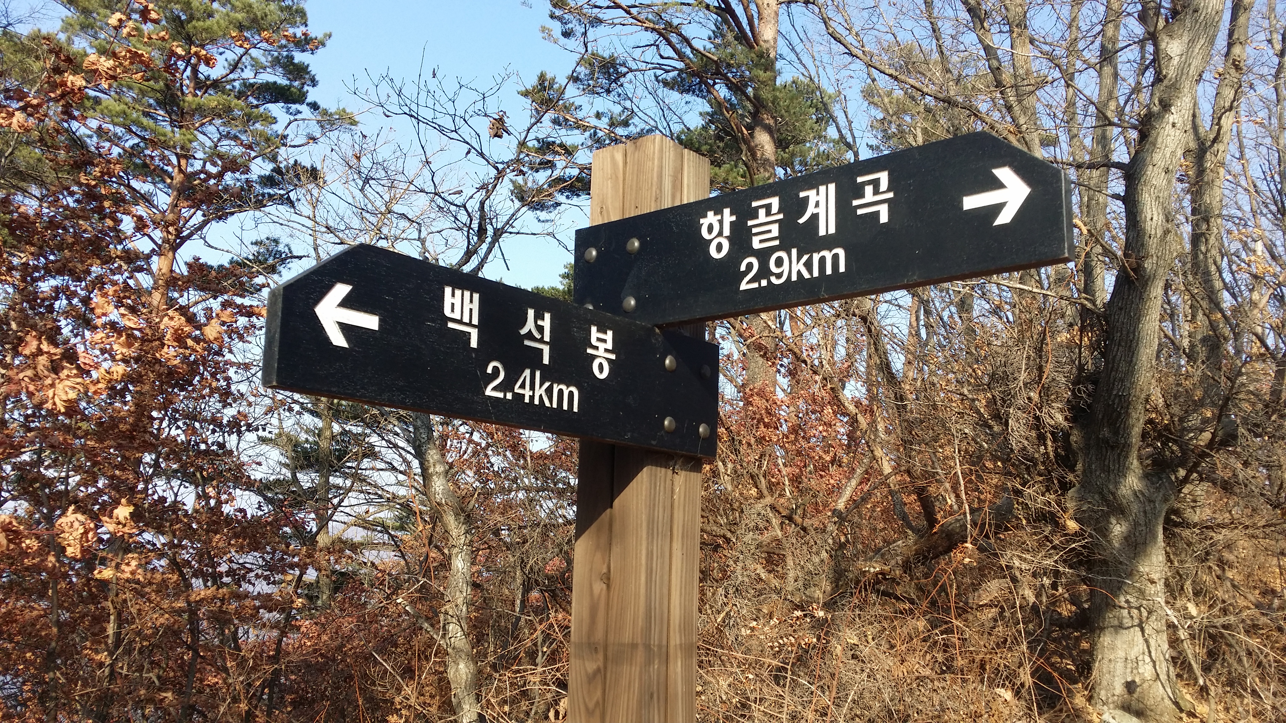 07:18 마루금 인근에서 버스를 세웠다. 담튀기한후 좌측으로 길이 있는데 무작성 직진한다고 욕봤다17시22분 아우라지에서 청량리가는(주말만 운행) 정선 아리랑 열차를 못 탈것 같은 예감에 오대천&골지천 합수점 가는건 생략 했다. 게스로 금대지맥 마루금도 보이질 않는다08:15 843.5봉(△) / 마루금은 우측으로 내려서야 하는데잡목으로 조금더 진행하며 내려서야 한다. 역으로 진행하다보니 그냥 지나쳤는데, 트랙을 따라 내려서면서도 이해가 안되었는데 내려 올수록 도저히 진행 불가하여 우회했네08:27 산악기상장비를 지나치고백석봉 등산 안내도 / 지리원 백석봉과 위치를 달리 합니다. 시간이 허락 되었으면 왕복(30분 소요)할려 했는데, 오늘은 맥길에서 한발도 벗어날수 없을 만큼 마음의 여유가 없습니다08:43 894.4봉09:23 1121.9봉송천&골지천으로 떨어지는 마루금을 바라봅니다09:46 1171.2봉(△/ 백석봉 안내도의 봉우리) 갈림길09:52 백석봉(1237.5m)10:07 항골계곡 갈림길10:07 1139.1봉 / 평소와 다르게 허기가 쓰나미 마냥 확 다가옵니다. 에너지바를 먹고, 진정이 안되어 계란을 먹었는데도 여전합니다. 육포를 씹어도 호전 되지가 않아 갈미봉을 오르면 수백만번 넘게 되뇌입니다. 뭐 때문에 개고생을 그러면서도 포기할수 없네요10:33 1010.5봉 / 30% 진행 했는데 계획보다 30분 초과 되었습니다. 불당재 갈림길까지 계속 오르막인데, 발걸음은 더욱더 무거워 북평에서 하루 더 자고 간다는 각오로 임합니다10:43 왼쪽으로 어제 숙암으로 내려선 임도가 보입니다10:45 1023.9봉(△)10:53 숙암갈림길(임도) / 약 30m를 임도를 따라 진행하여야 하는데, 어제 만나 산림청 직원들땜에 찜ㅉ미하여 후다닥 진행 합니다