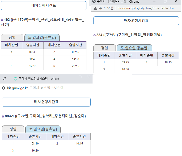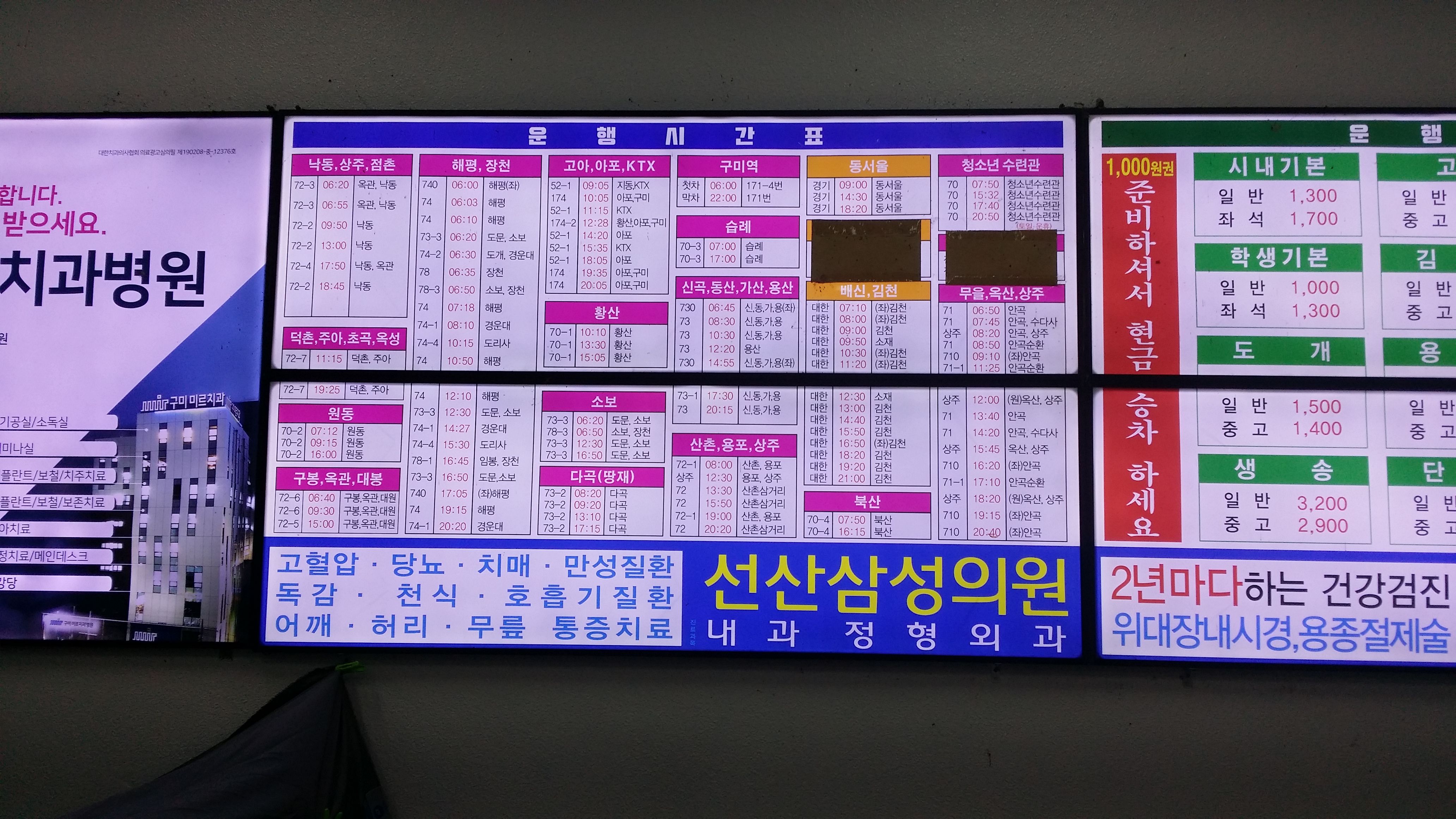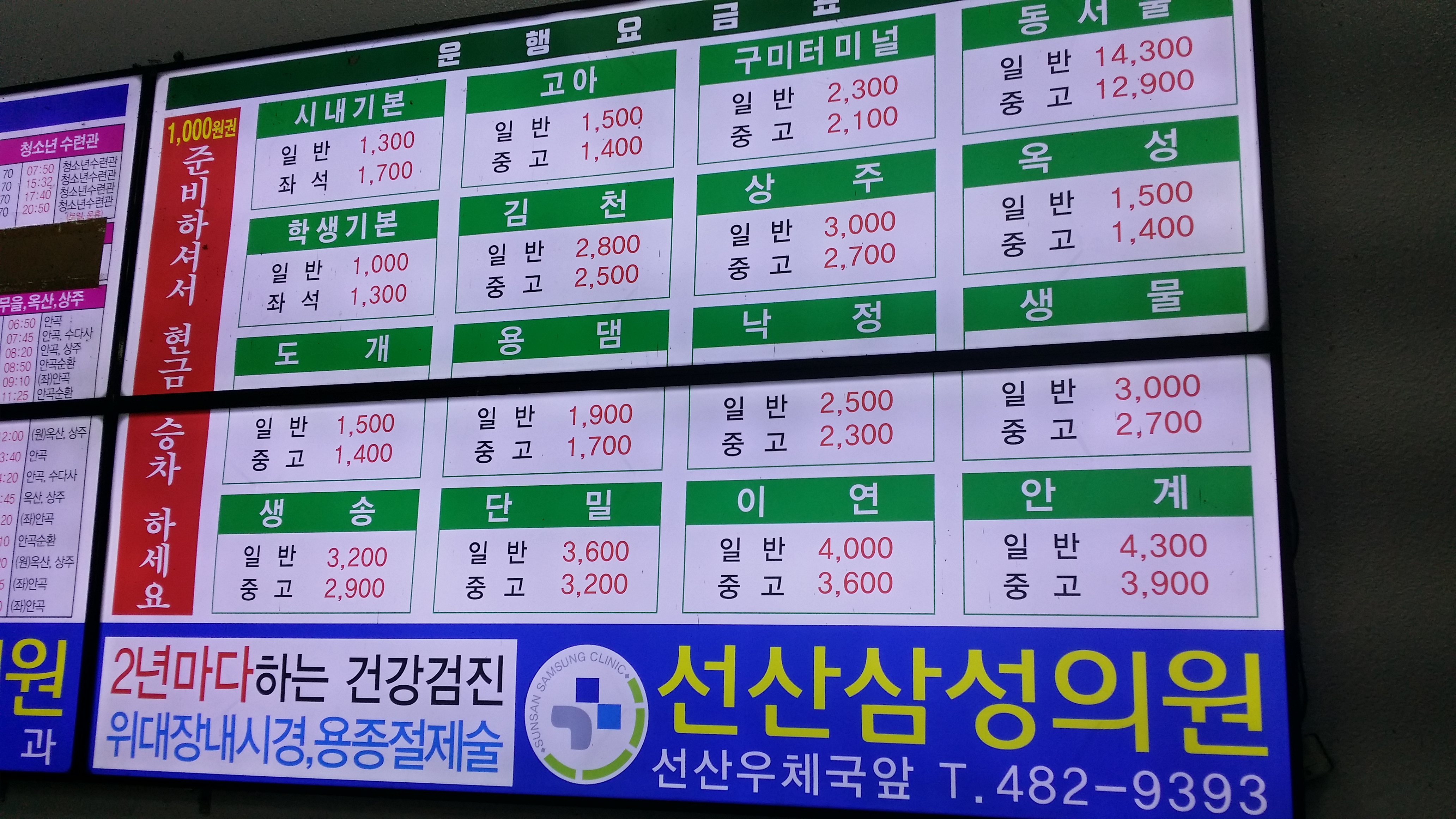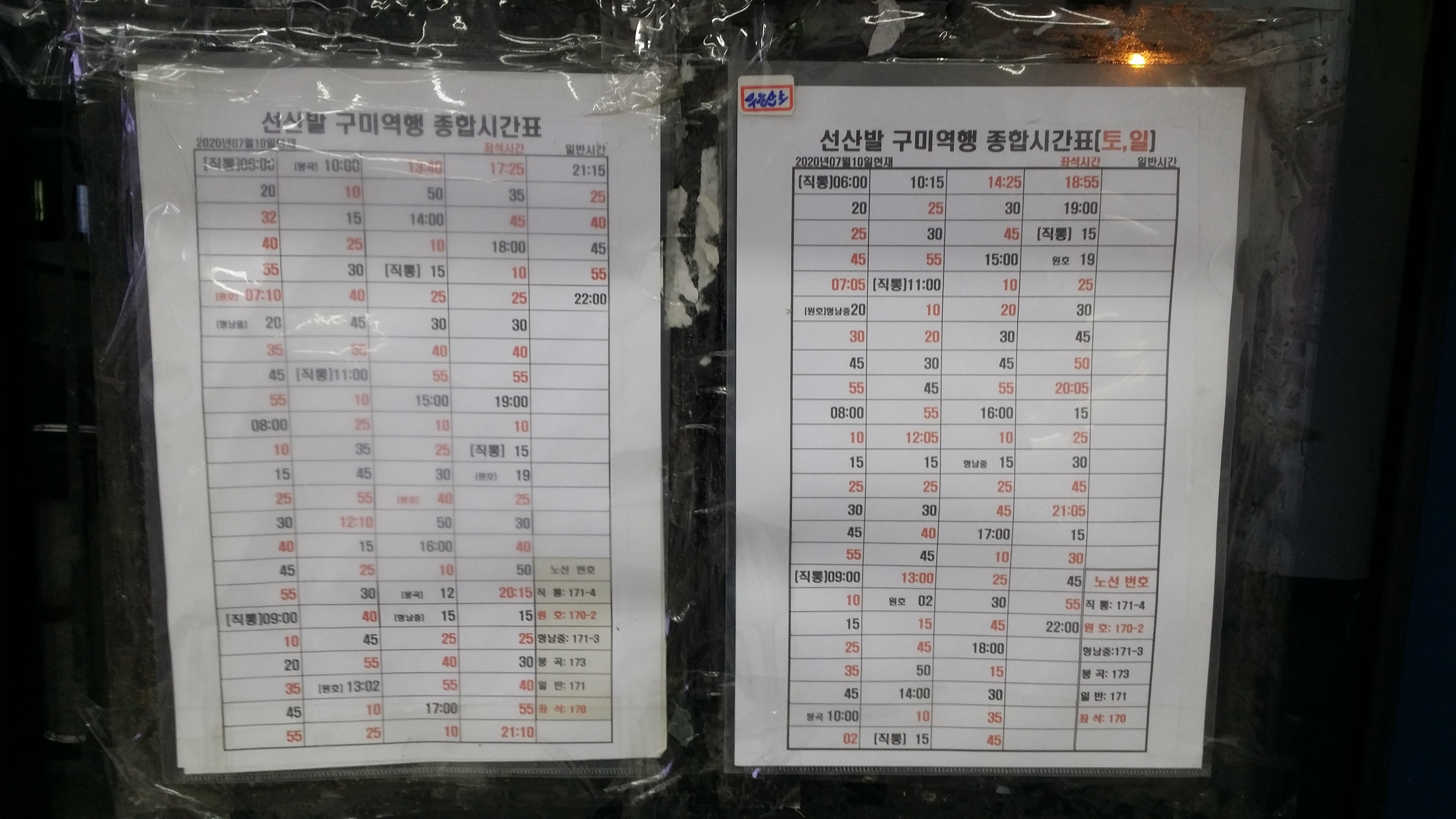 예매를 통한 좌석 확보가 필요하다.08시55분에 출발하는 193번을 타야 하는데, 08시45분 190번 버스에 올랐다. 배차 시간을 무시한다고 의아해 하면서, 이상하다 생각했을땐 버스는 이상한데로 꺽는다. 잘못 탔다고 알아채고 기사님께 193번 환승 가능한 지역으로 운행하는지 여쭈니, 친절하게 휴대폰을 검색하시더니 오성예식장에서 환승 가능함을 알려주신다. 다행인게 일찍 잘못 승차하여 193번을 놓치지 않았다. 내가 왜 이러는지.현재 구미버스엔 환승체크 단말기가 없다. 그냥 다른 버스에 올라 태그하면 환승 처리된다.