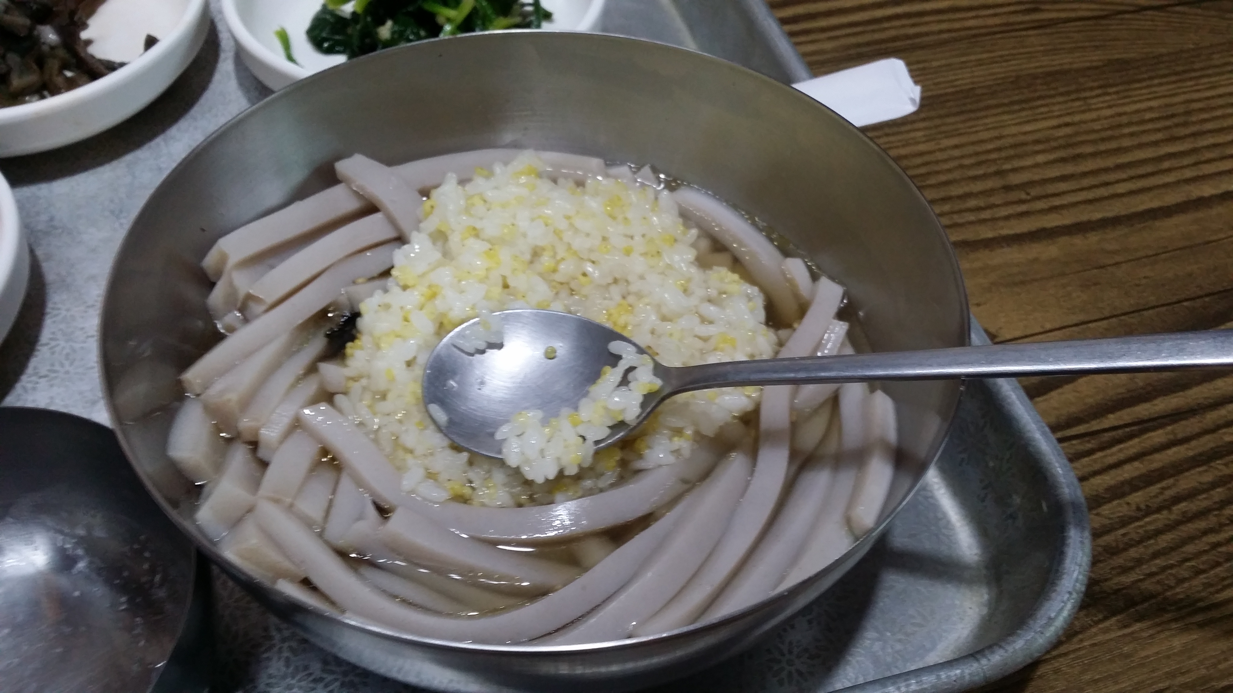 1시간이 남아 땅재묵집에서 저녁을 먹는다. 이집 아녀자 참 불친절하다. 입구에 칼국수가 적혀있어 칼국수 되느냐 물으니 묵집에 무슨 칼국수하며 퉁명스럽게 대꾸한다. 마음 같아선 나오고 싶지만 1시간을 추위에 떼울때가 없어 꾹 참고 묵밥을 시켰다. 카드로 계산할까하다, 조금이라도 보템이 되라고 현금을 주고 잘먹었다 인사를 건냈는데 묵묵부답. 안 망하는게 신기하다17:31~17:46 버스는 선산에서 들어와 바로 회차하여 출발한다선산터미널