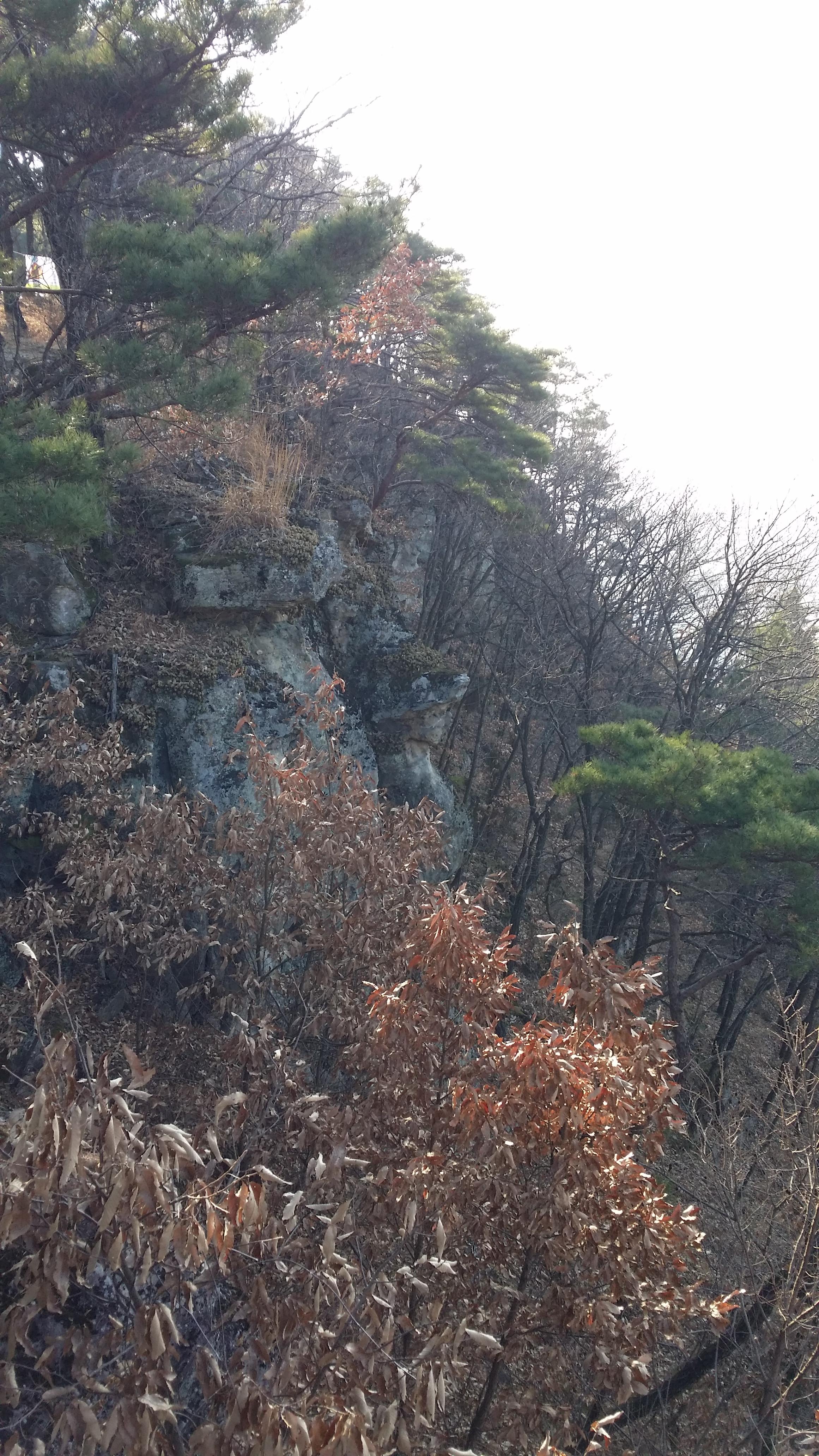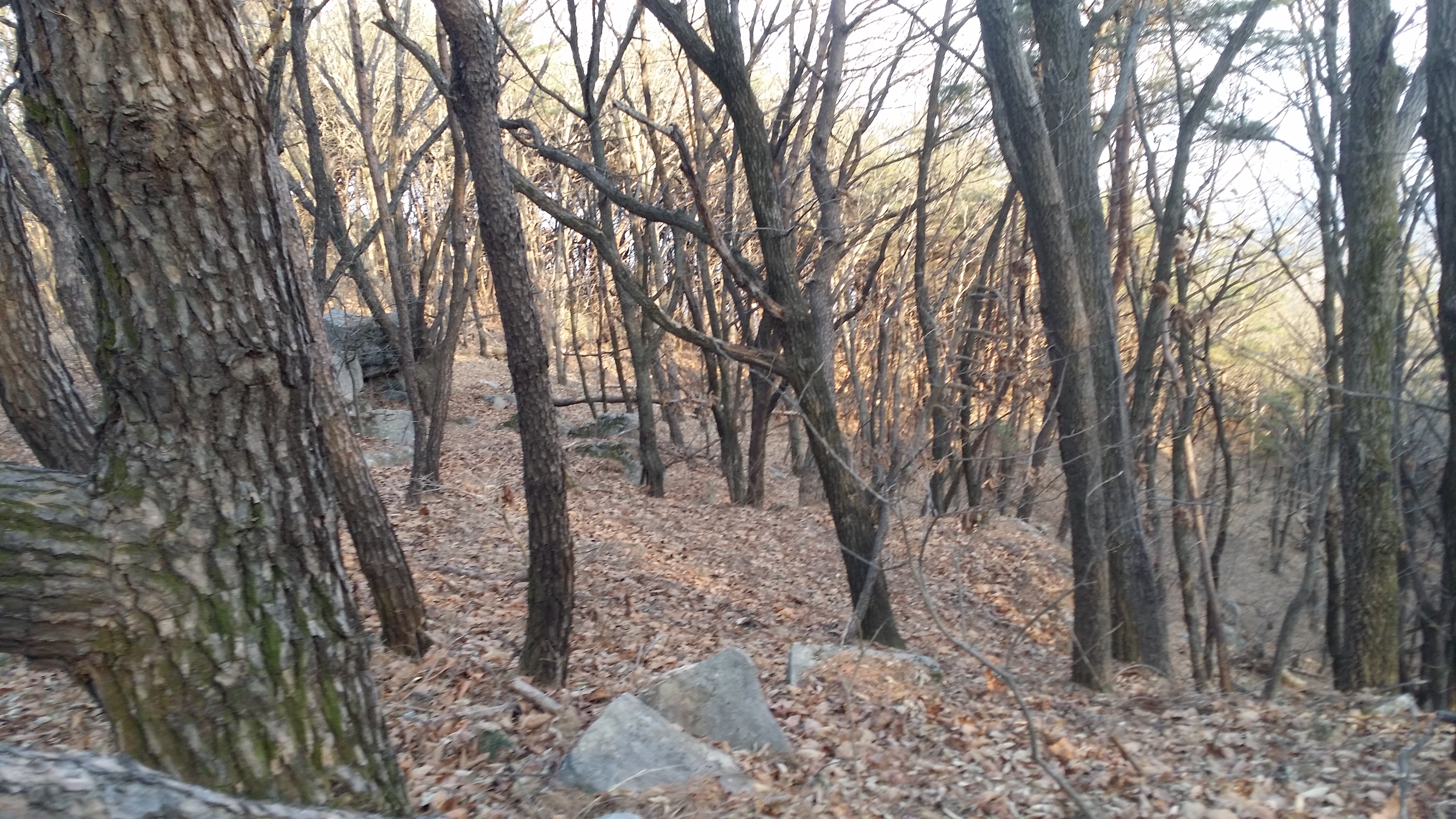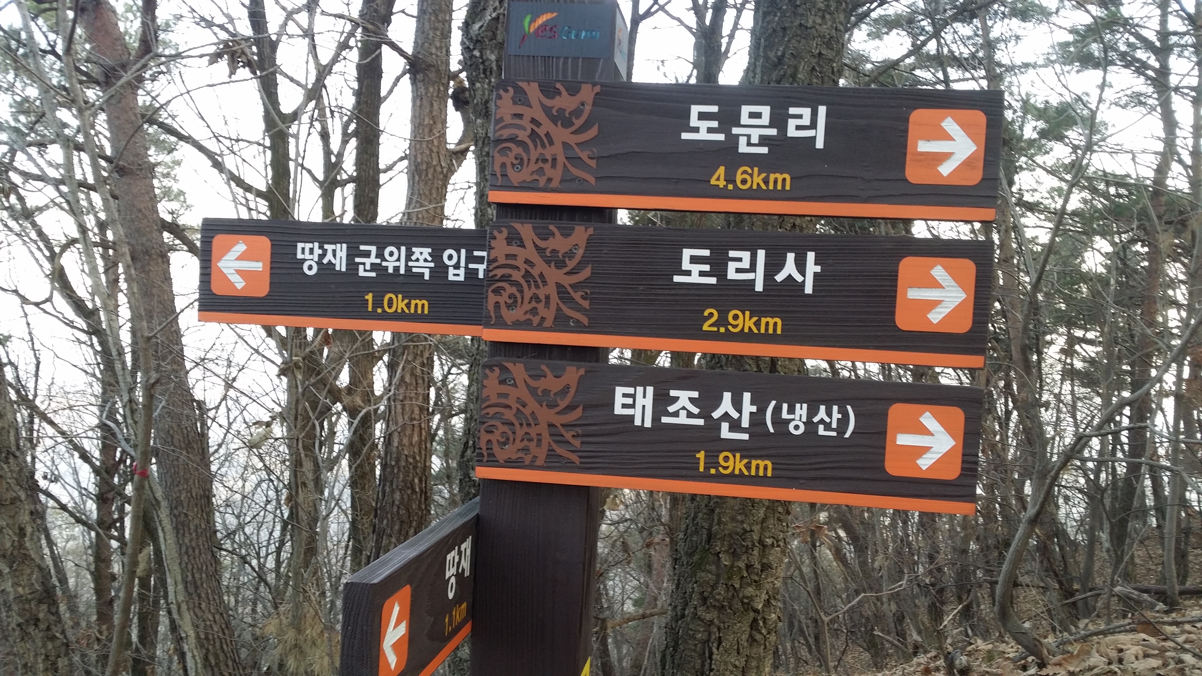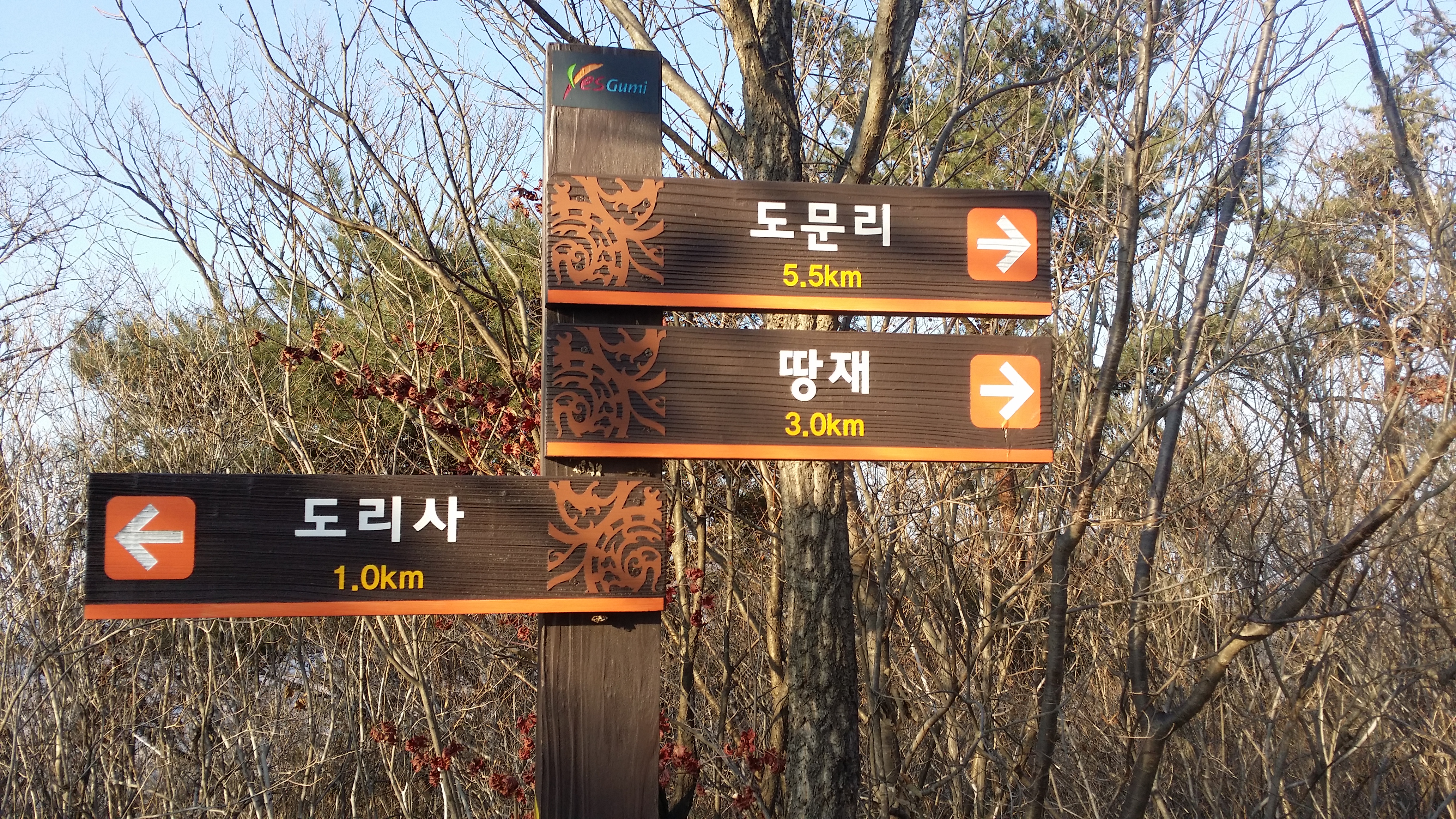 15:52~15:56 마루금에 복귀하고 땅재로 향하는데 능선에 멧돼지가 올라선다. 지금껏 그들이 나를보고 후다닥 도망치는 소리에 인지 했었는데 오늘은 내가 먼저 봤다. 전방 20여m 바위 인근에서 미동도 안하고 나를 바라본다. 다행히 중앙에 보이는 나무뒤로 몸을 숨길수 있었지만 바람은 야속하게 도야지쪽으로 분다. 왠간하면 능선아래로 이동할텐데 등로에 딱 버티고 있으니 시간이 흐를수록 불안해 진다. 그러던차 새끼 2마리가 능선에 올라선다. 새끼를 거느린 어미, 최악의 상황이다. 이렇게 대치하다. 이놈이 우측 바위뒤로 이동한다. 혹 내쪽으로 돌진할까 발걸음을 옮기는데 낙엽소리에 이놈이 다시 능선으로 올라서는 내쪽을 바라보고 있다. 주의를 살펴본다. 은폐할때가 없다. 재수 나쁘면 중상 아님 사망. 또 그렇게 한참을 대치하던중 다른 새끼 4마리가 능선으로 올라선다. 이놈들 때문이었구나. 여섯놈을 데리고 어미는 능선 아래로 이동한다. 잠시 기다렸다. 혹 다시 나타날까 마음 조리며 땅재로 향한다. 지금 생각하면 천운이다. 2~3초 일찍 조우 했다면 은폐할때 없는 나대지에서 이놈이 새끼 보호할려 덤벼들었을테니. 다행히 은폐가능한 나무 덕분에 몸을 숨겨 목숨 구한것 같다.16:01 땅재 군위쪽 입구 갈림길16:20 과수원