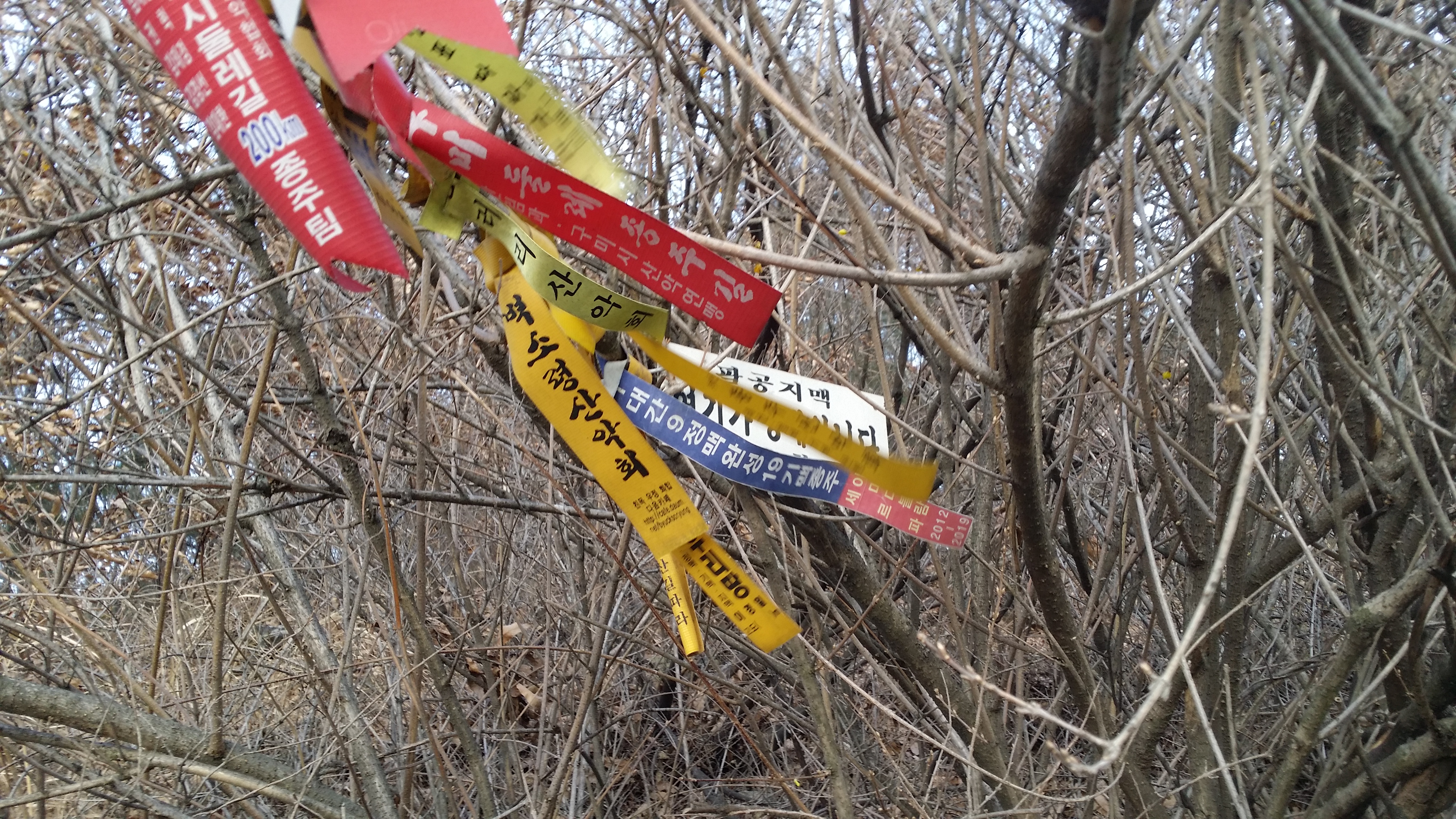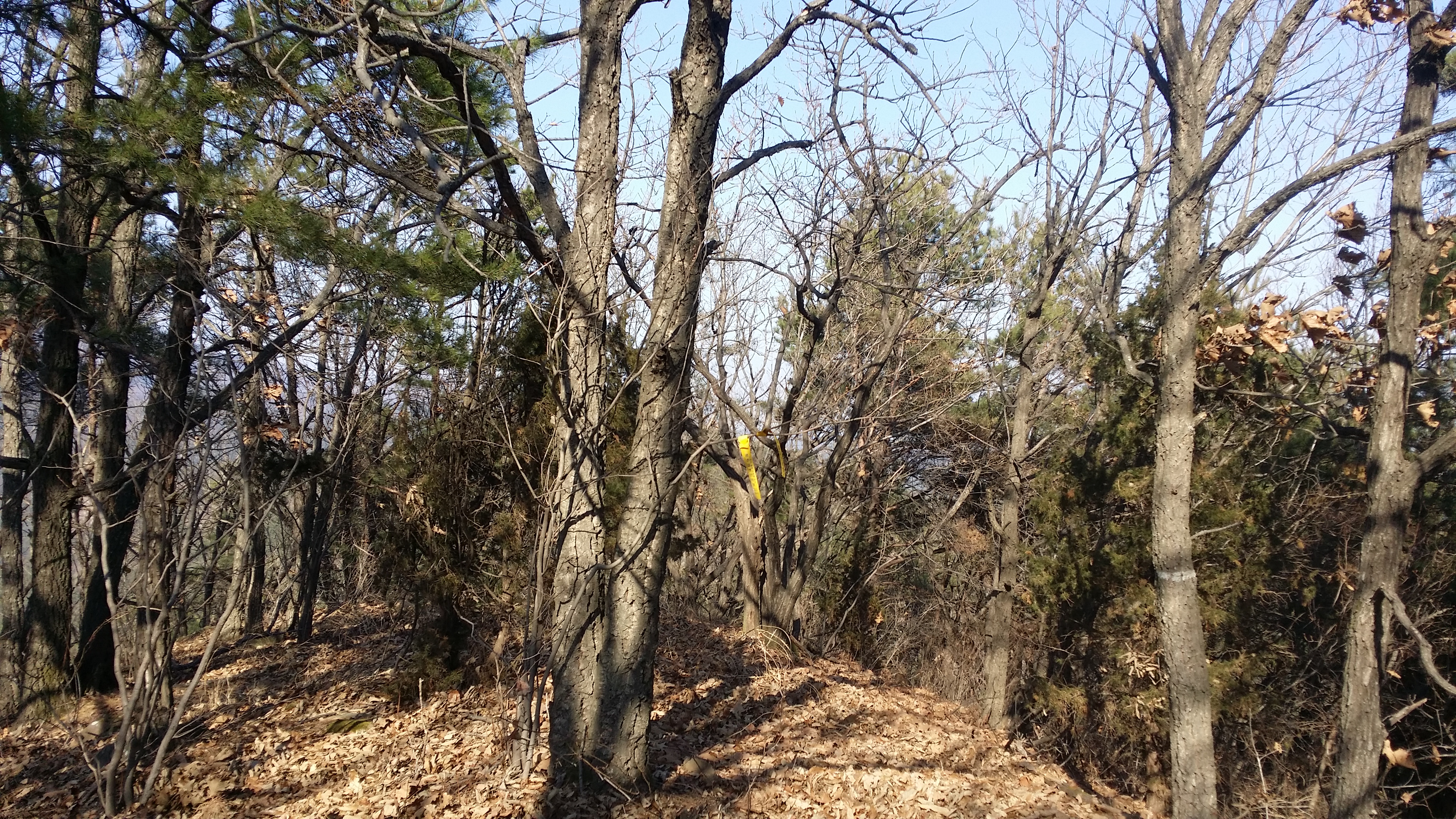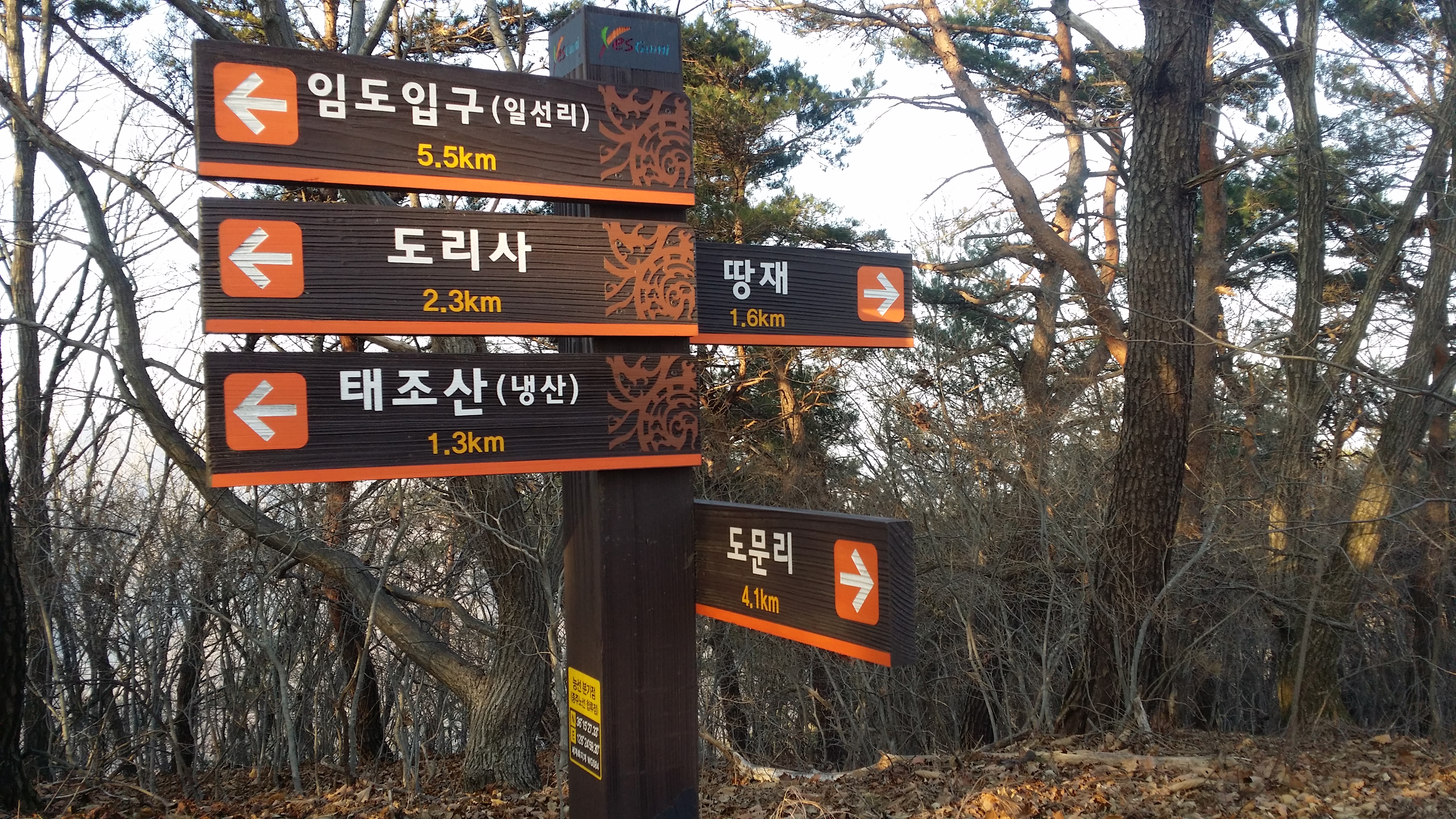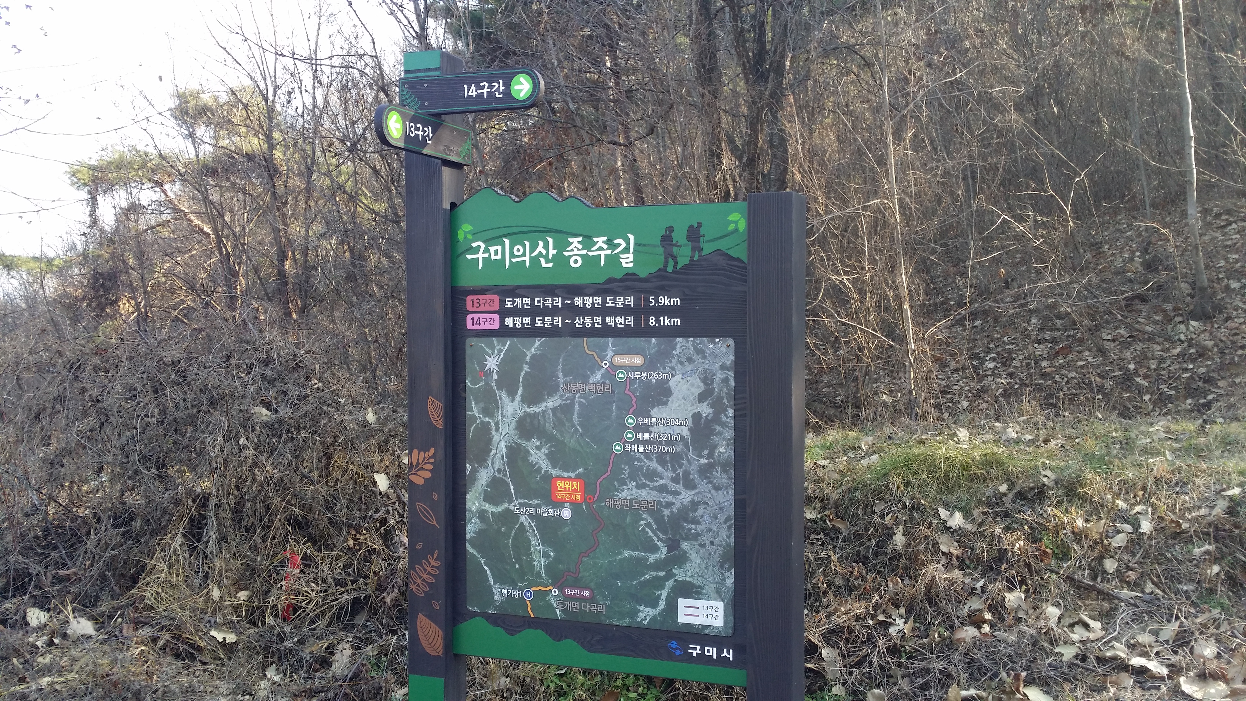 15:52~15:56 마루금에 복귀하고 땅재로 향하는데 능선에 멧돼지가 올라선다. 지금껏 그들이 나를보고 후다닥 도망치는 소리에 인지 했었는데 오늘은 내가 먼저 봤다. 전방 20여m 바위 인근에서 미동도 안하고 나를 바라본다. 다행히 중앙에 보이는 나무뒤로 몸을 숨길수 있었지만 바람은 야속하게 도야지쪽으로 분다. 왠간하면 능선아래로 이동할텐데 등로에 딱 버티고 있으니 시간이 흐를수록 불안해 진다. 그러던차 새끼 2마리가 능선에 올라선다. 새끼를 거느린 어미, 최악의 상황이다. 이렇게 대치하다. 이놈이 우측 바위뒤로 이동한다. 혹 내쪽으로 돌진할까 발걸음을 옮기는데 낙엽소리에 이놈이 다시 능선으로 올라서는 내쪽을 바라보고 있다. 주의를 살펴본다. 은폐할때가 없다. 재수 나쁘면 중상 아님 사망. 또 그렇게 한참을 대치하던중 다른 새끼 4마리가 능선으로 올라선다. 이놈들 때문이었구나. 여섯놈을 데리고 어미는 능선 아래로 이동한다. 잠시 기다렸다. 혹 다시 나타날까 마음 조리며 땅재로 향한다. 지금 생각하면 천운이다. 2~3초 일찍 조우 했다면 은폐할때 없는 나대지에서 이놈이 새끼 보호할려 덤벼들었을테니. 다행히 은폐가능한 나무 덕분에 몸을 숨겨 목숨 구한것 같다.16:01 땅재 군위쪽 입구 갈림길16:20 과수원