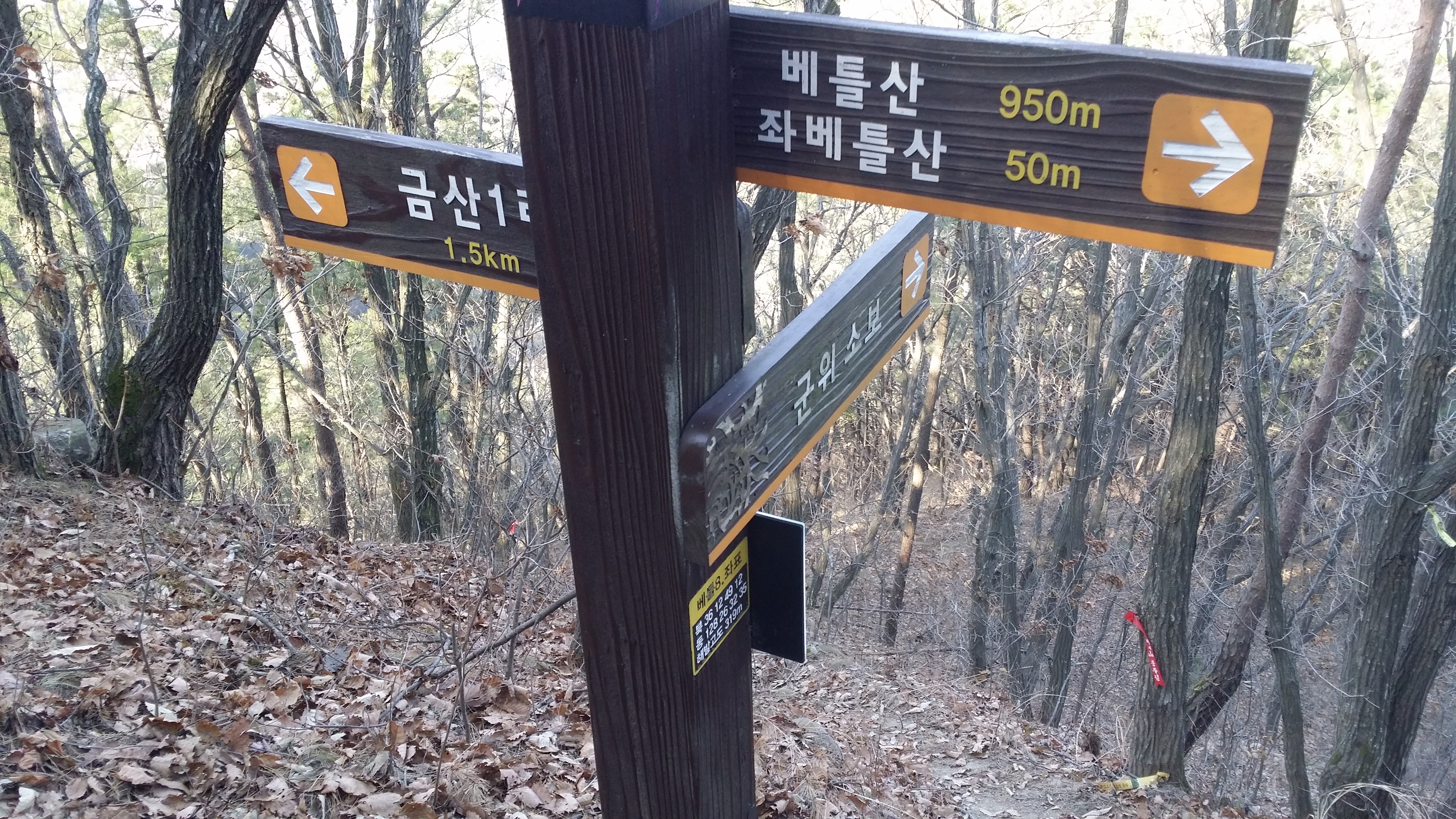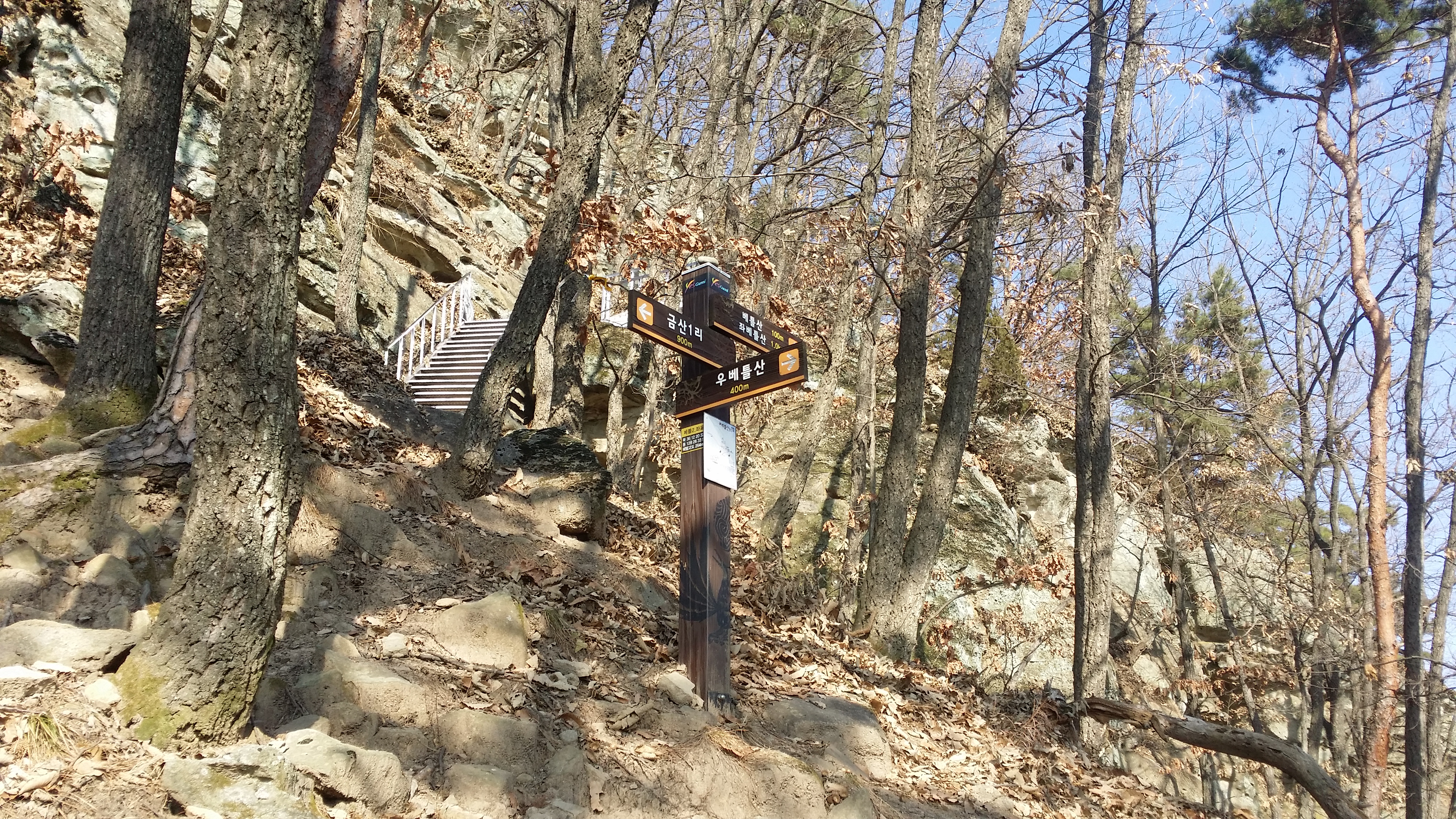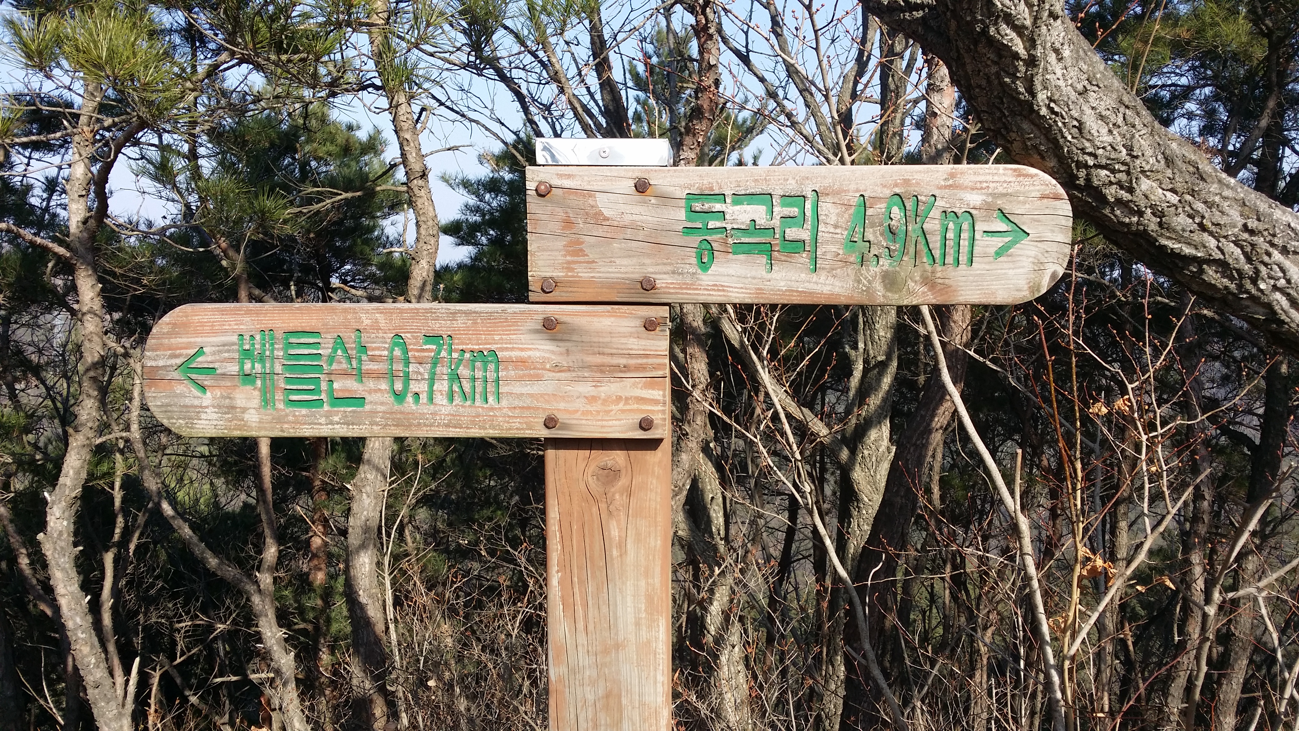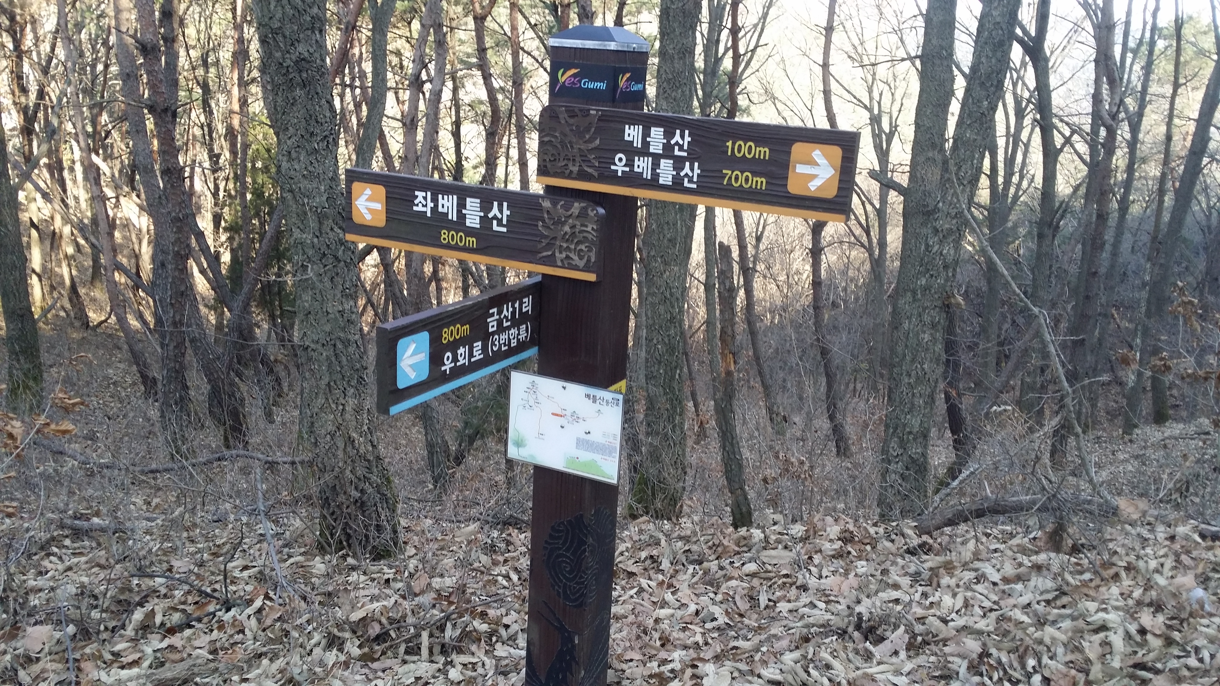 15:52~15:56 마루금에 복귀하고 땅재로 향하는데 능선에 멧돼지가 올라선다. 지금껏 그들이 나를보고 후다닥 도망치는 소리에 인지 했었는데 오늘은 내가 먼저 봤다. 전방 20여m 바위 인근에서 미동도 안하고 나를 바라본다. 다행히 중앙에 보이는 나무뒤로 몸을 숨길수 있었지만 바람은 야속하게 도야지쪽으로 분다. 왠간하면 능선아래로 이동할텐데 등로에 딱 버티고 있으니 시간이 흐를수록 불안해 진다. 그러던차 새끼 2마리가 능선에 올라선다. 새끼를 거느린 어미, 최악의 상황이다. 이렇게 대치하다. 이놈이 우측 바위뒤로 이동한다. 혹 내쪽으로 돌진할까 발걸음을 옮기는데 낙엽소리에 이놈이 다시 능선으로 올라서는 내쪽을 바라보고 있다. 주의를 살펴본다. 은폐할때가 없다. 재수 나쁘면 중상 아님 사망. 또 그렇게 한참을 대치하던중 다른 새끼 4마리가 능선으로 올라선다. 이놈들 때문이었구나. 여섯놈을 데리고 어미는 능선 아래로 이동한다. 잠시 기다렸다. 혹 다시 나타날까 마음 조리며 땅재로 향한다. 지금 생각하면 천운이다. 2~3초 일찍 조우 했다면 은폐할때 없는 나대지에서 이놈이 새끼 보호할려 덤벼들었을테니. 다행히 은폐가능한 나무 덕분에 몸을 숨겨 목숨 구한것 같다.16:01 땅재 군위쪽 입구 갈림길16:20 과수원
